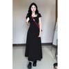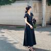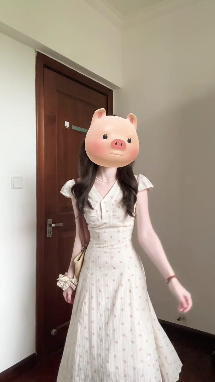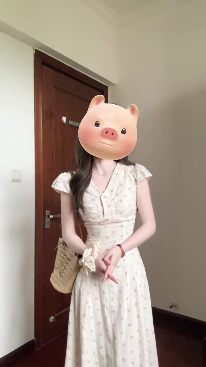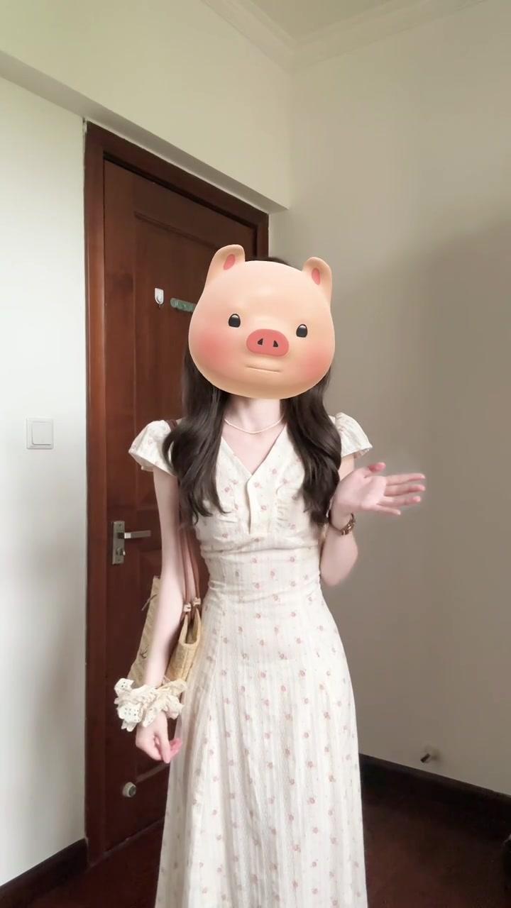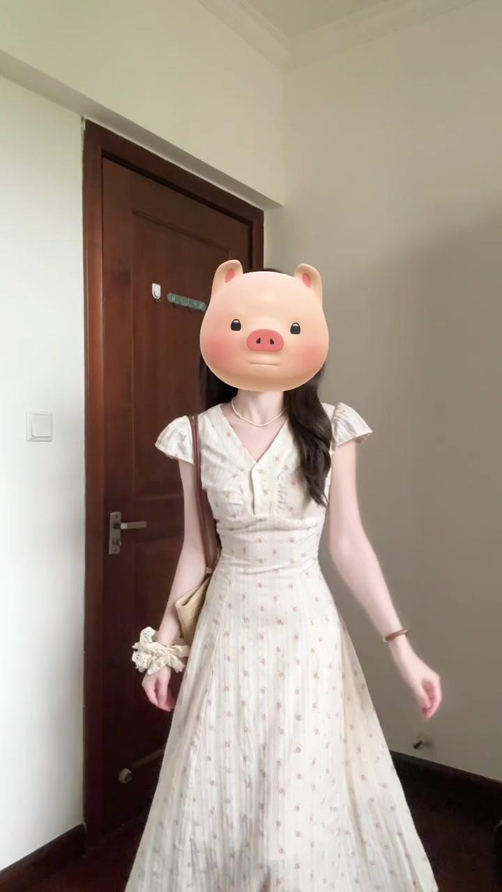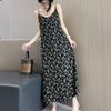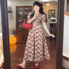 Vestido Floral Francés con Cuello en V para Mujer Verano Nuevo Estilo de Alta Gama Estilo Vacacional Look Adelgazante de Cintura Falda Larga Línea A