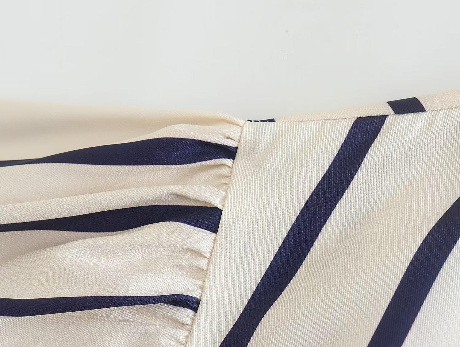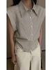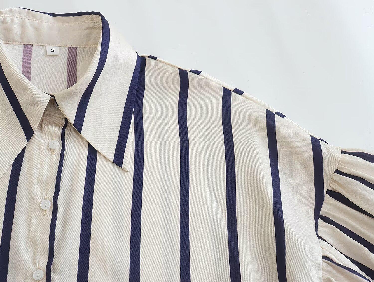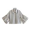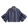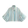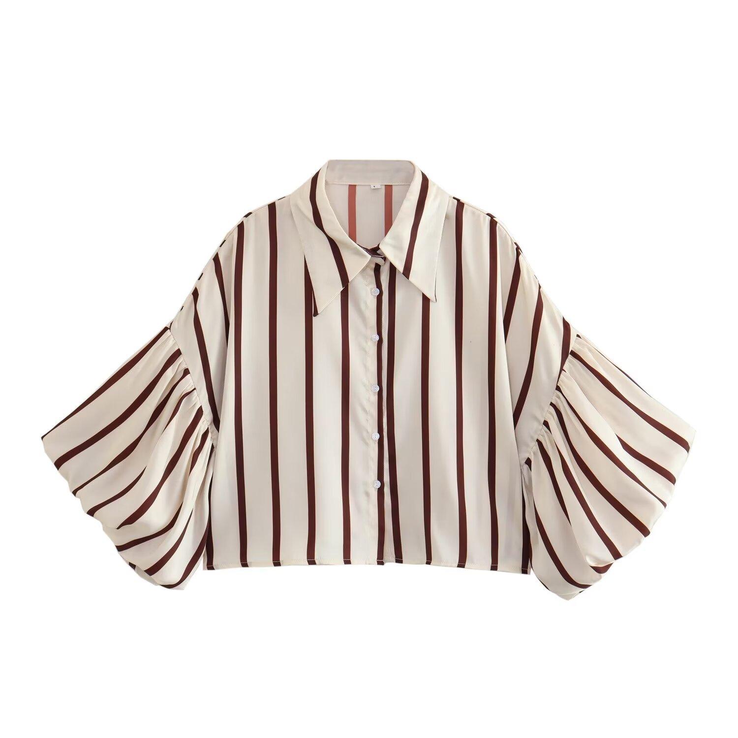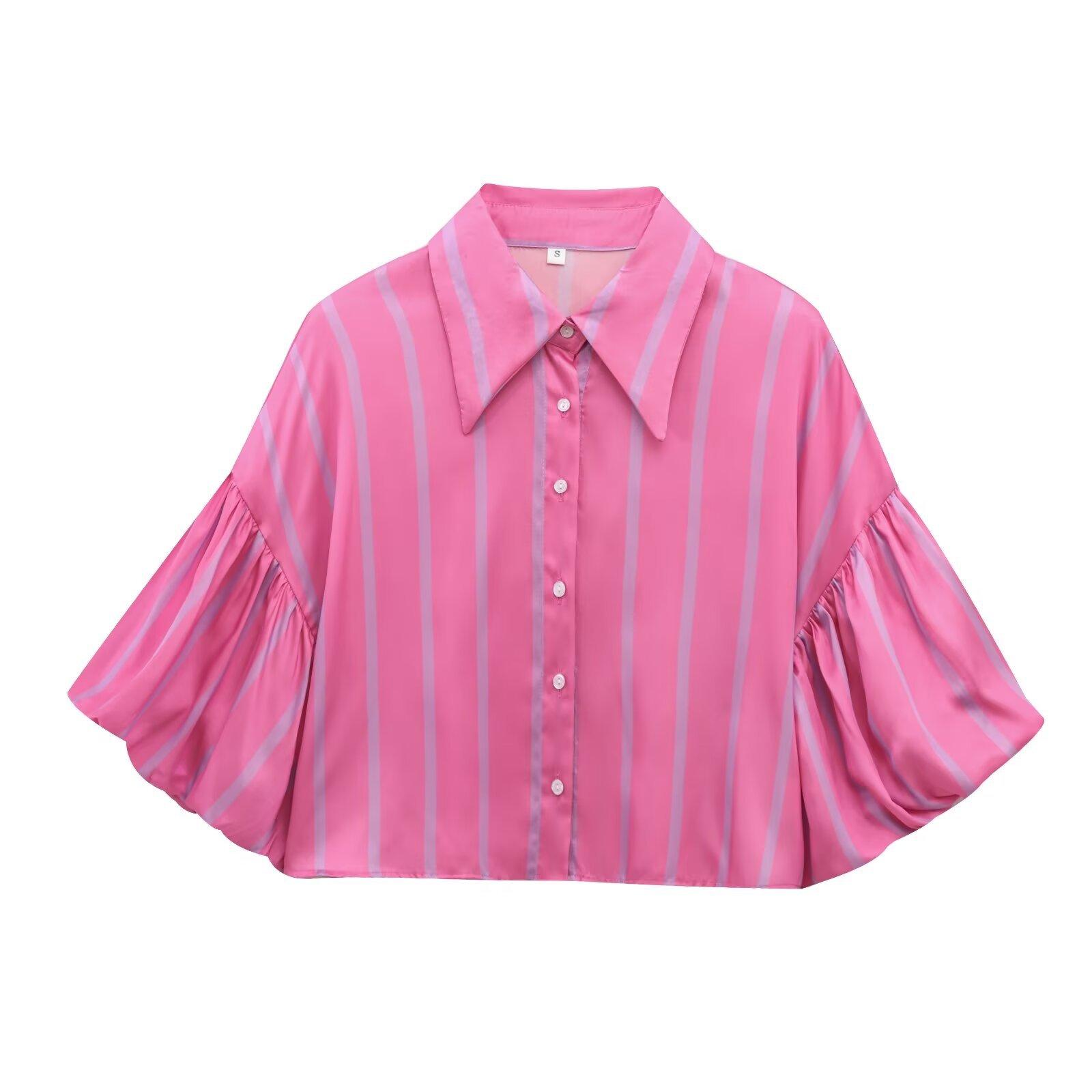 Comercio Exterior Transfronterizo Mujer 2025 Primavera Nuevo Sentido del Diseño Nicho Suelto Rayado Manga Farol Camisa Corta Top