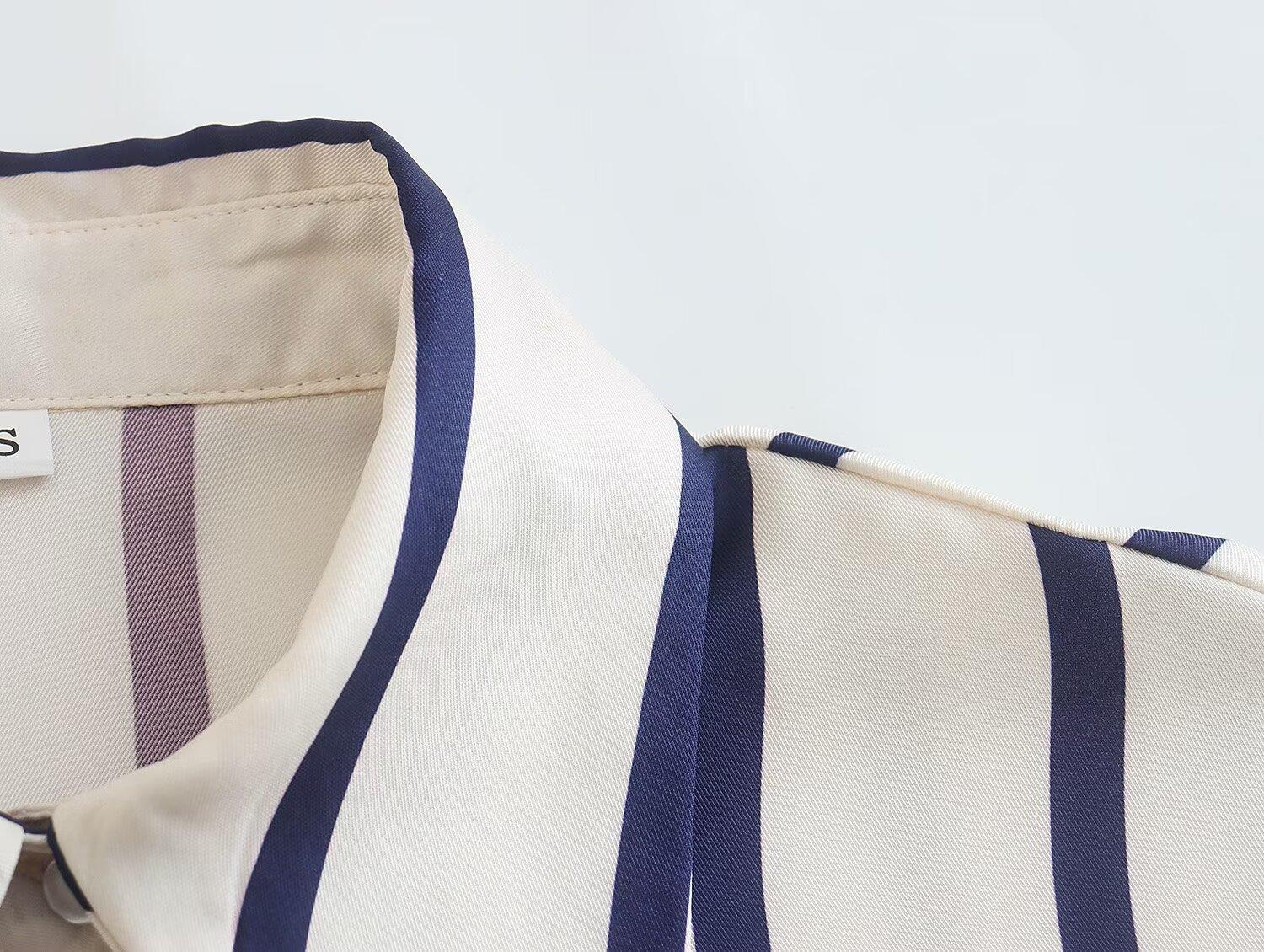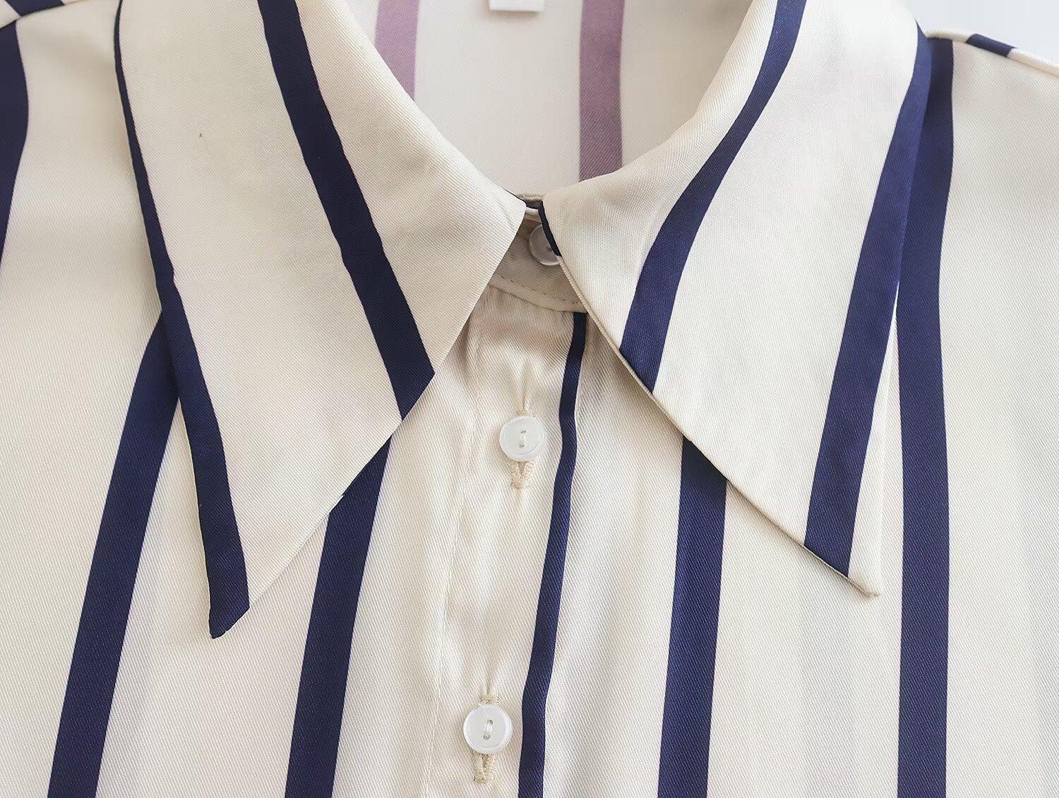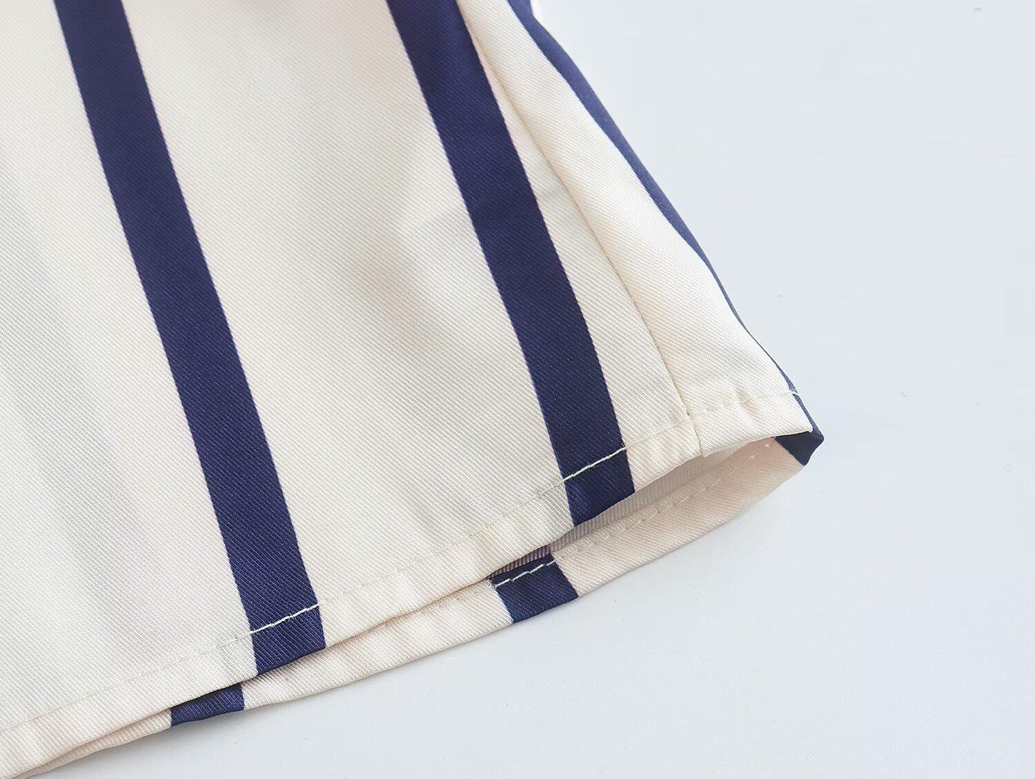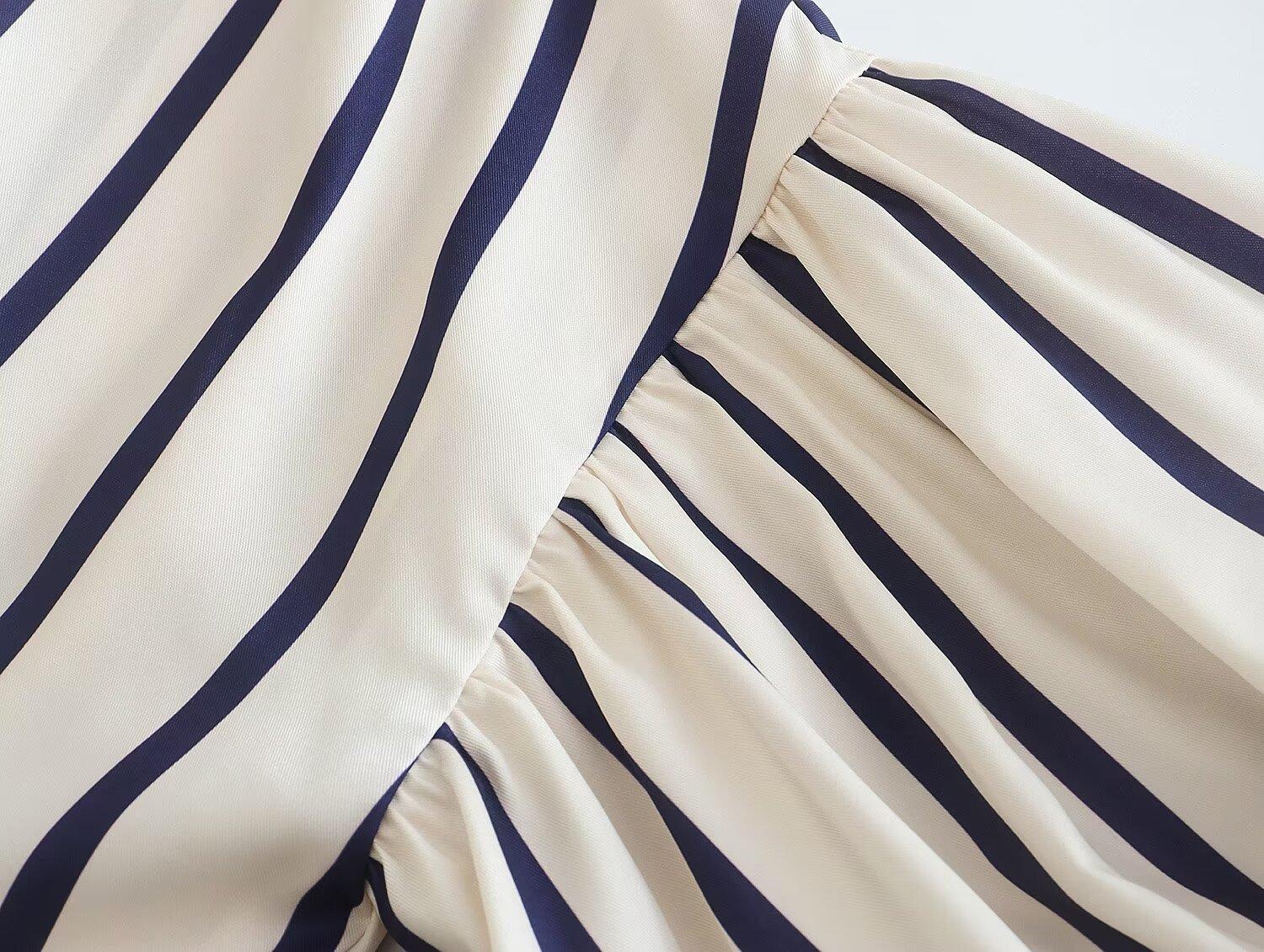 Comercio Exterior Transfronterizo Mujer 2025 Primavera Nuevo Sentido del Diseño Nicho Suelto Rayado Manga Farol Camisa Corta Top