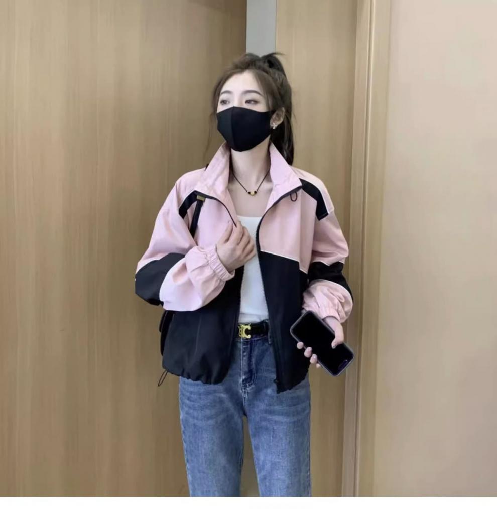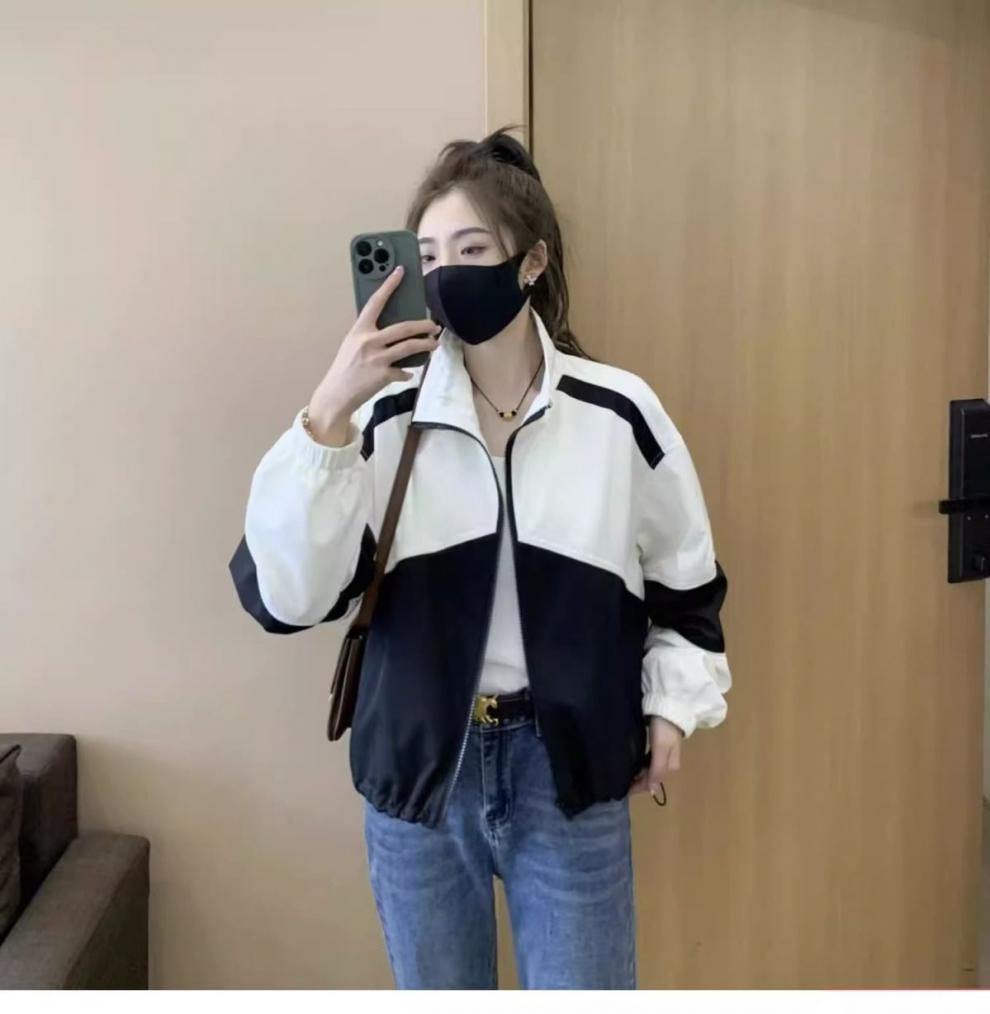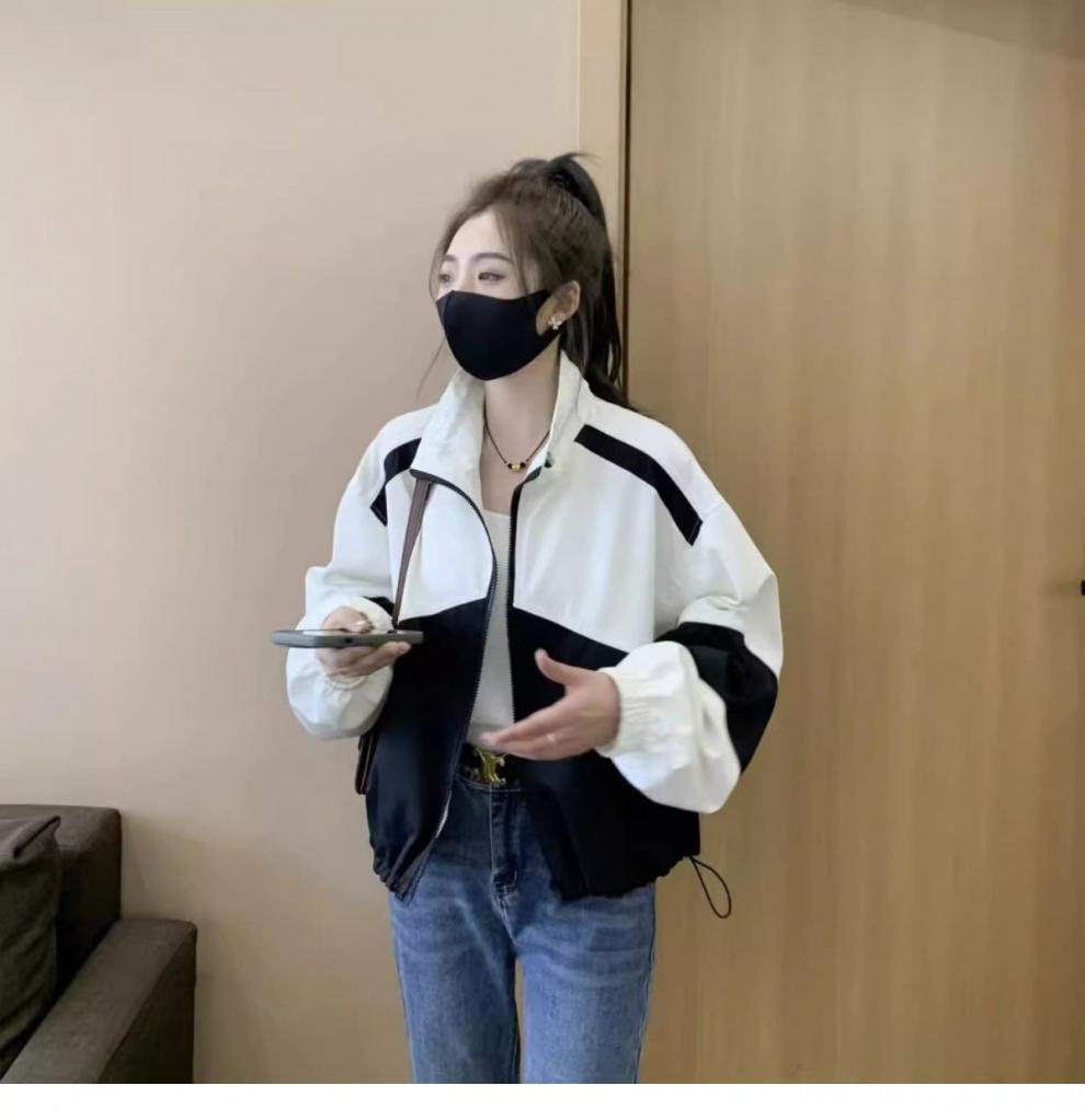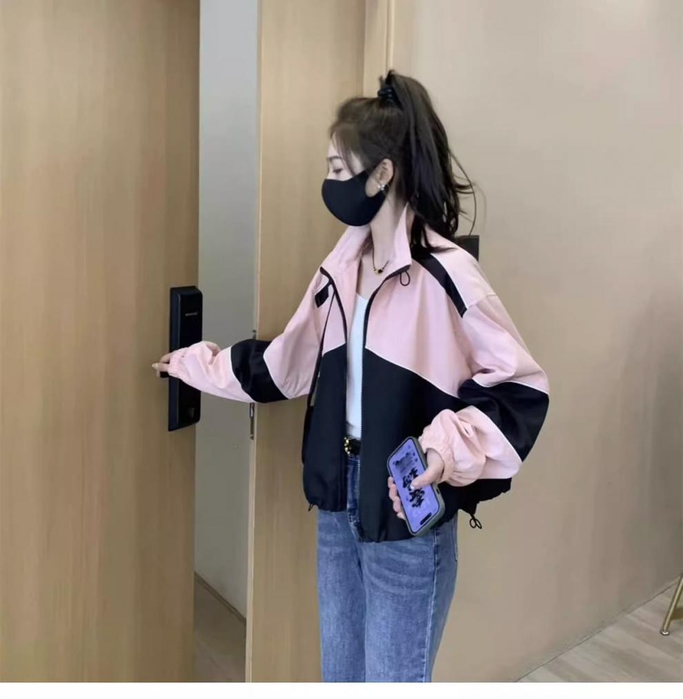 Chaqueta cortavientos para mamá de mediana edad para mujer, otoño, nueva, casual, talla grande, holgada, estilo uniforme de béisbol con bloques de color