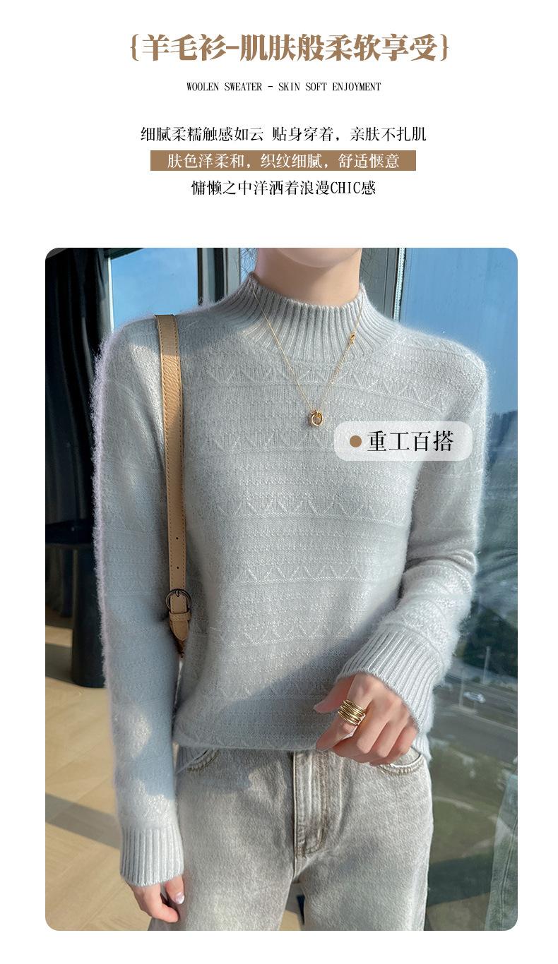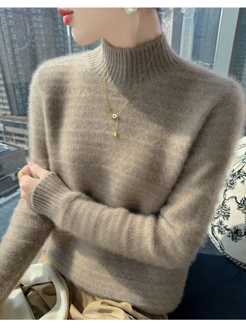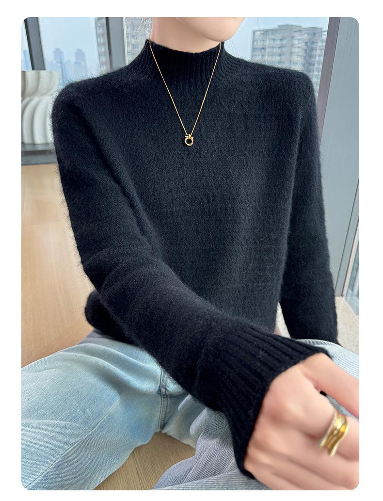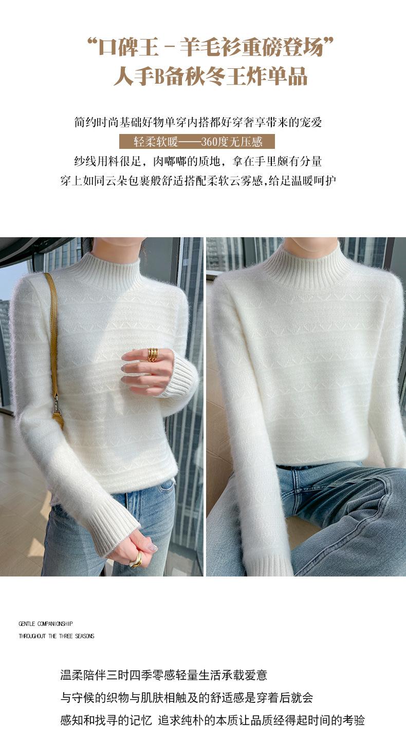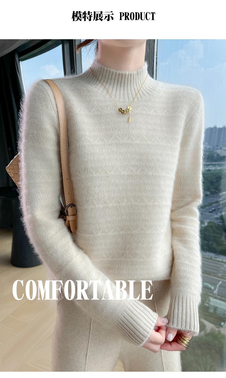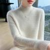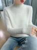 Nuevo Otoño/Invierno para Mujer Espesado Cuello Medio Alto 100% Lana Adelgazante Temperamento Versátil Suéter Tejido Sensación de Alta Gama Capa Base