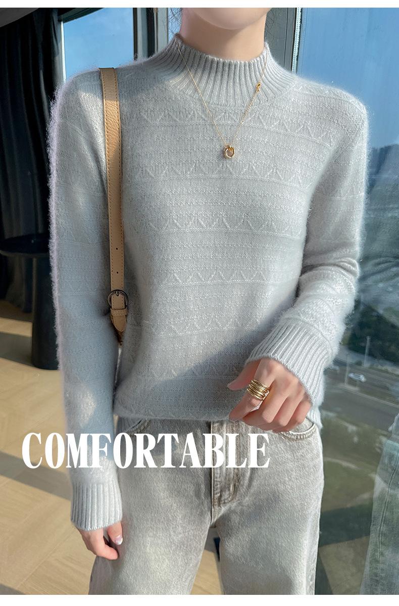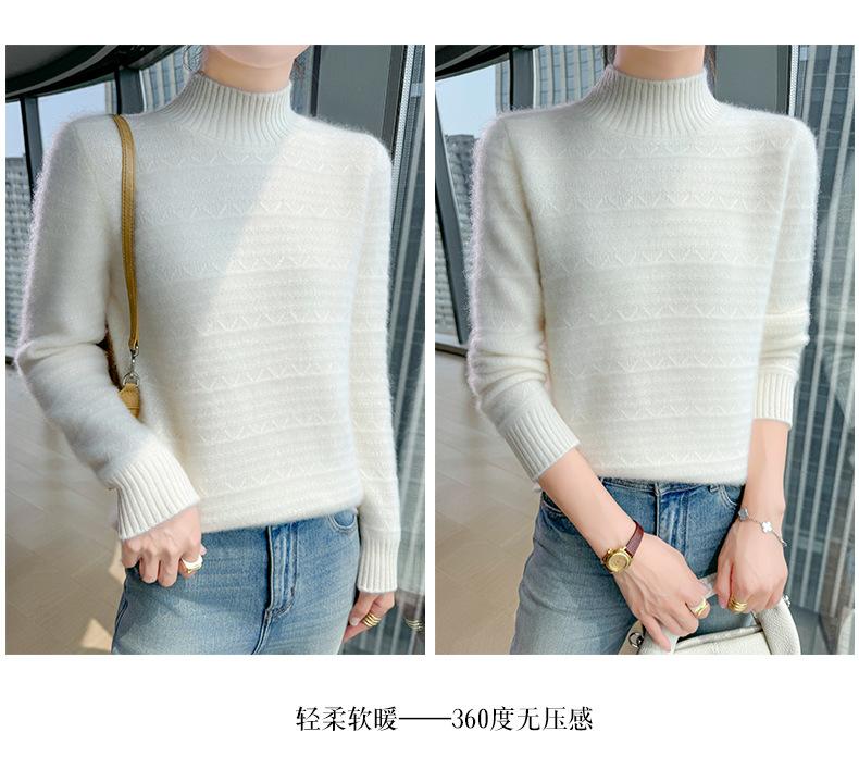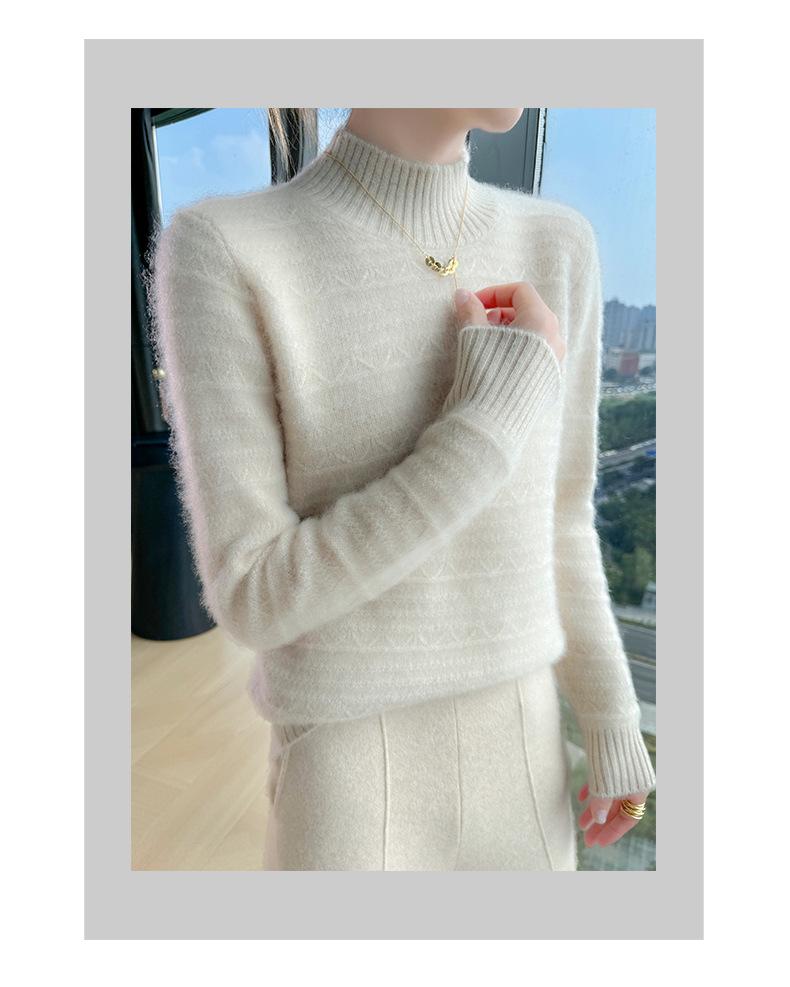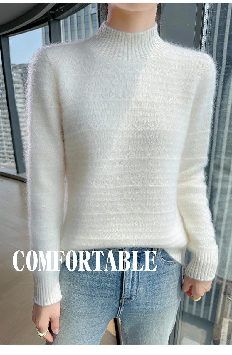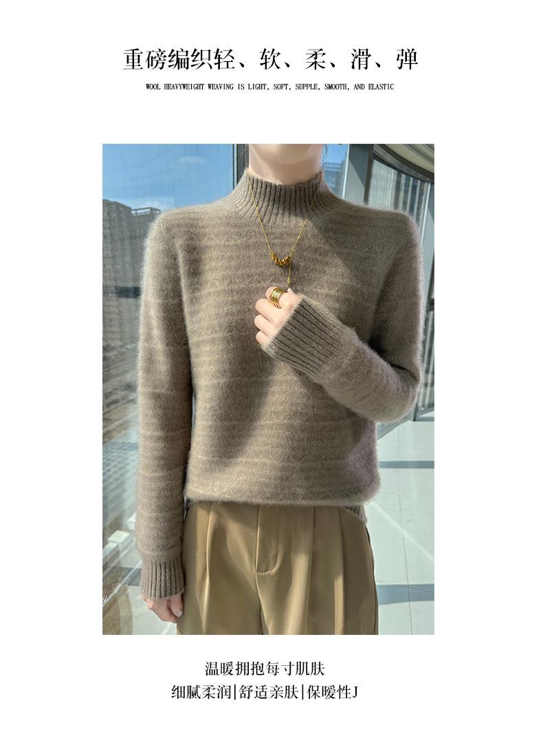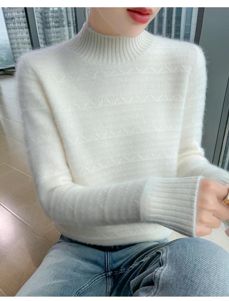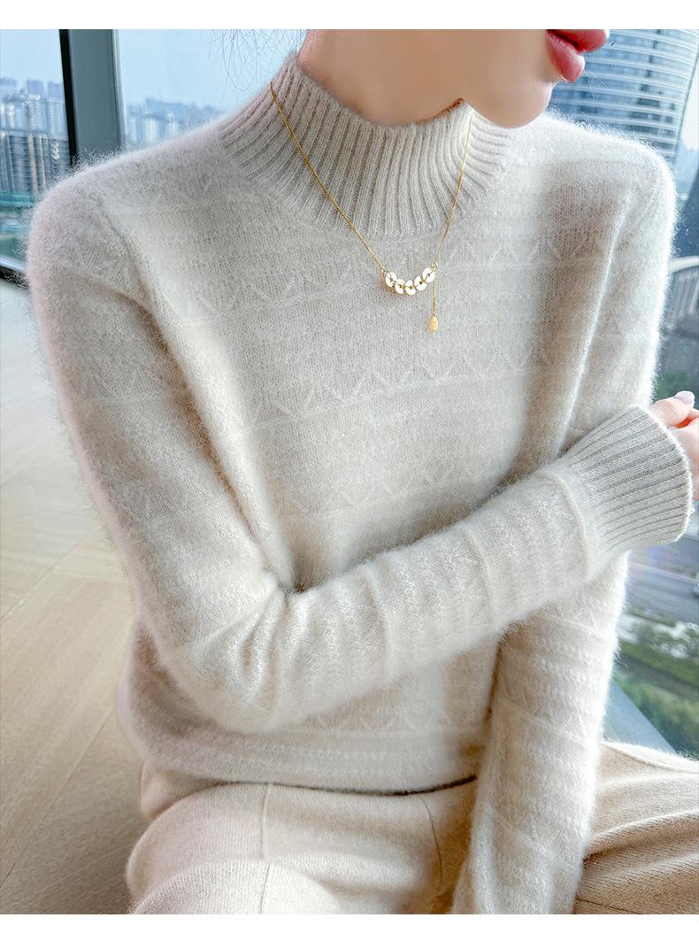 Nuevo Otoño/Invierno para Mujer Espesado Cuello Medio Alto 100% Lana Adelgazante Temperamento Versátil Suéter Tejido Sensación de Alta Gama Capa Base