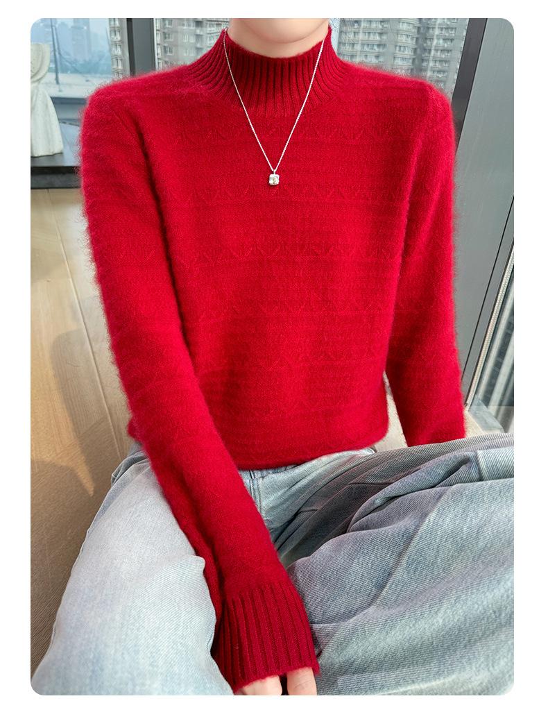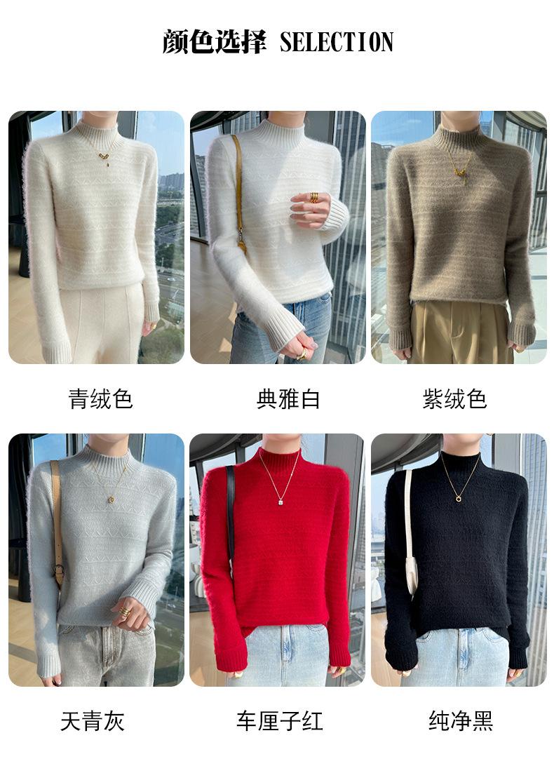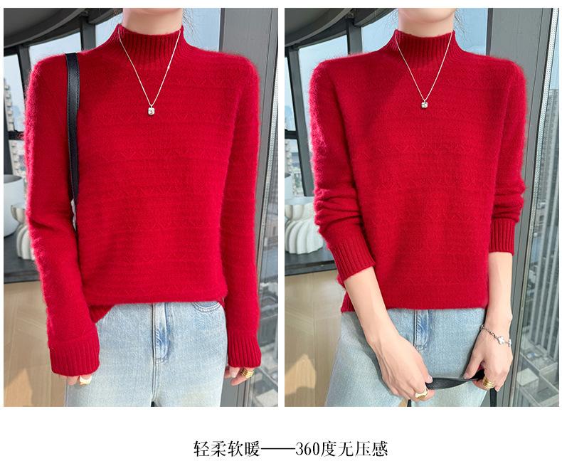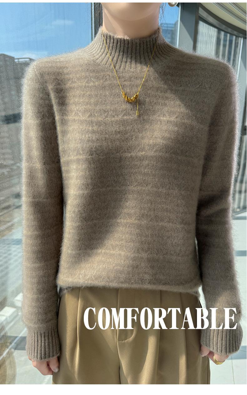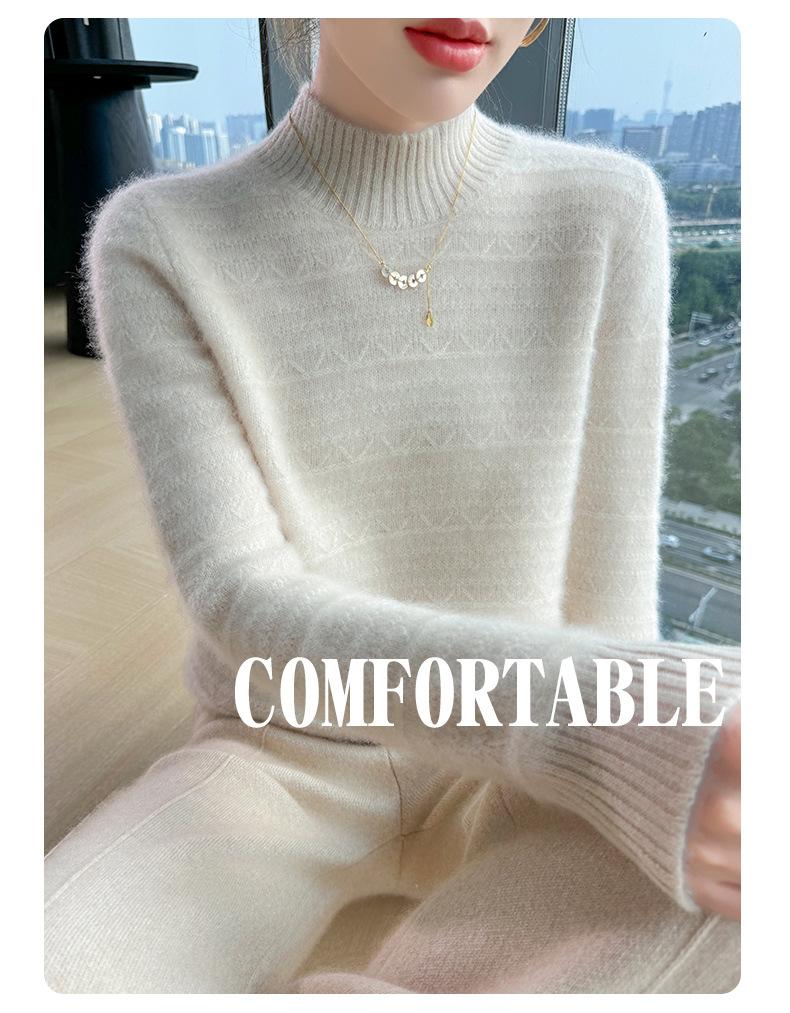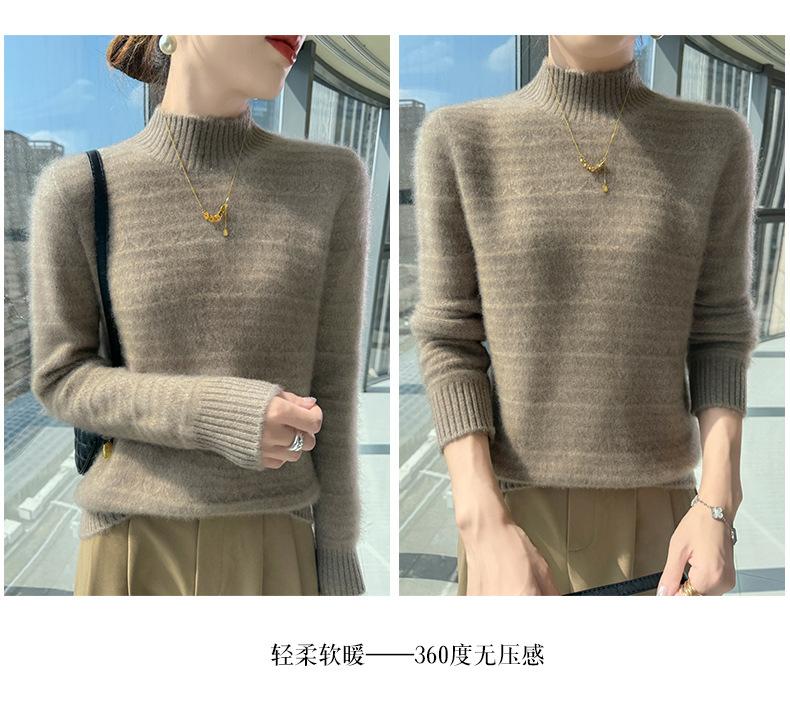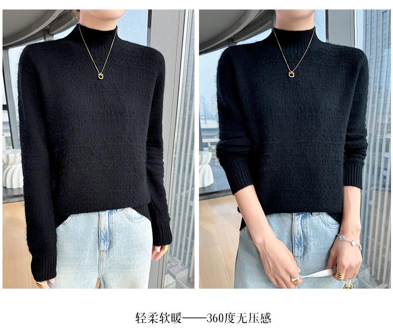 Nuevo Otoño/Invierno para Mujer Espesado Cuello Medio Alto 100% Lana Adelgazante Temperamento Versátil Suéter Tejido Sensación de Alta Gama Capa Base