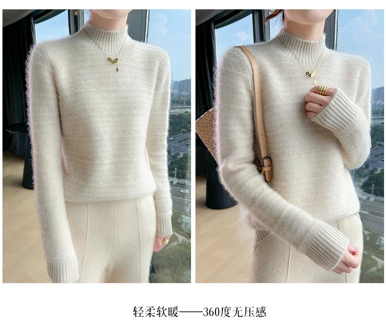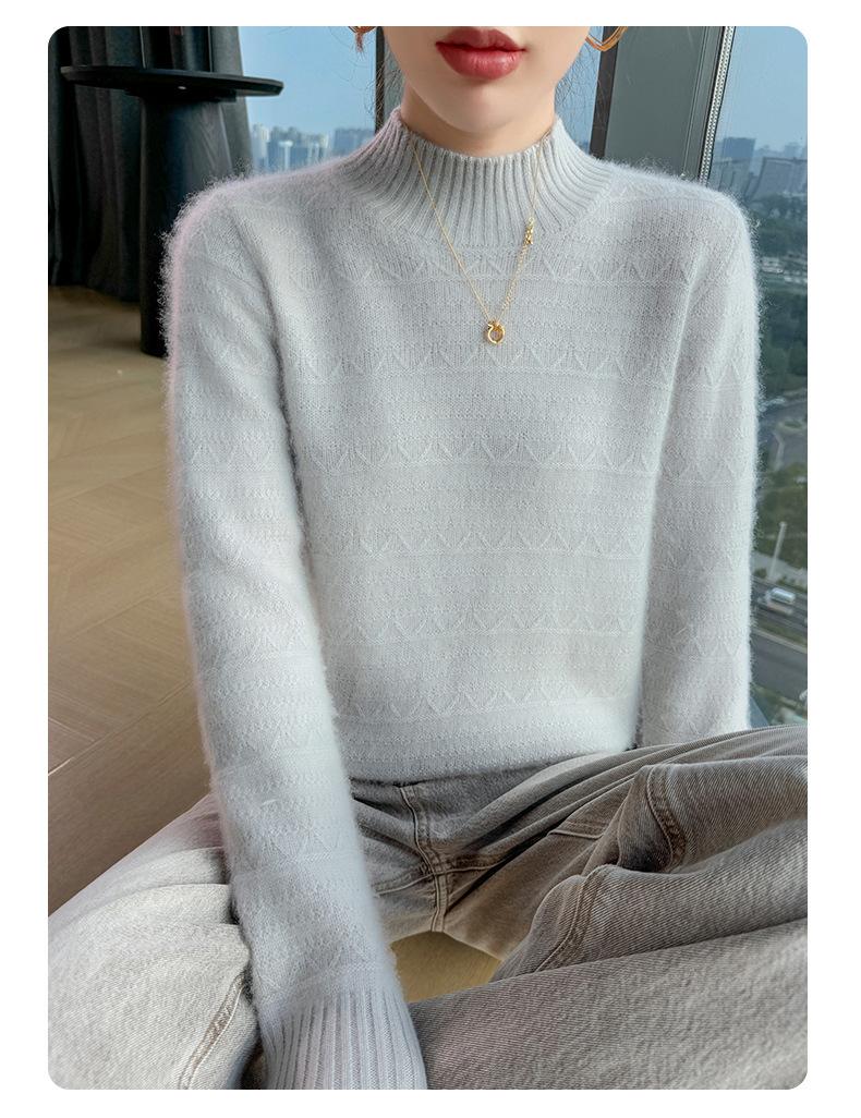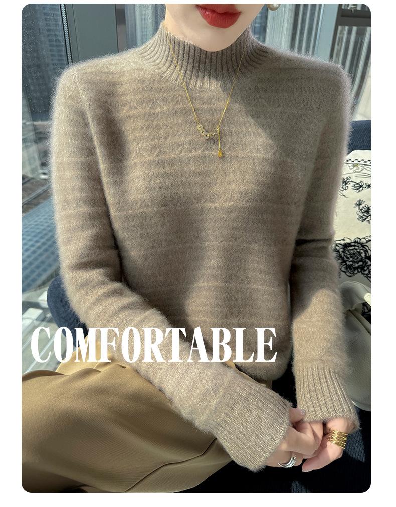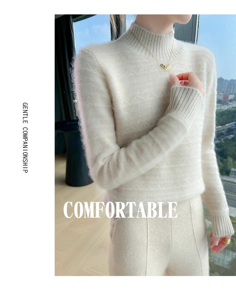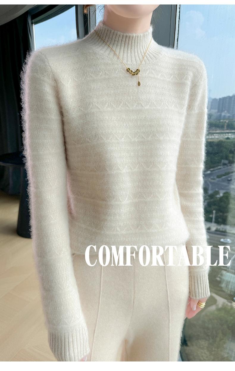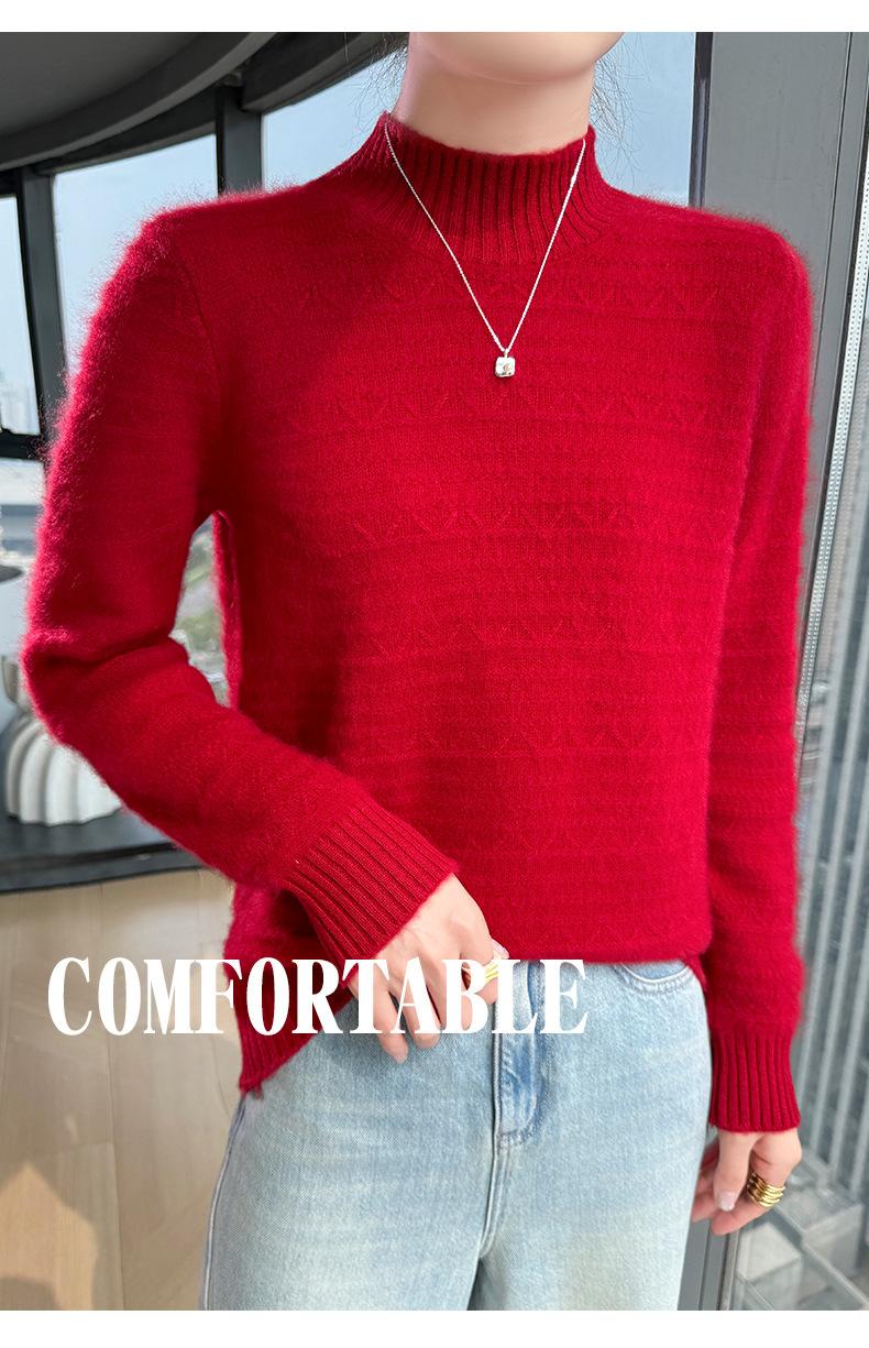 Nuevo Otoño/Invierno para Mujer Espesado Cuello Medio Alto 100% Lana Adelgazante Temperamento Versátil Suéter Tejido Sensación de Alta Gama Capa Base