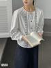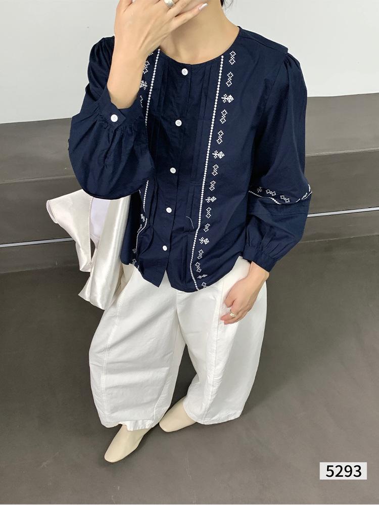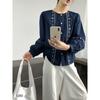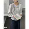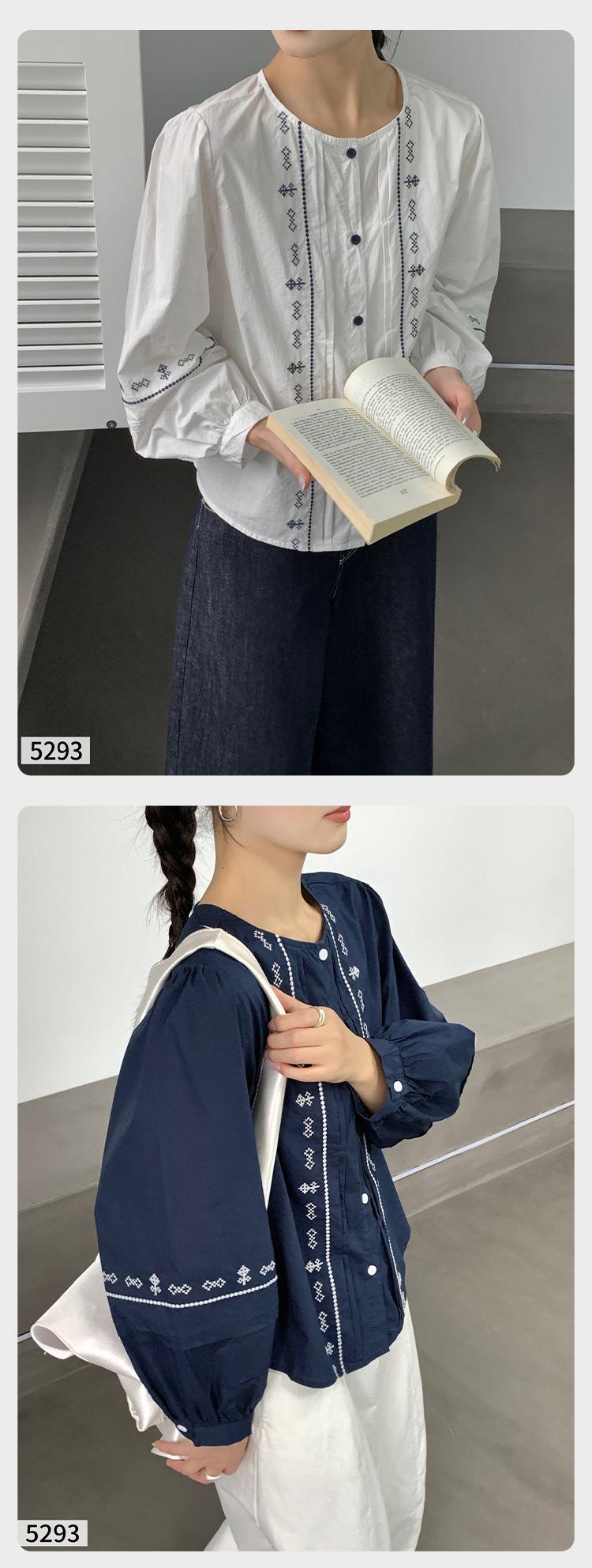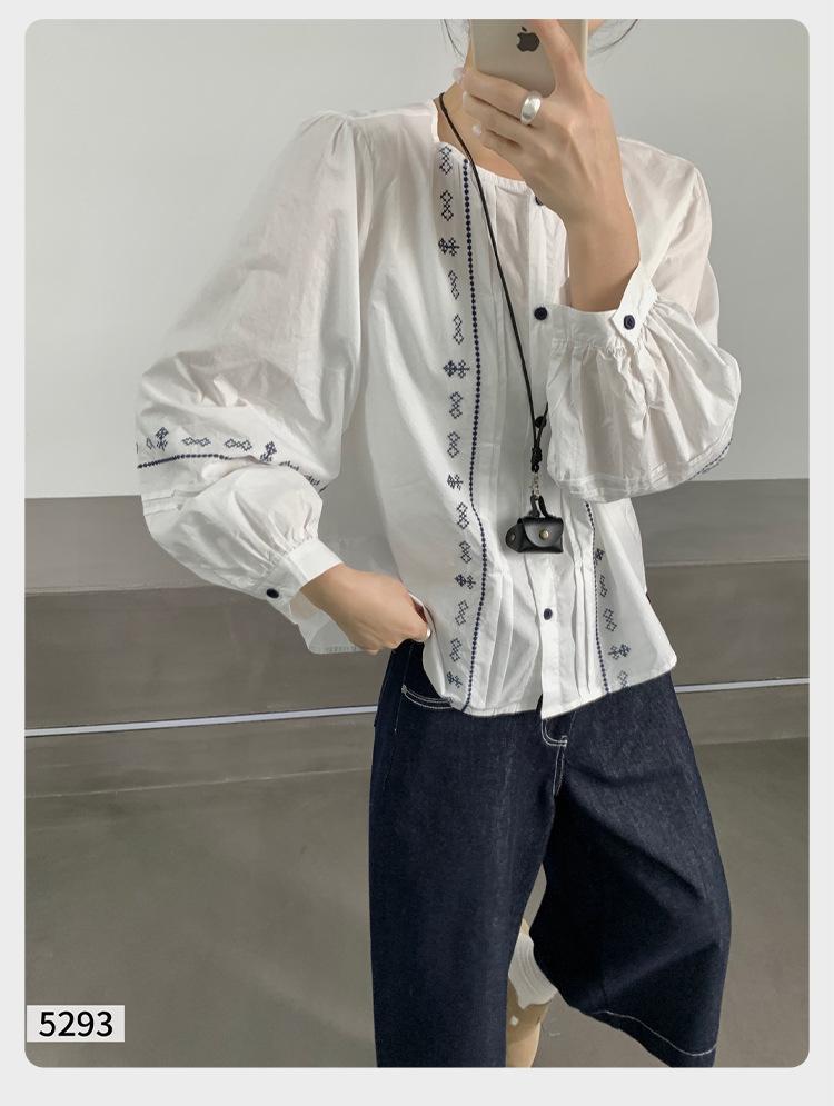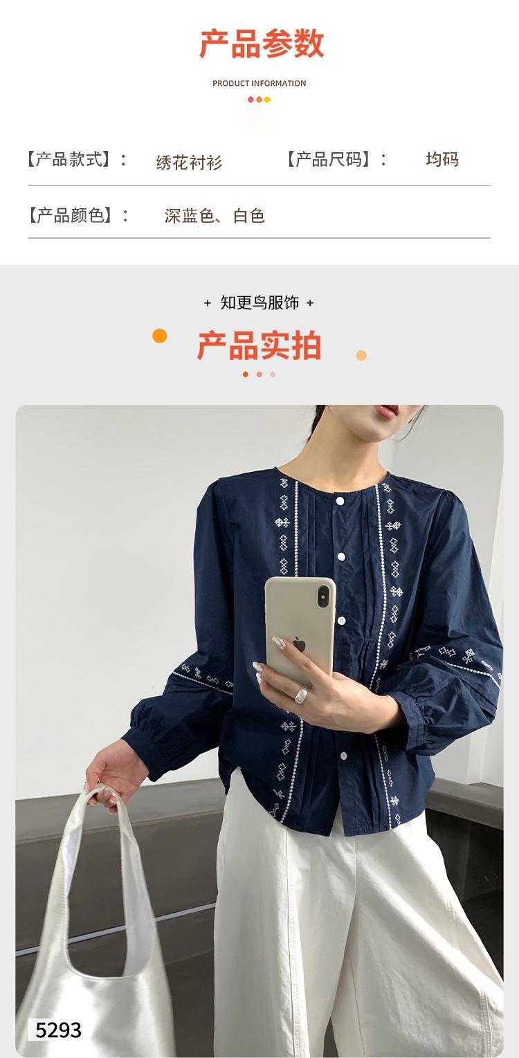 Principios de Otoño Nuevo Estilo Étnico Cuello Redondo Bordado Manga Larga Linterna Camisa Holgada Temperamento Simple Adelgazante Top Retro Mujer