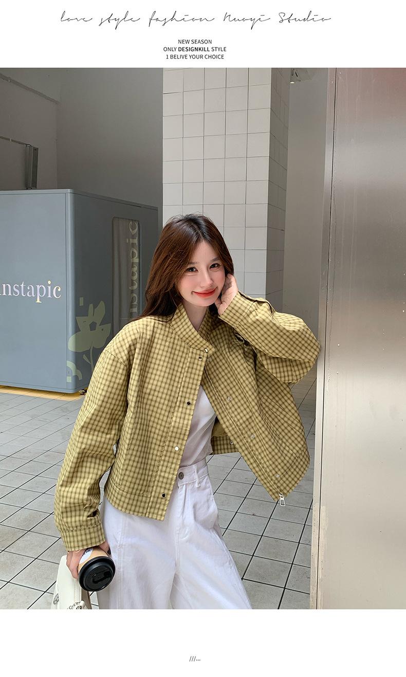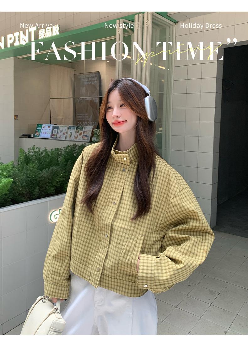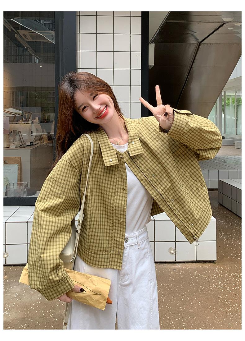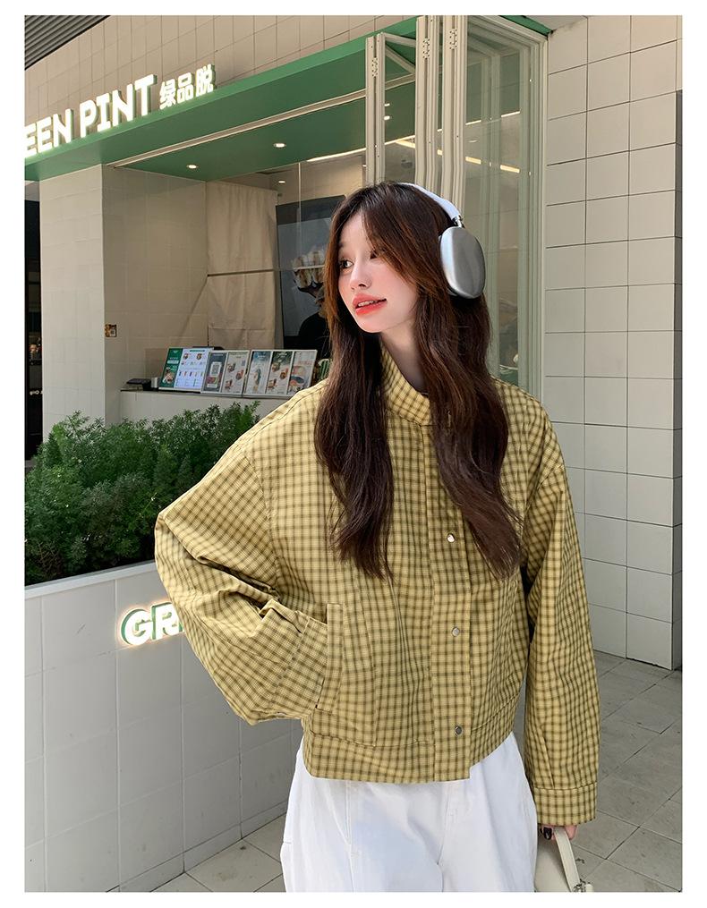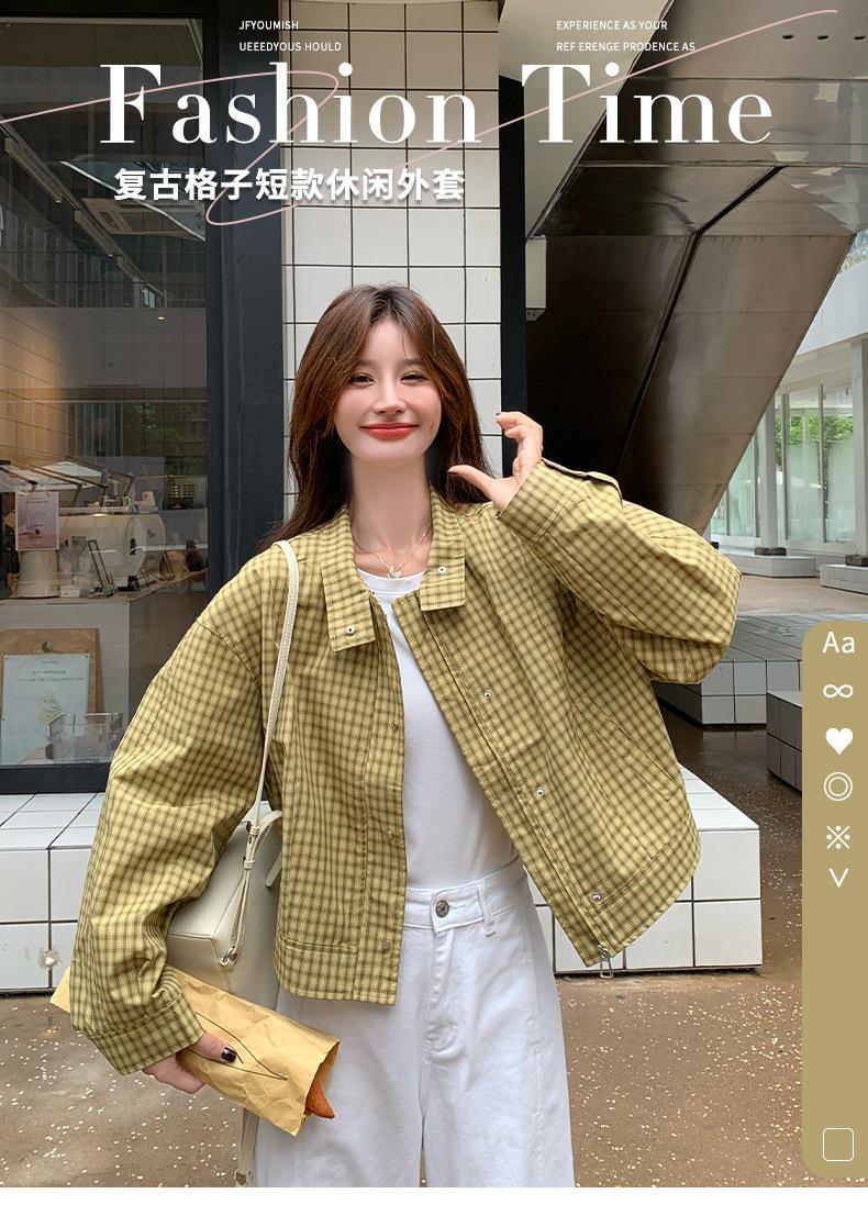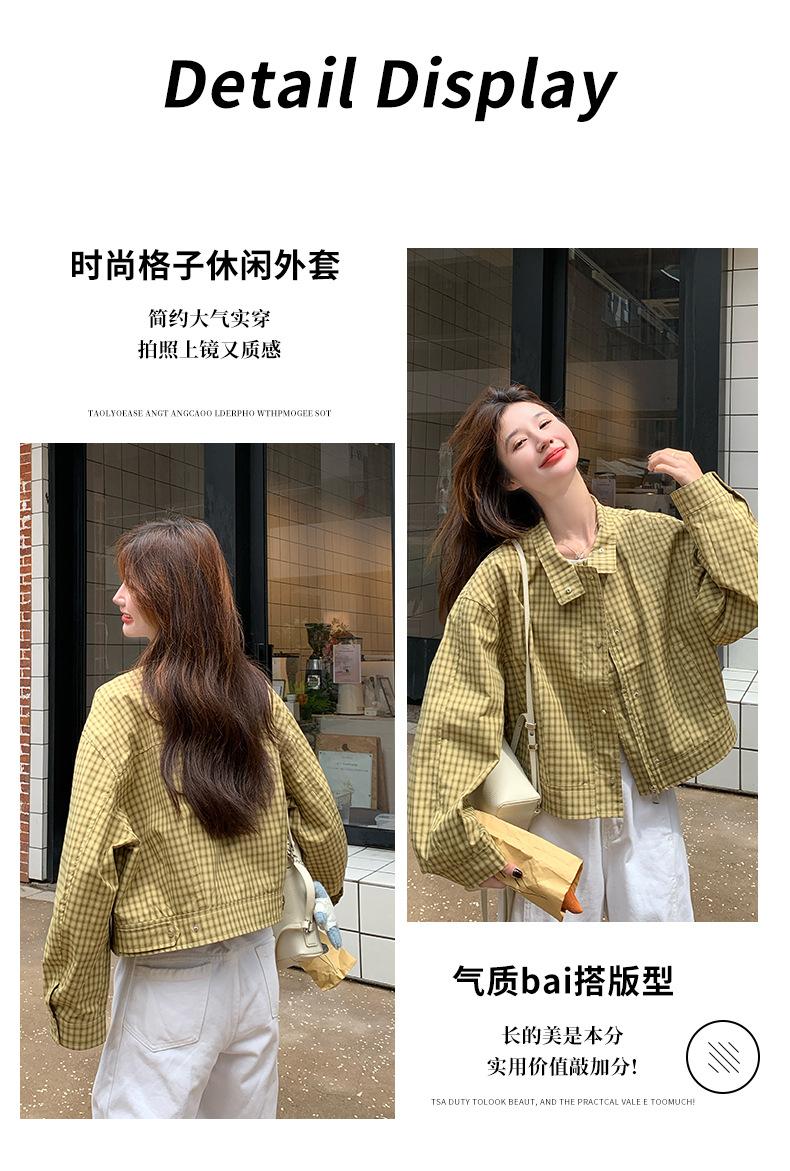 2025 Primavera y Otoño Nuevas Llegadas Reductor de Edad Versátil Cómodo y Agradable para la Piel Casual Mejora la Calidad Chaqueta Corta de Cuadros Amarillos Tendencia