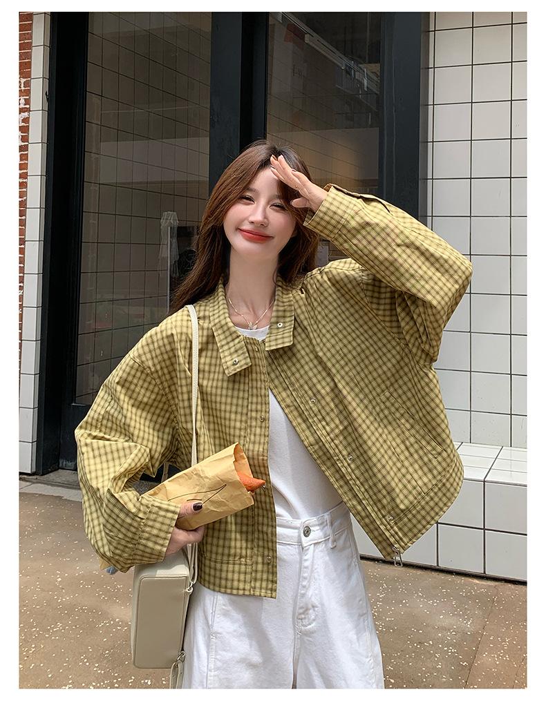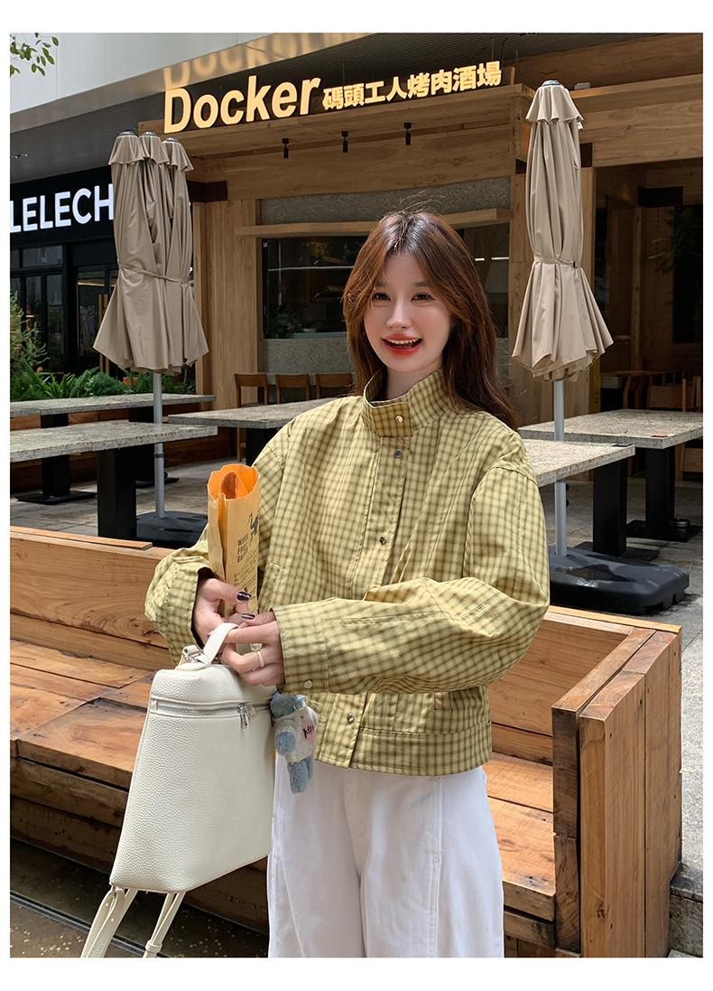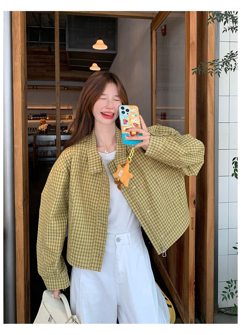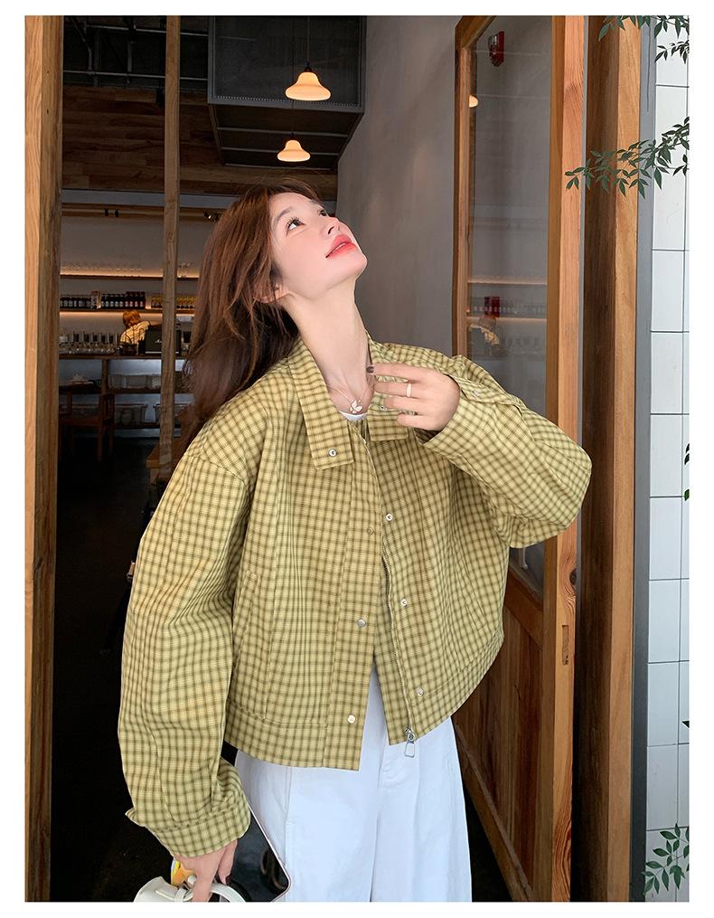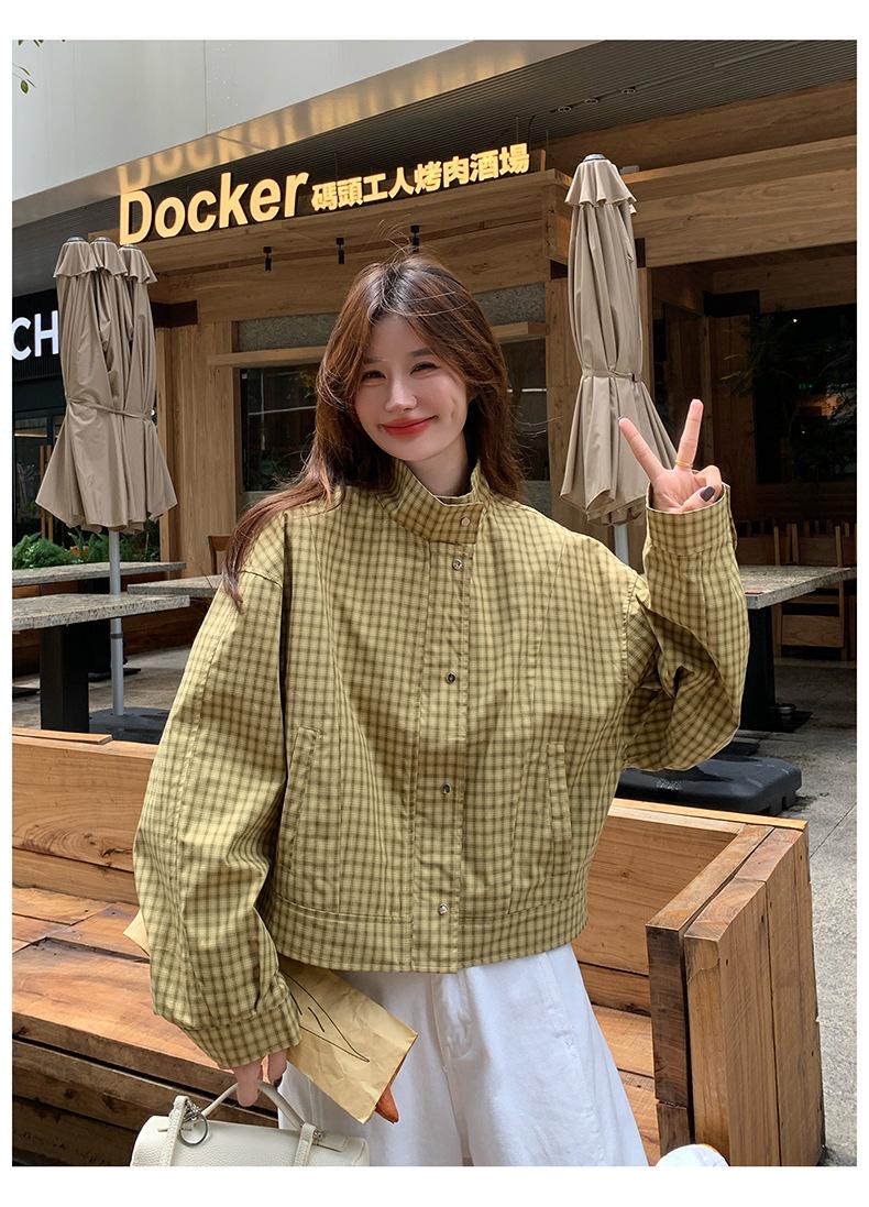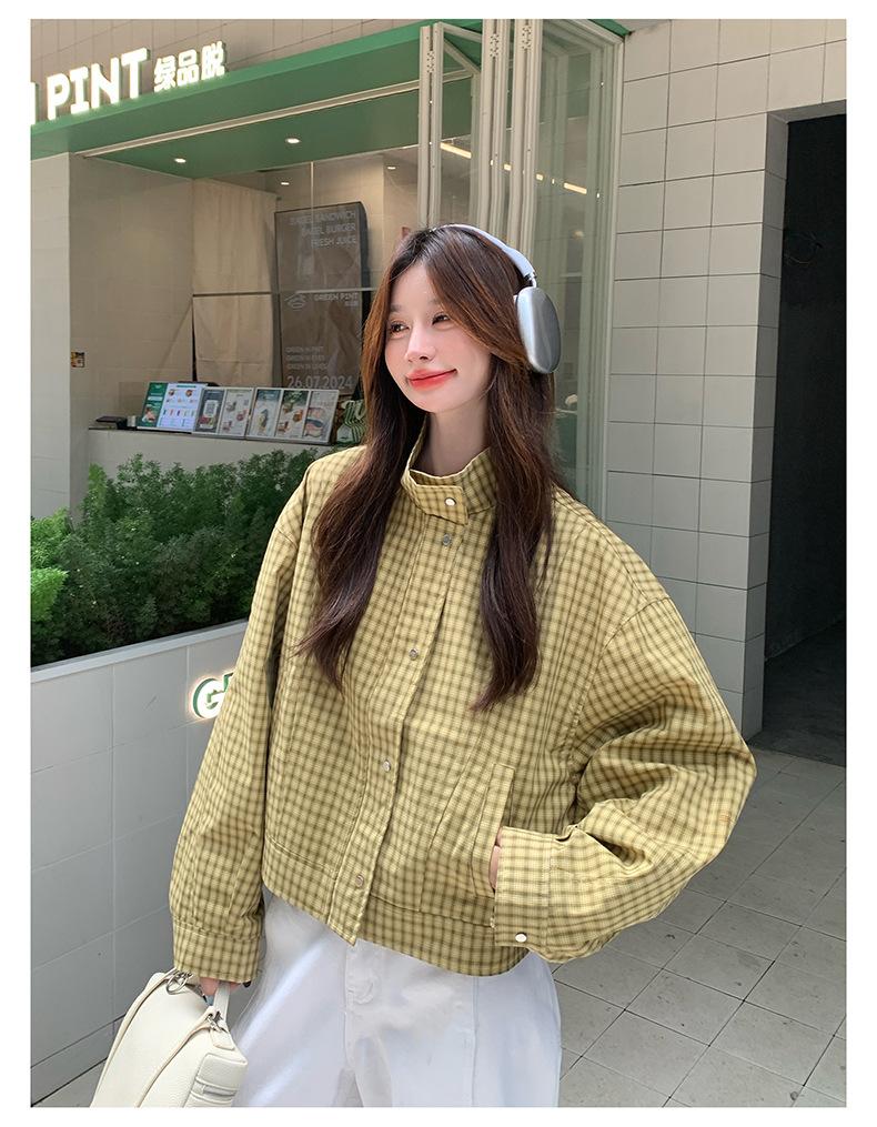 2025 Primavera y Otoño Nuevas Llegadas Reductor de Edad Versátil Cómodo y Agradable para la Piel Casual Mejora la Calidad Chaqueta Corta de Cuadros Amarillos Tendencia