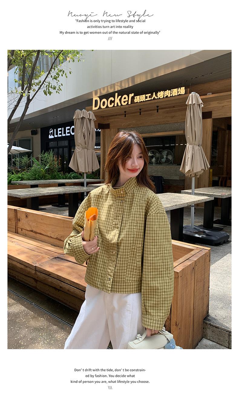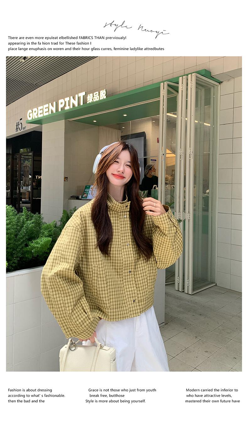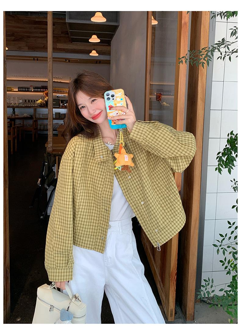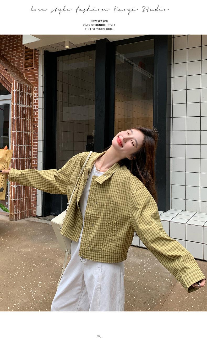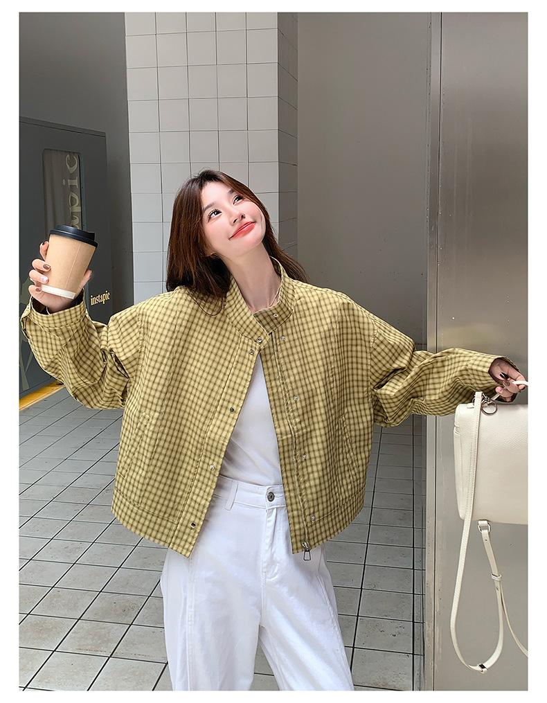 2025 Primavera y Otoño Nuevas Llegadas Reductor de Edad Versátil Cómodo y Agradable para la Piel Casual Mejora la Calidad Chaqueta Corta de Cuadros Amarillos Tendencia