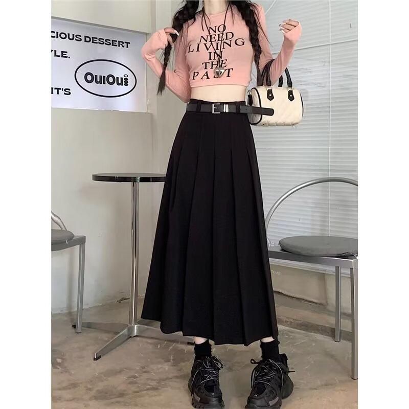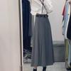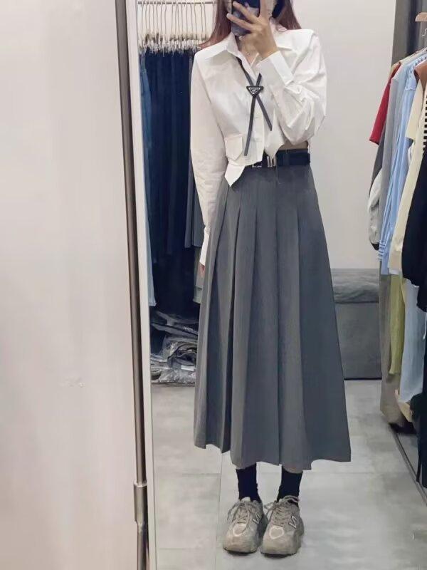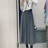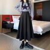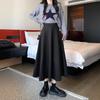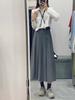 Traje Gris Falda Midi Plisada para Mujer Nuevo Otoño Temprano Drapeado Adelgazante Línea A Falda Paraguas Versátil Gran Vuelo Falda Larga