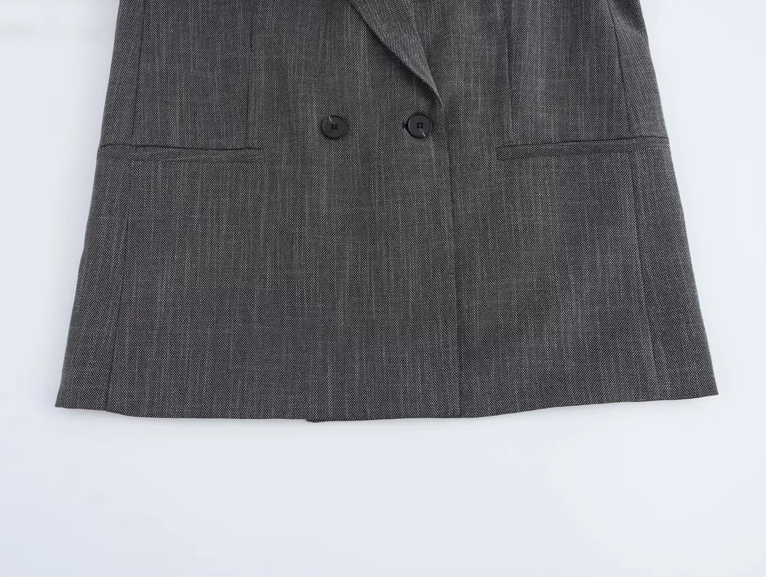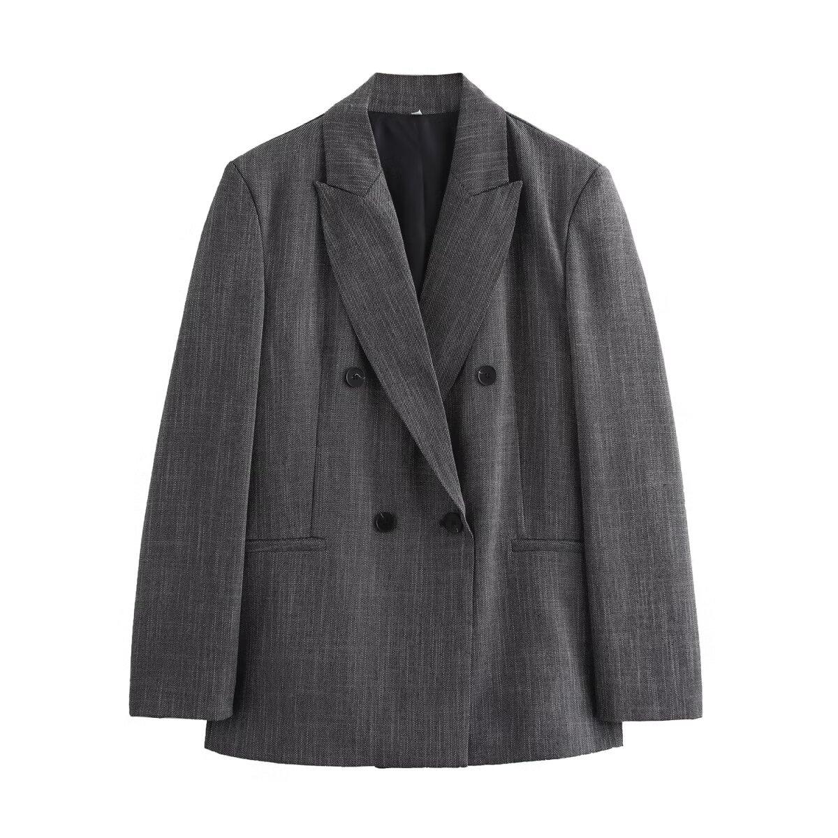 ZA AliExpress Vendedor Caliente Comercio Exterior Transfronterizo Estilo Europeo y Americano Moda para Mujer Versátil Chaqueta de Traje Cruzada con Hombreras