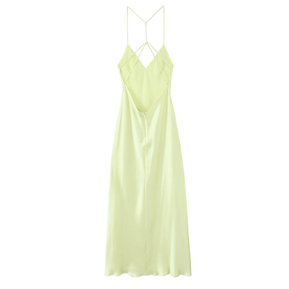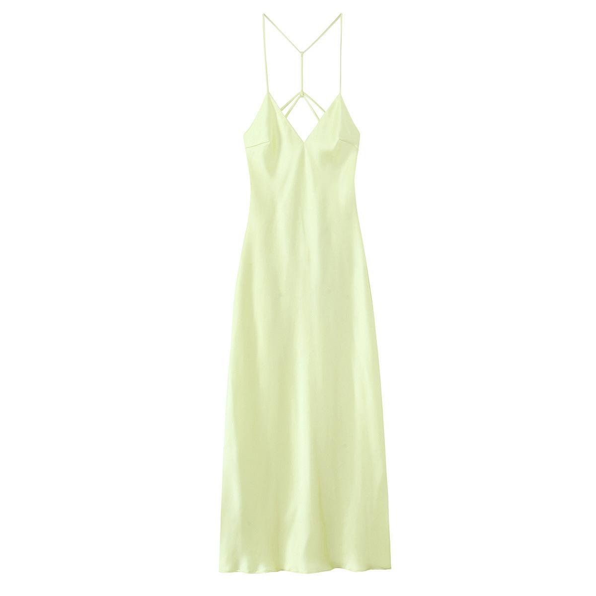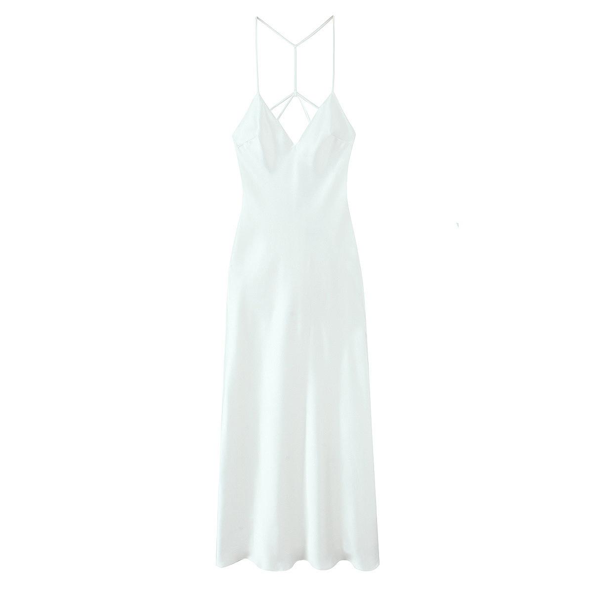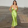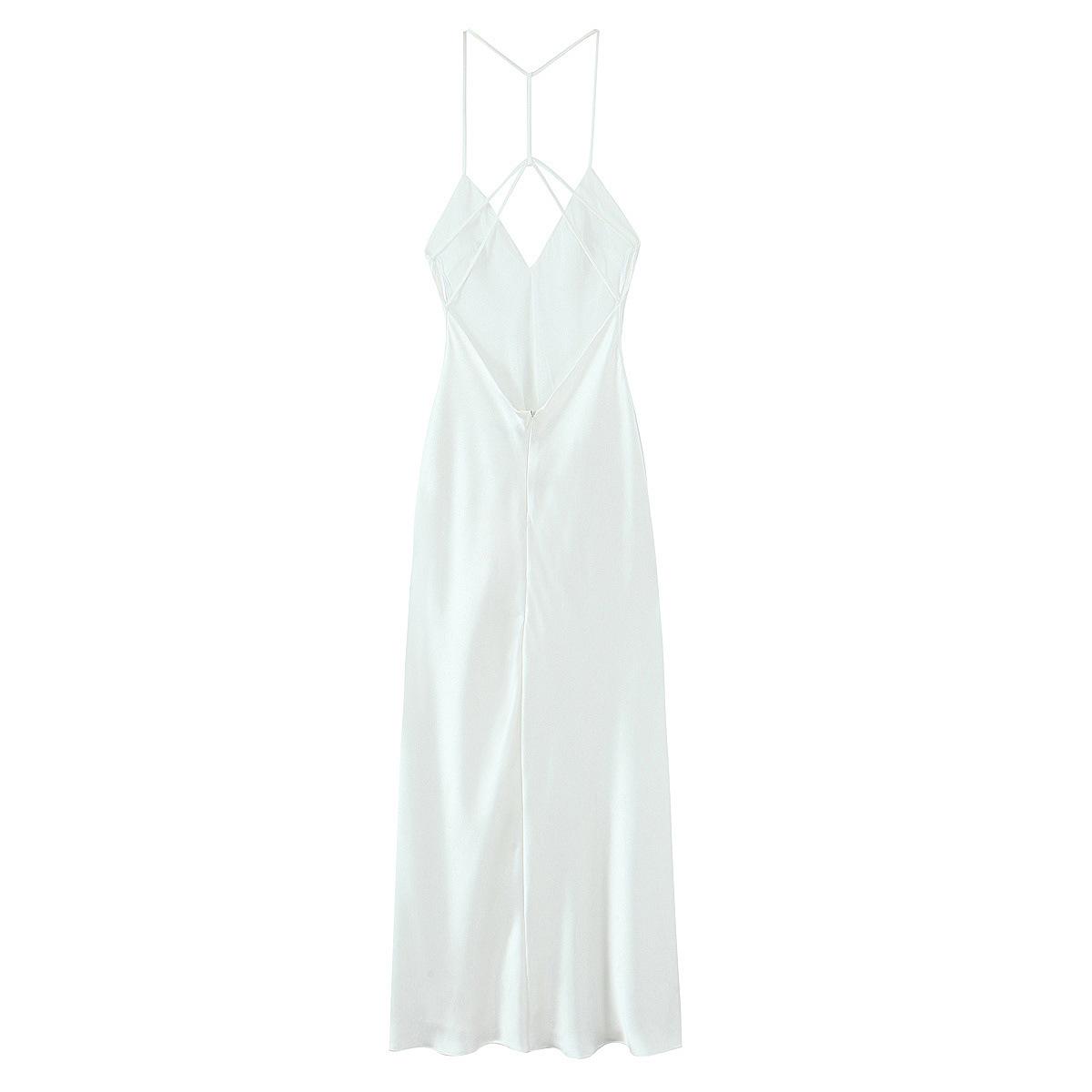 2025 Nuevo Estilo de Verano Estilo Europeo y Americano Sexy Ajustado Diseño Grande Sin Espalda Vestido de Textura de Satén de Seda Falda Larga con Tirantes para Mujer