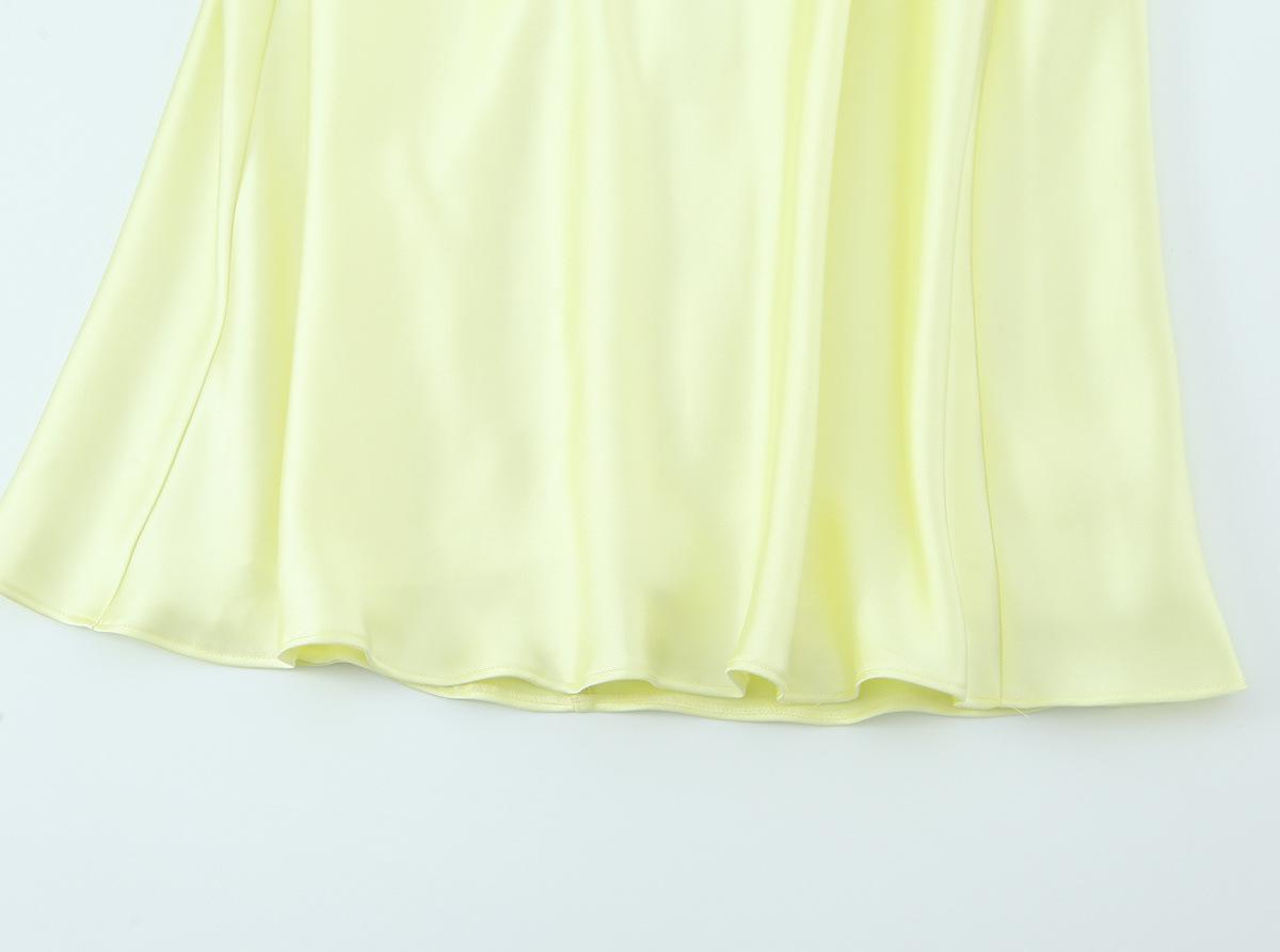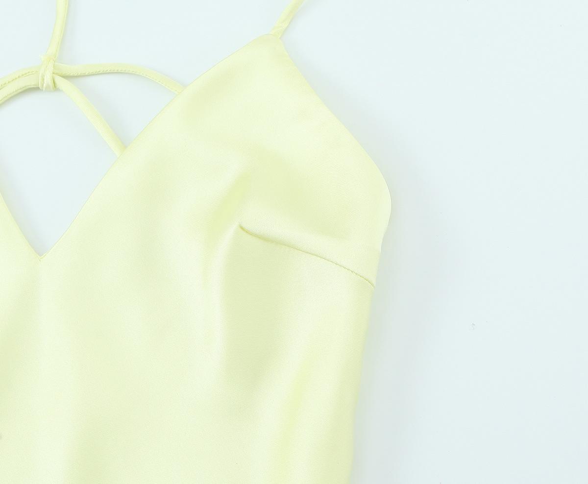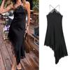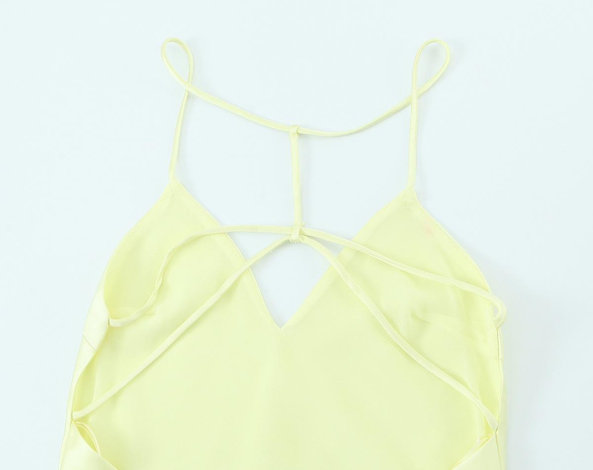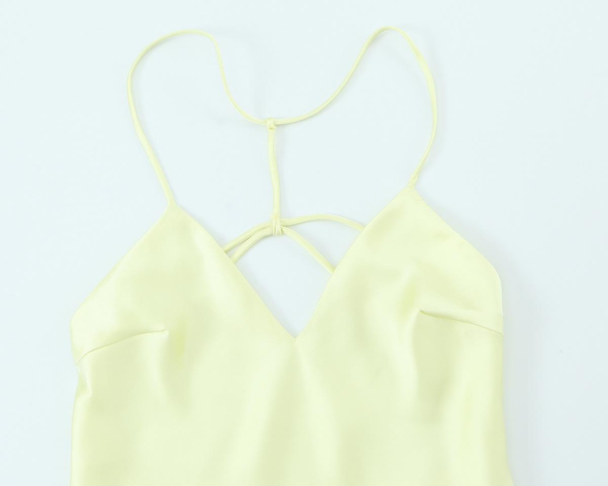 2025 Nuevo Estilo de Verano Estilo Europeo y Americano Sexy Ajustado Diseño Grande Sin Espalda Vestido de Textura de Satén de Seda Falda Larga con Tirantes para Mujer