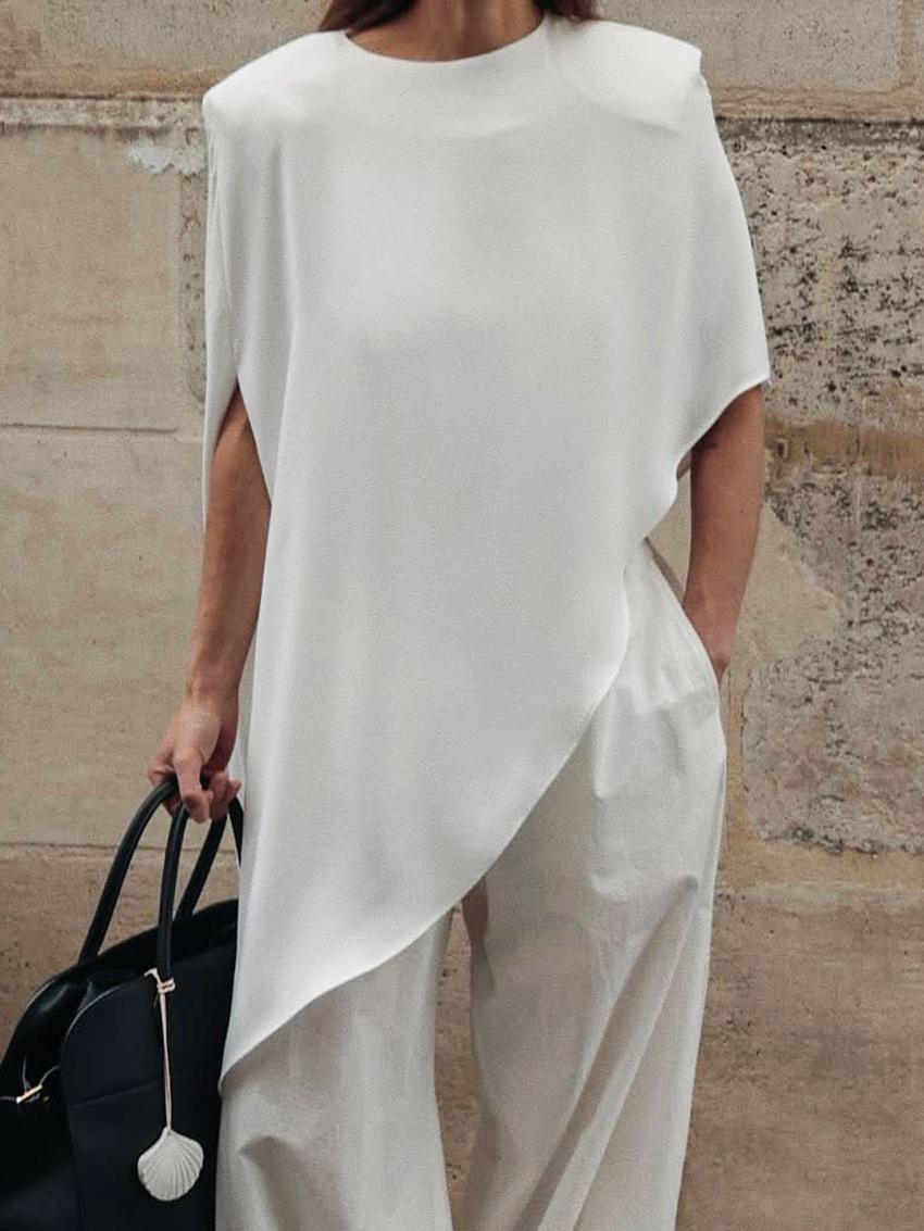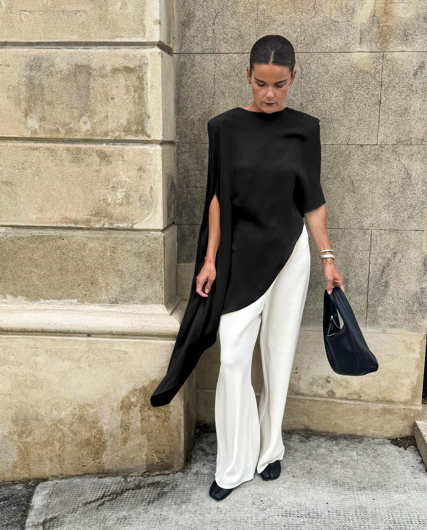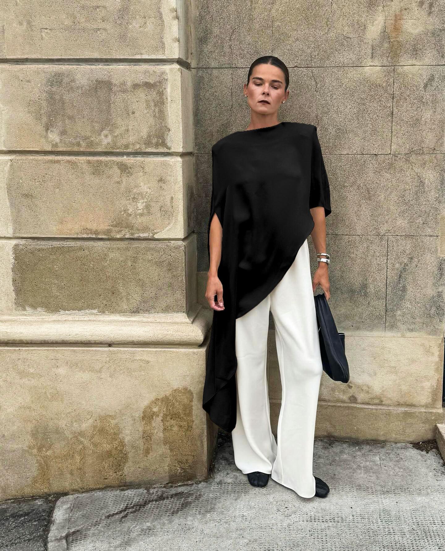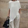 Otoño e invierno nueva camisa asimétrica de manga corta top de seda de imitación satén mujeres sentido del diseño temperamento moda 2025 transfronterizo
