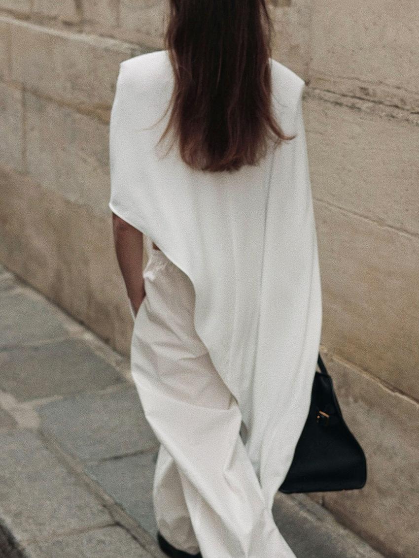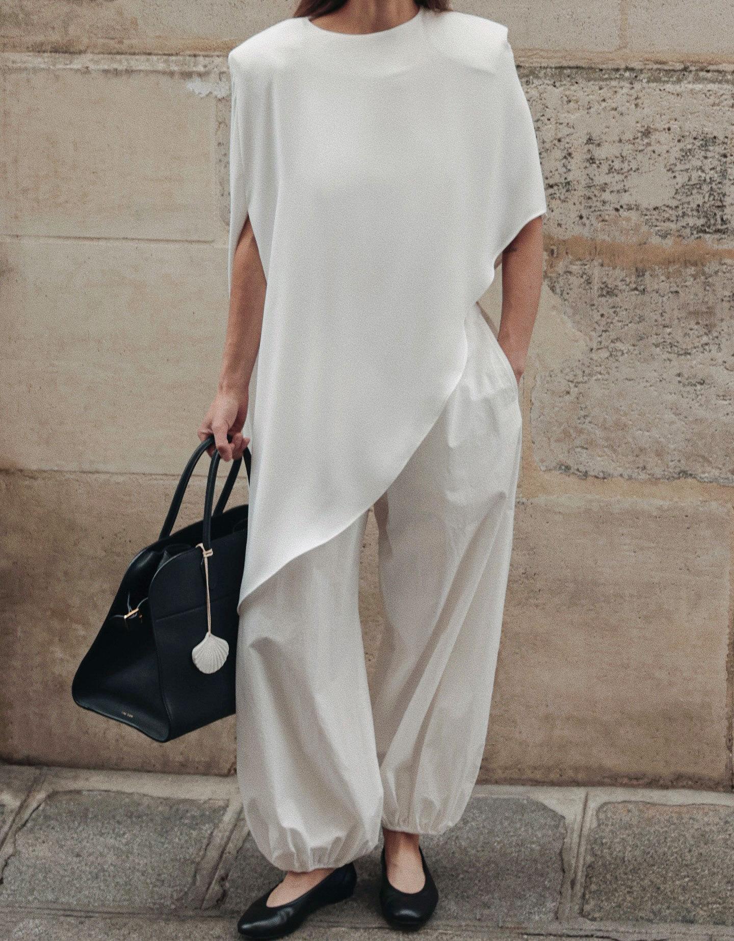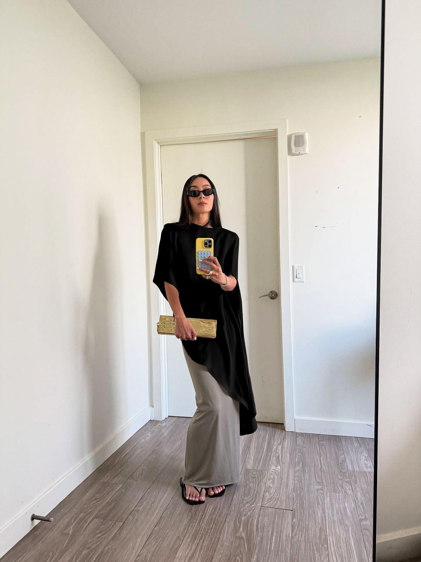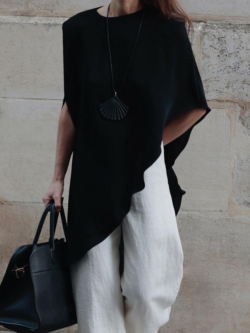 Otoño e invierno nueva camisa asimétrica de manga corta top de seda de imitación satén mujeres sentido del diseño temperamento moda 2025 transfronterizo
