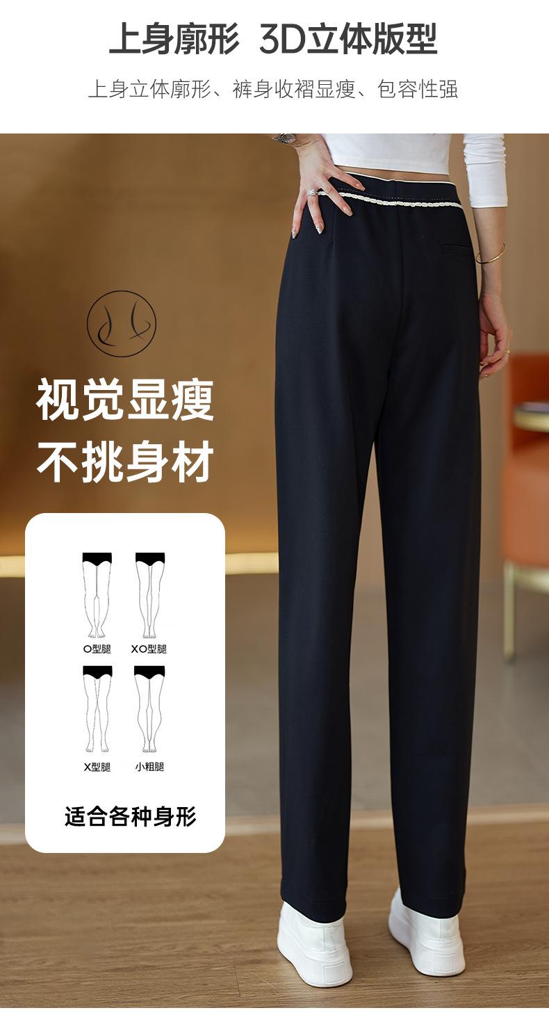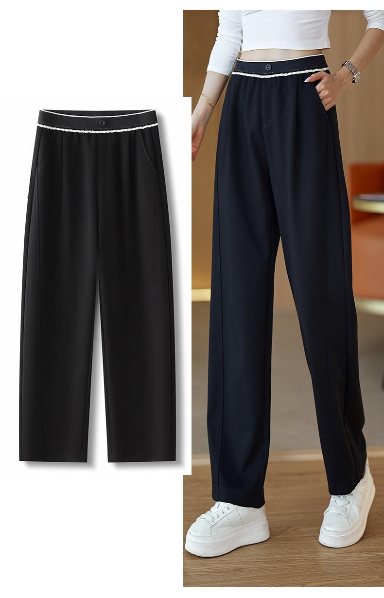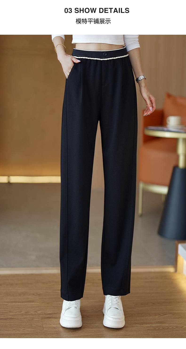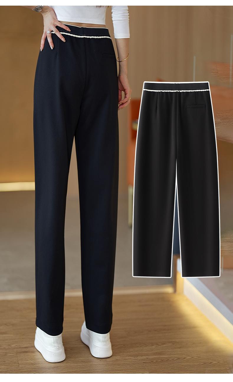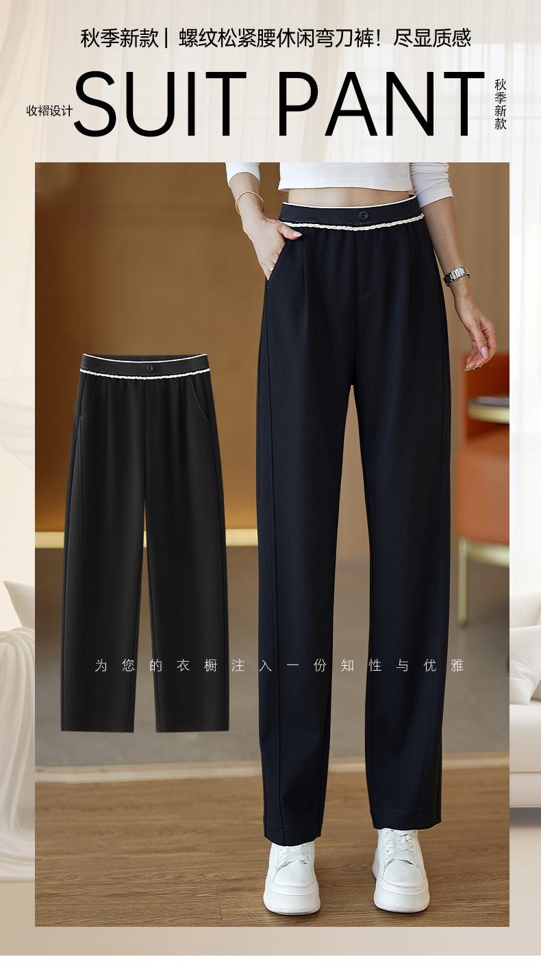 Pantalones casuales cimitarra de cintura elástica acanalada de alta gama para mujer, nueva moda de otoño, pantalones de sarga entallados de pierna recta