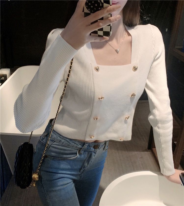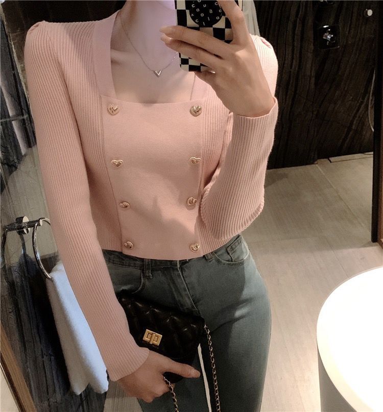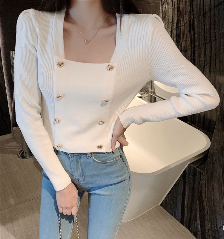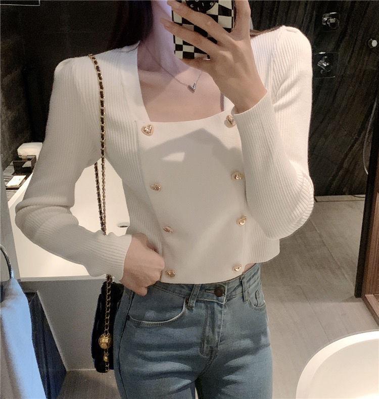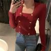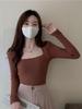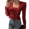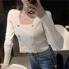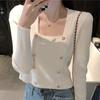 Top Básico de Punto de Manga Larga con Cuello Cuadrado para Mujer Otoño/Invierno 2025 Nuevo Diseño Nicho Suéter Corto