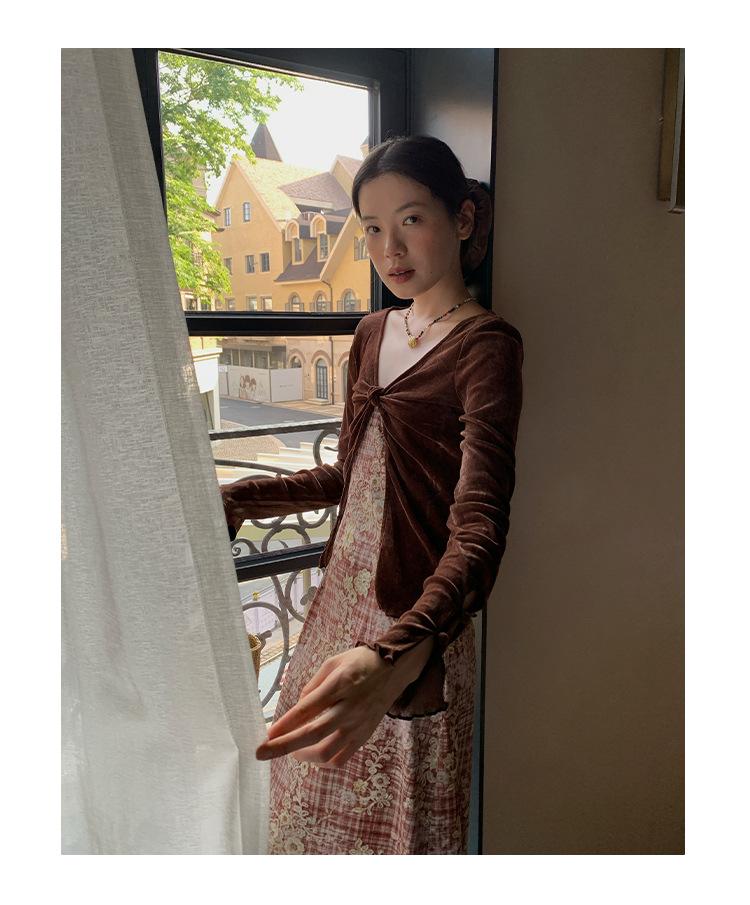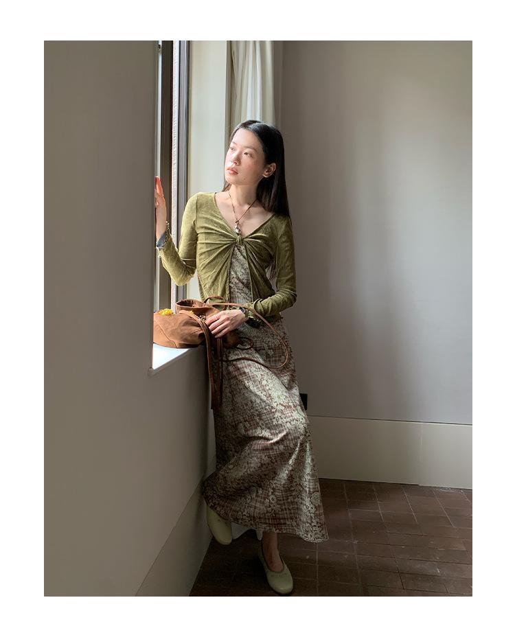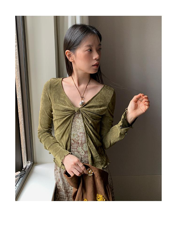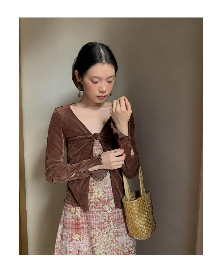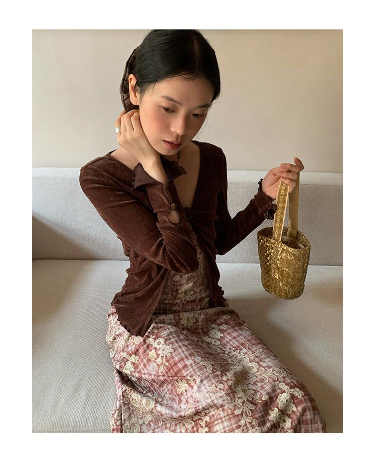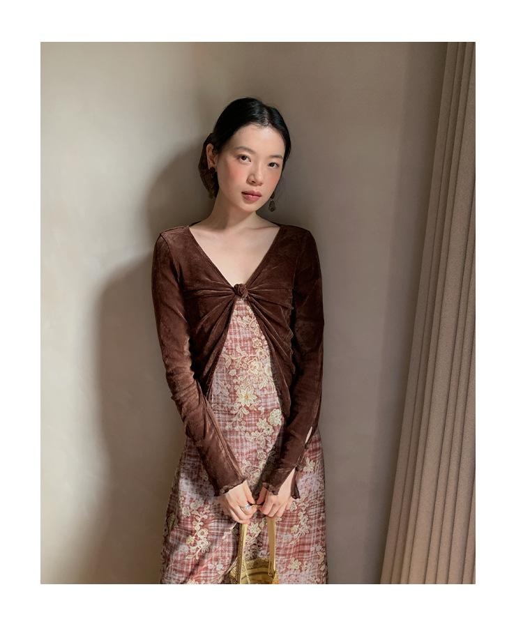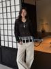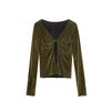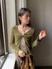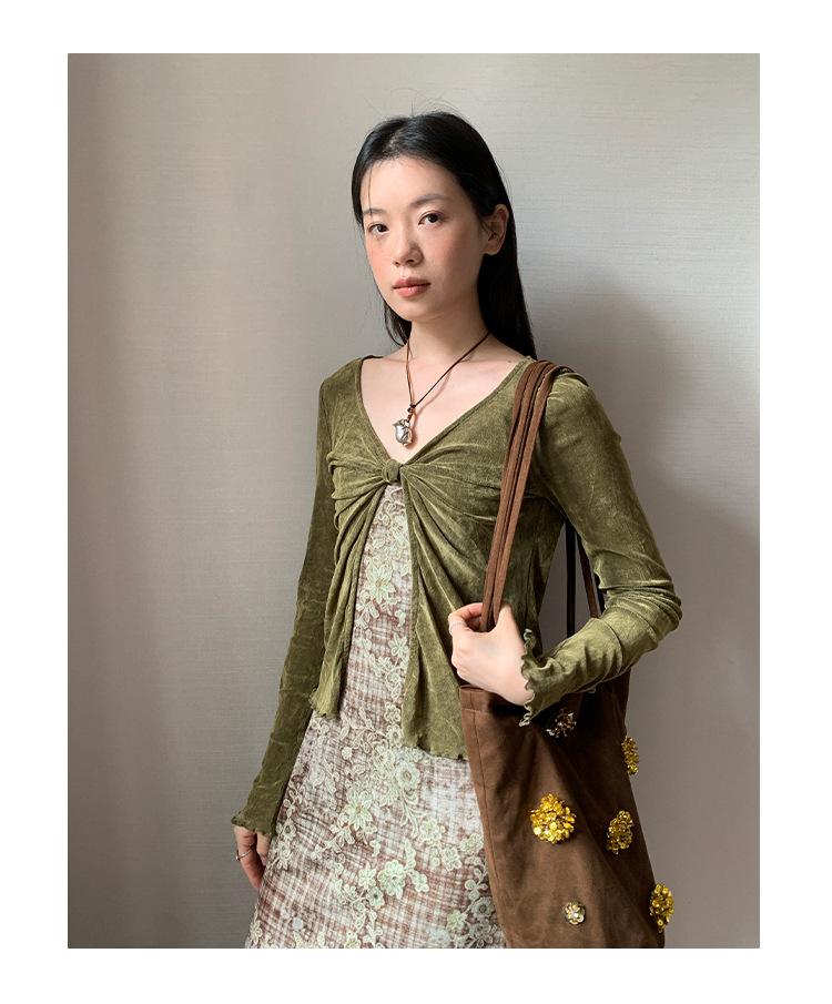 08.25 Trece Líneas Otoño Temprano 25 Otoño Retro Ajustado Manga Larga Capas Trenzado Cuello en V Sudadera Jersey de Mujer F6561