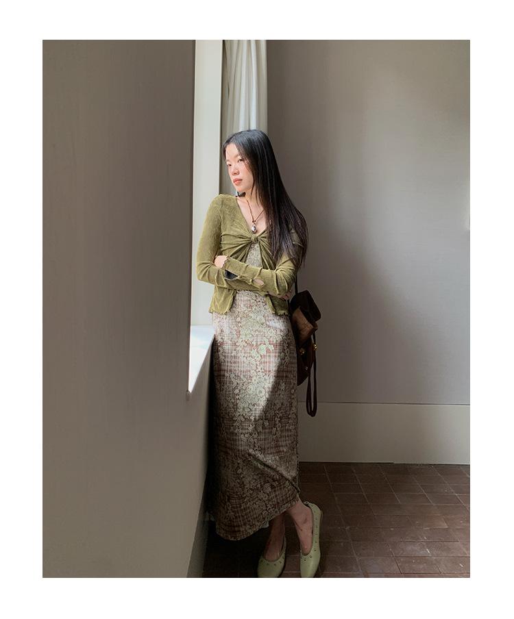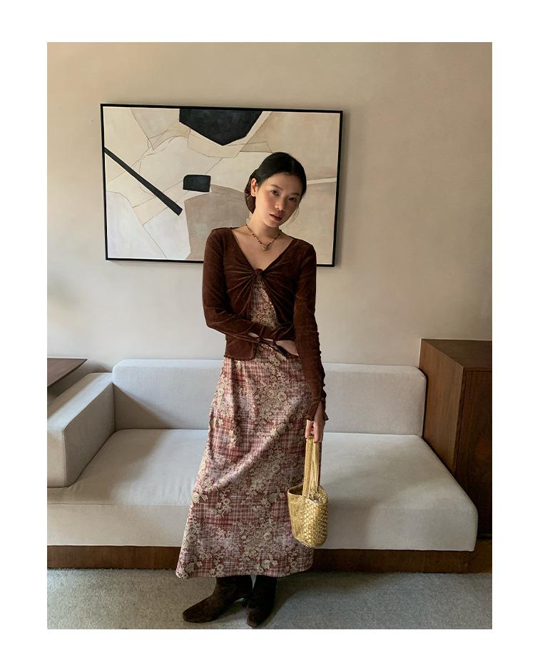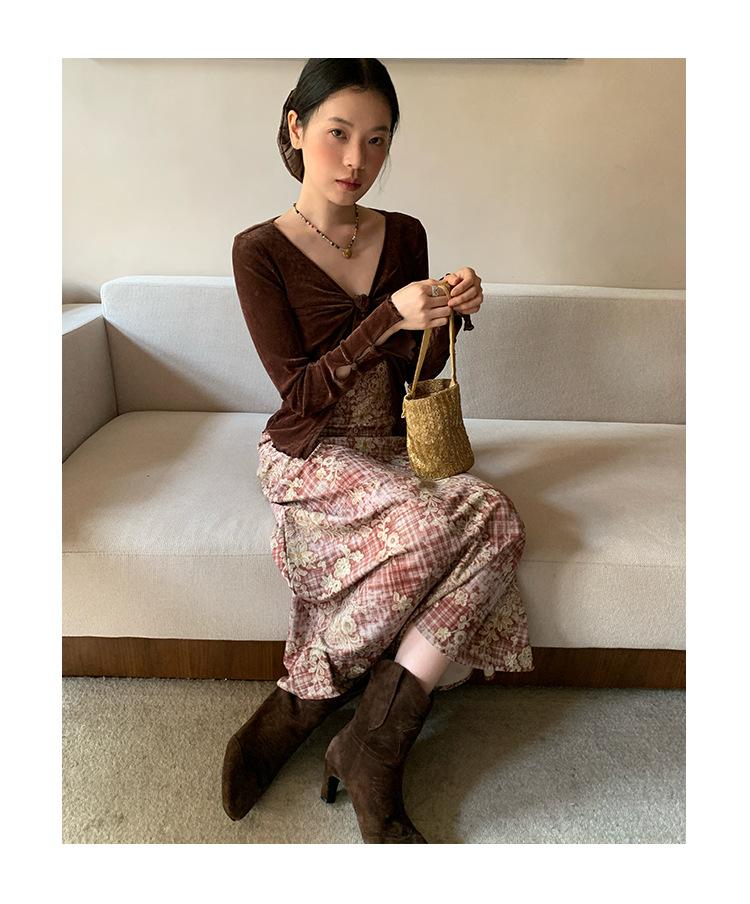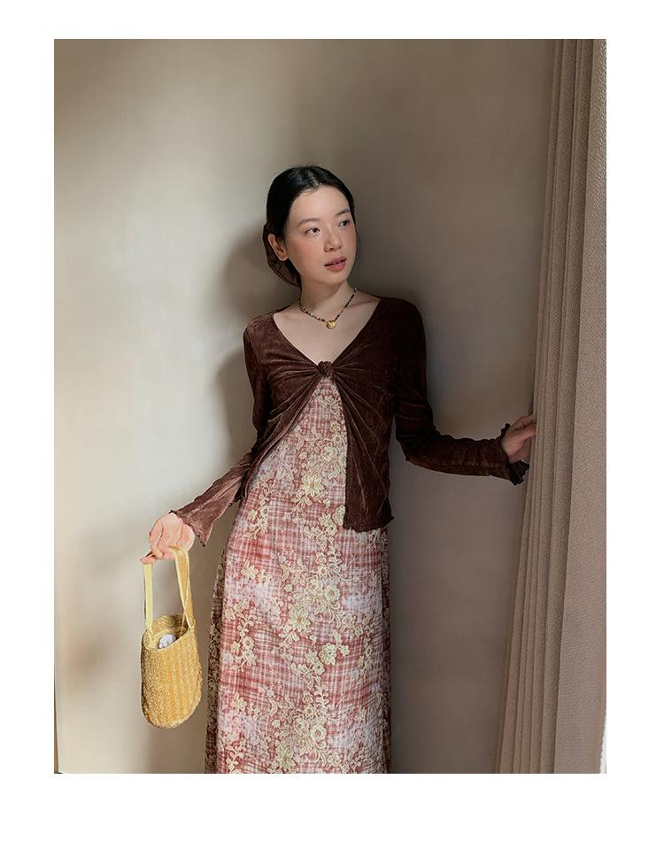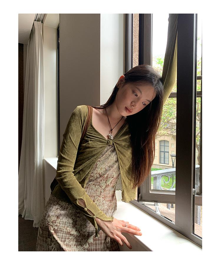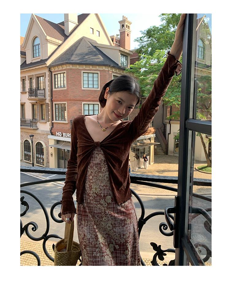 08.25 Trece Líneas Otoño Temprano 25 Otoño Retro Ajustado Manga Larga Capas Trenzado Cuello en V Sudadera Jersey de Mujer F6561