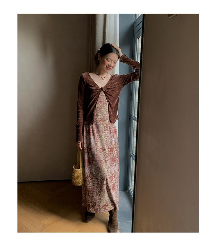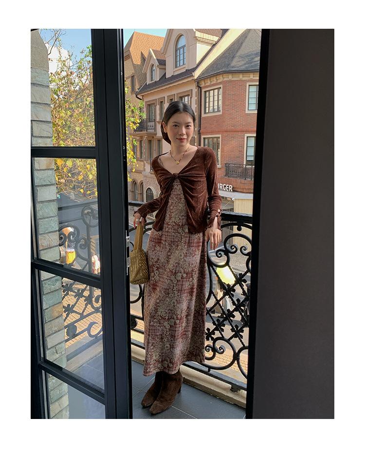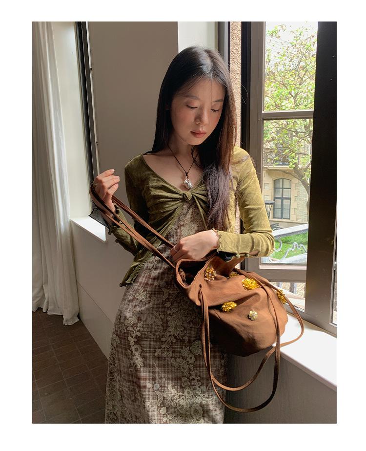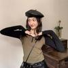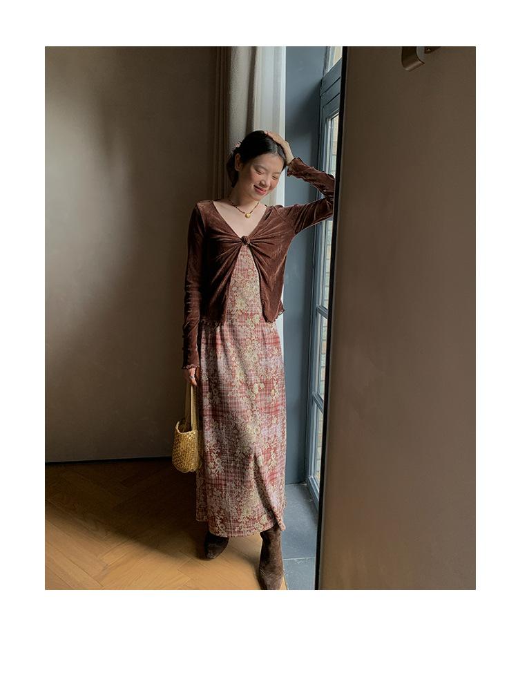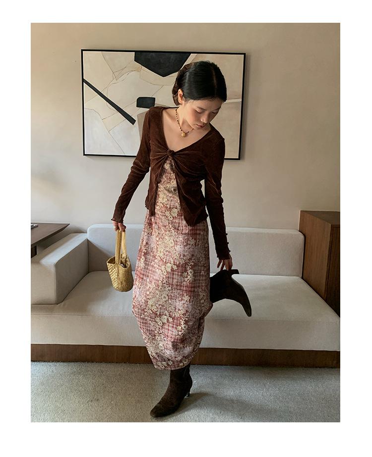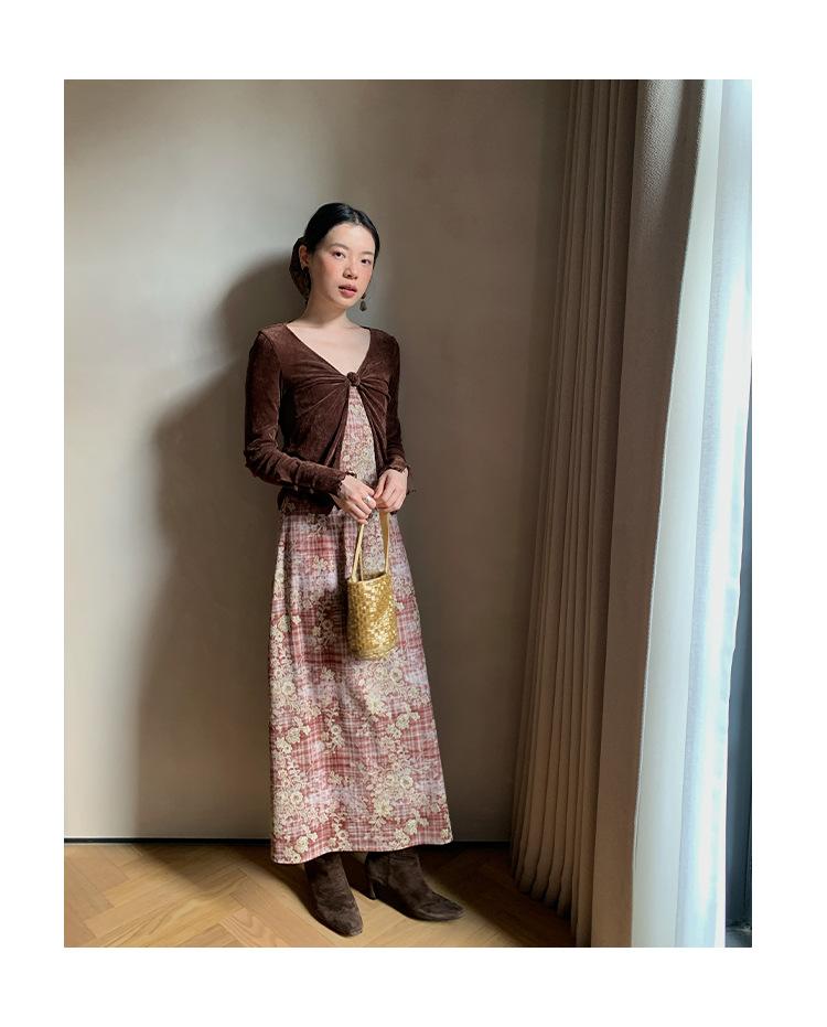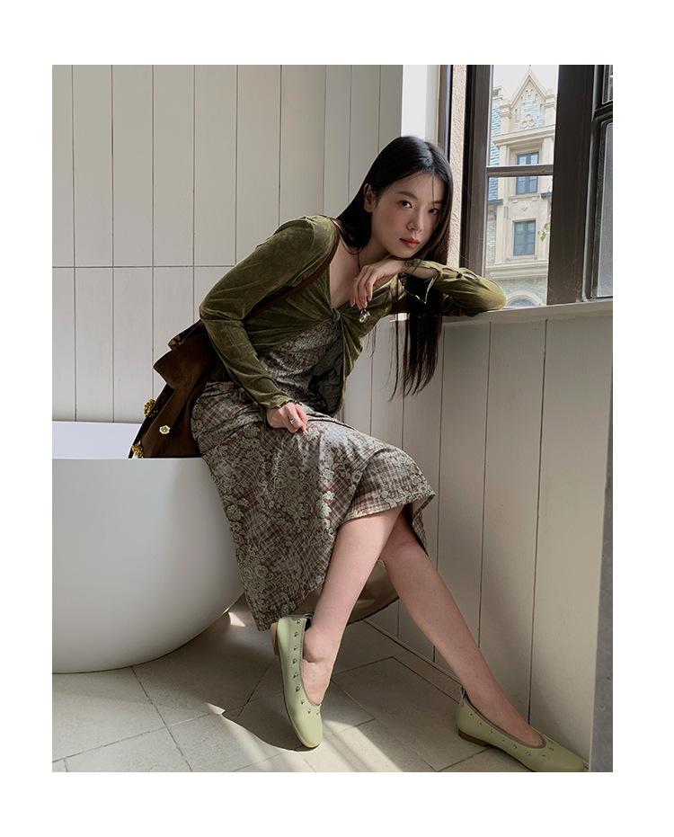 08.25 Trece Líneas Otoño Temprano 25 Otoño Retro Ajustado Manga Larga Capas Trenzado Cuello en V Sudadera Jersey de Mujer F6561