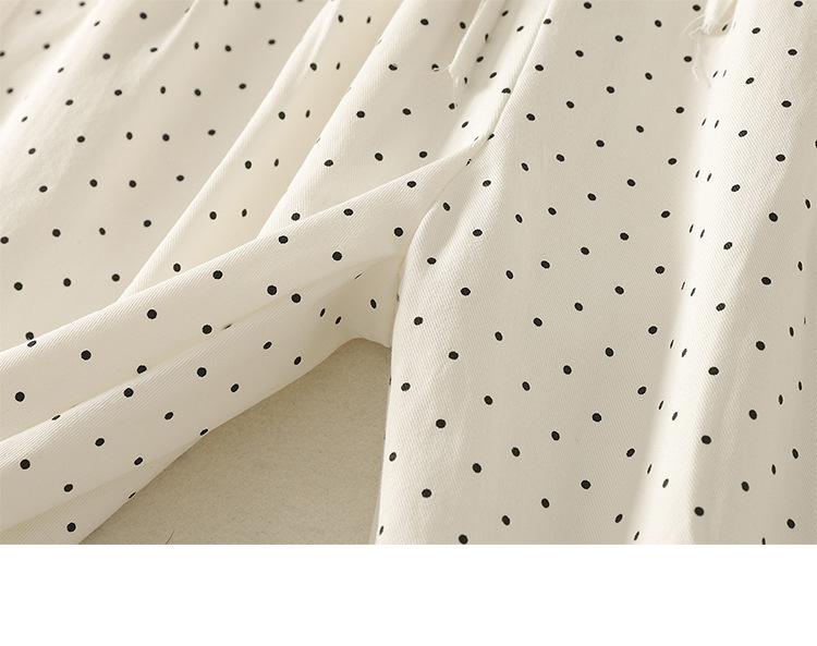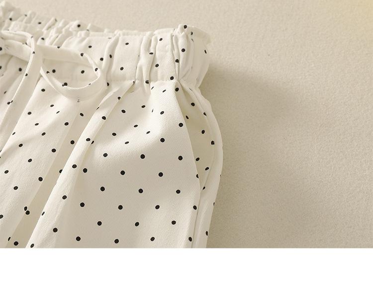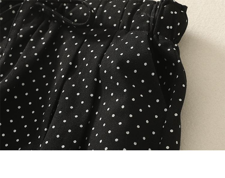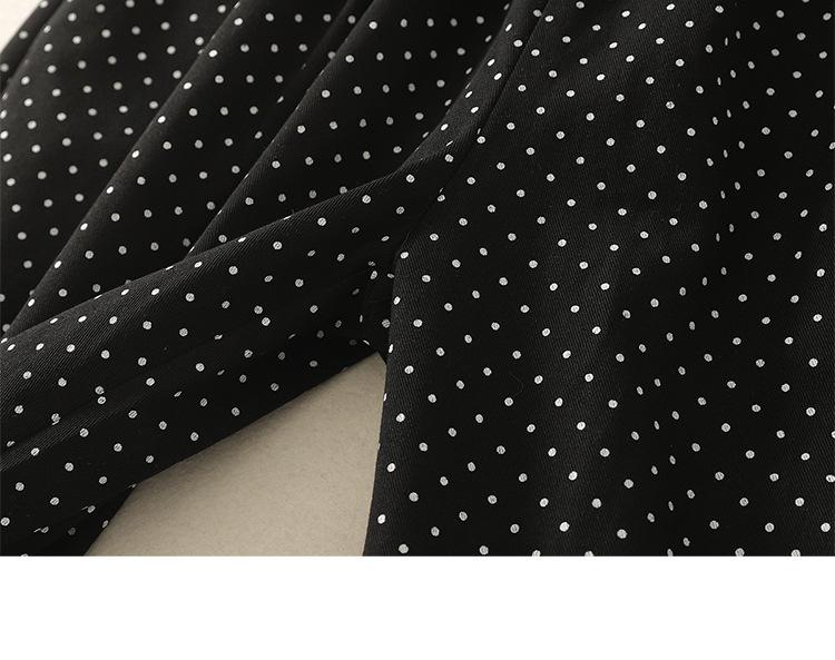 Foto Real de Pantalones Rectos de Pierna Ancha con Lunares Retro Negros para Mujer 2025 Verano Nuevos Pantalones Casuales Slim para Mujer