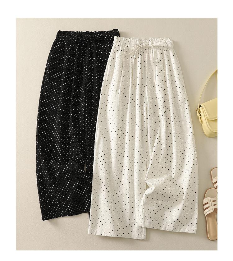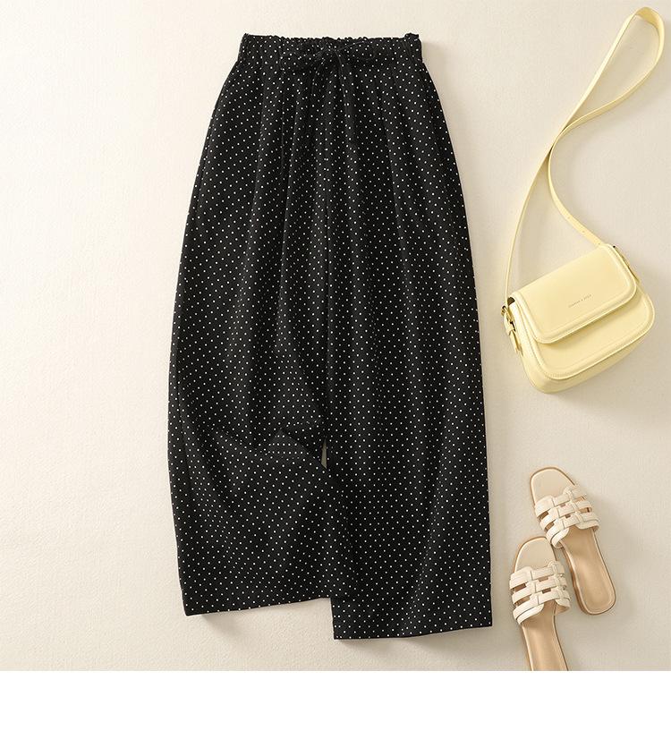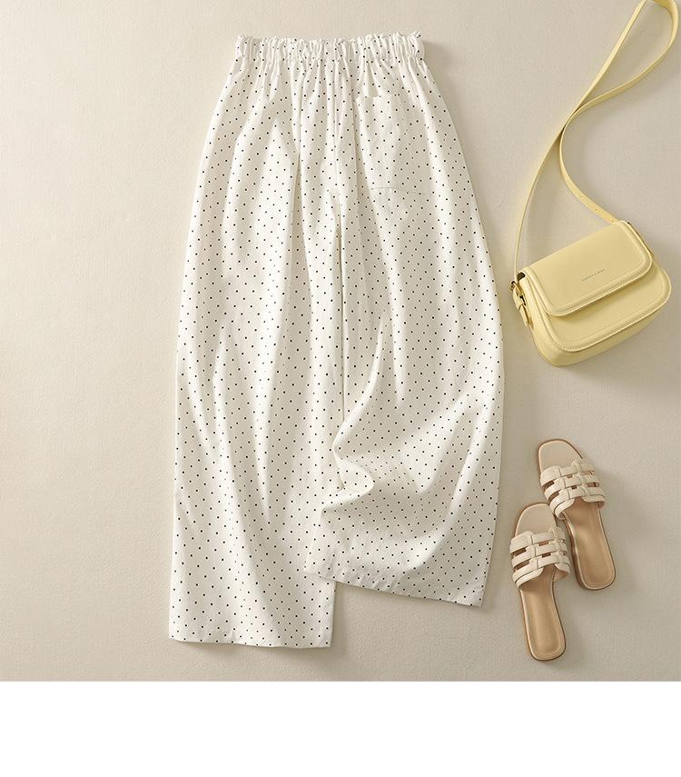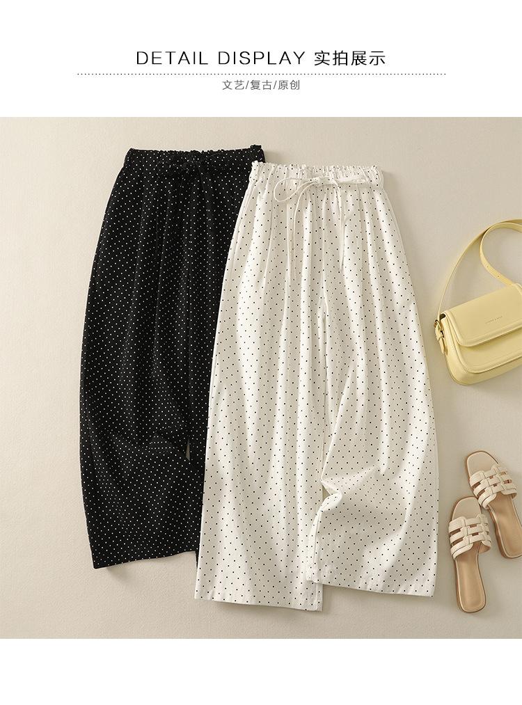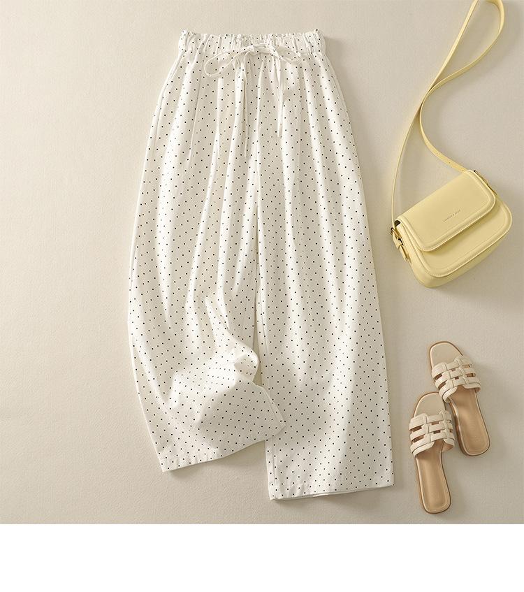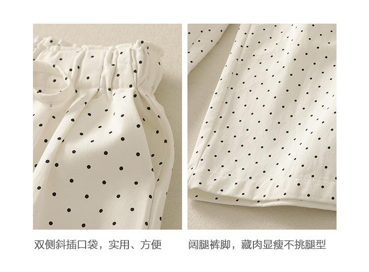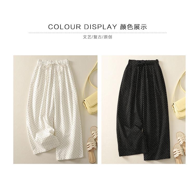 Compra Foto Real de Pantalones Rectos de Pierna Ancha con Lunares Retro Negros para Mujer 2025 Verano Nuevos Pantalones Casuales Slim para Mujer al por mayor en Joom.pro