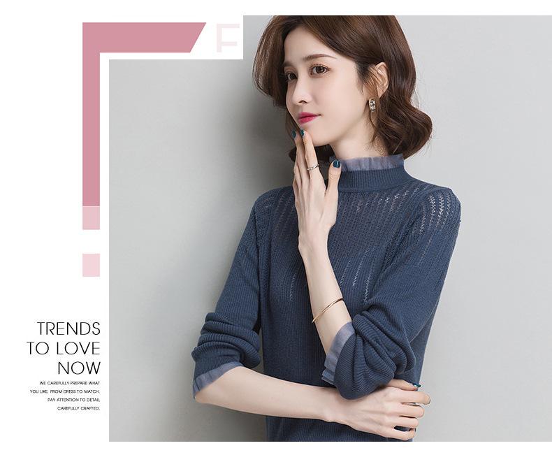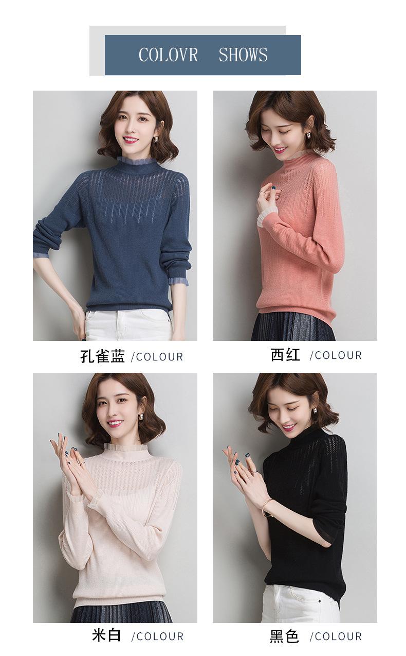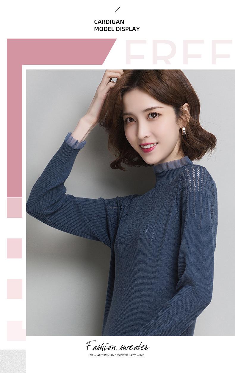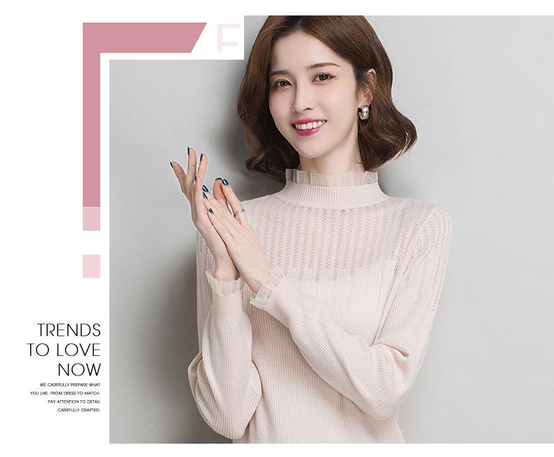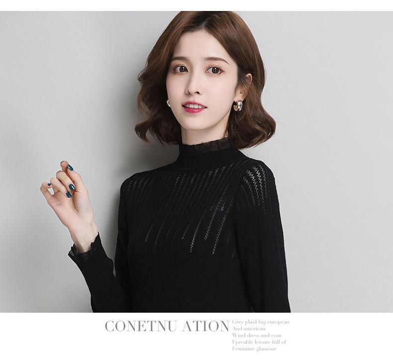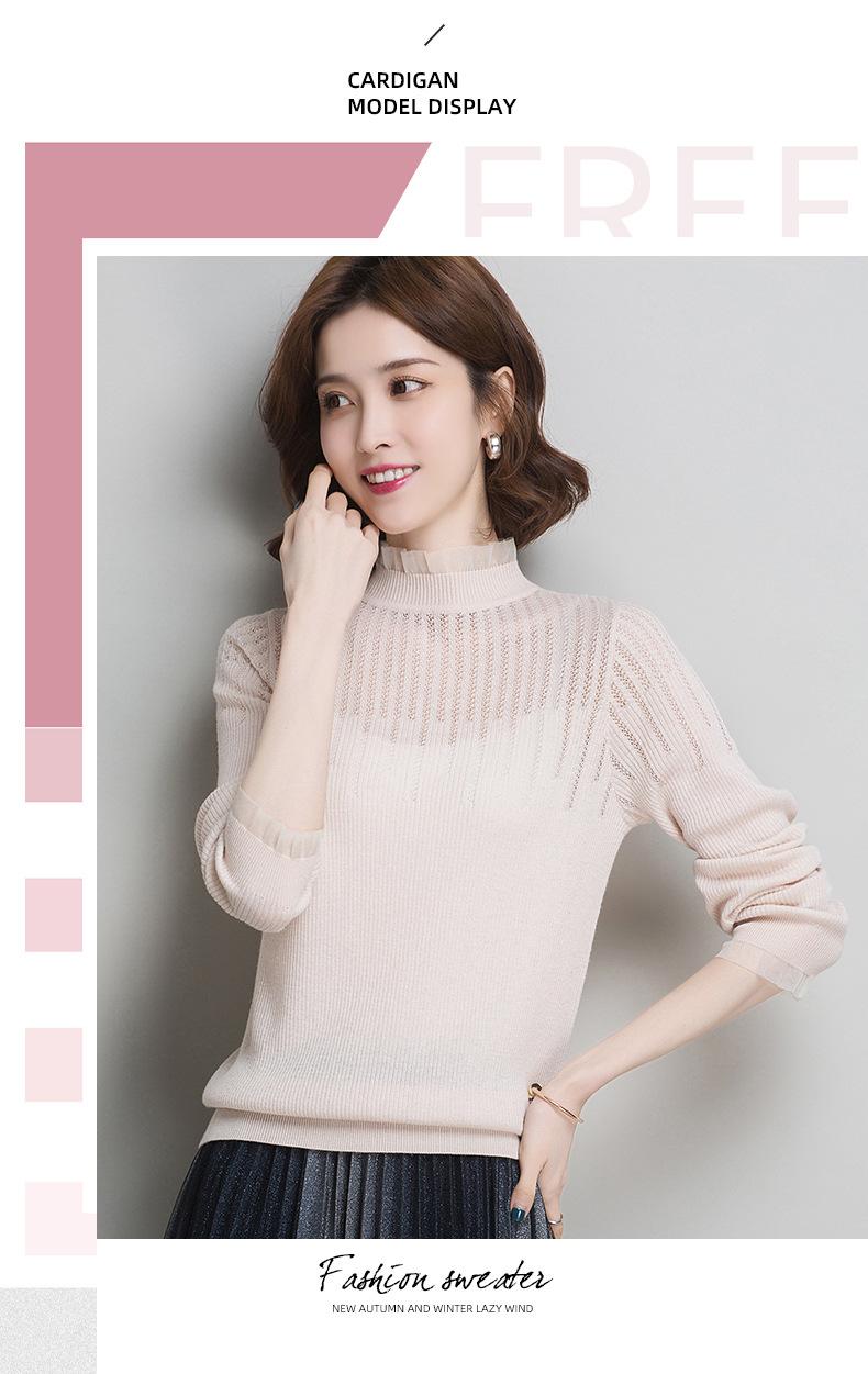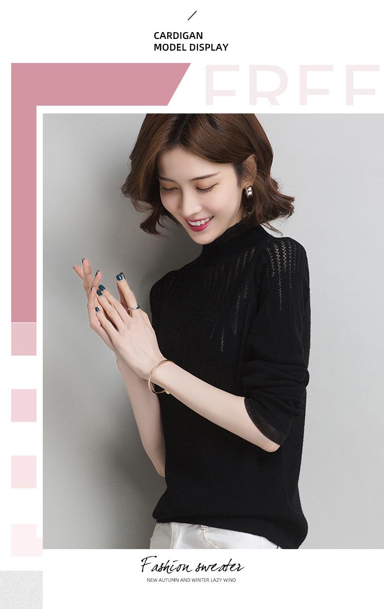 Nuevo Suéter de Lana Versátil para Mujer de Principios de Otoño Cuello Semi-Alto Capa Interior Suéter Base Color Sólido Adelgazante Tejido de Punto para Mujer
