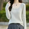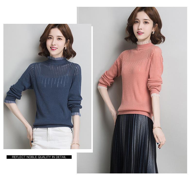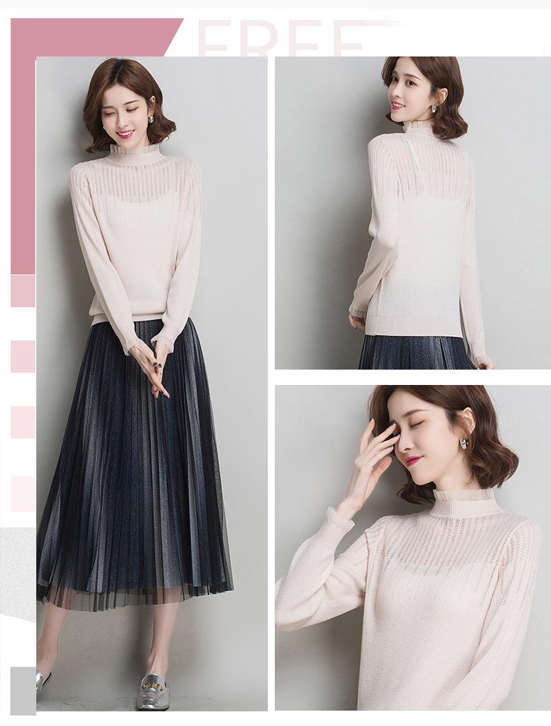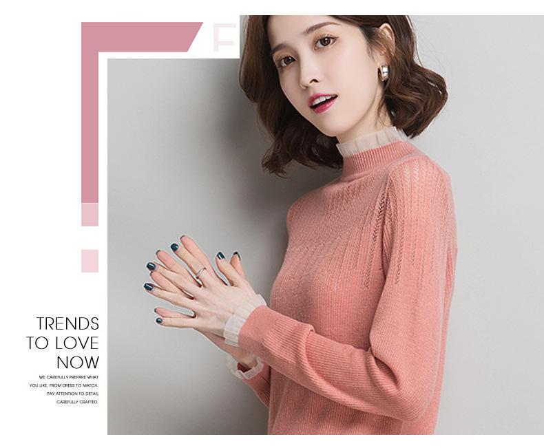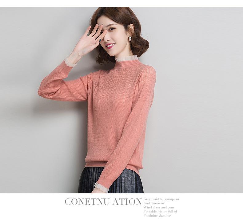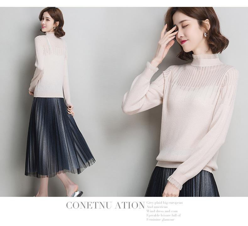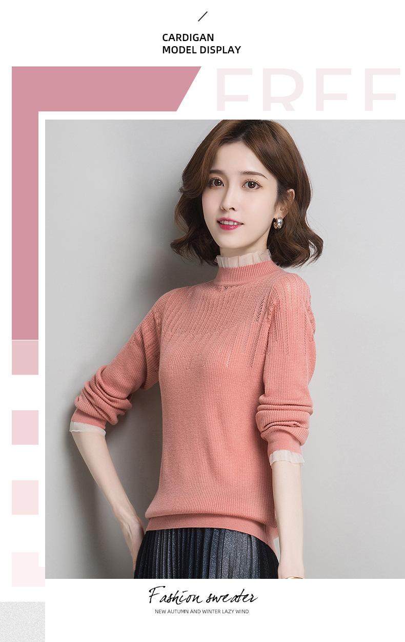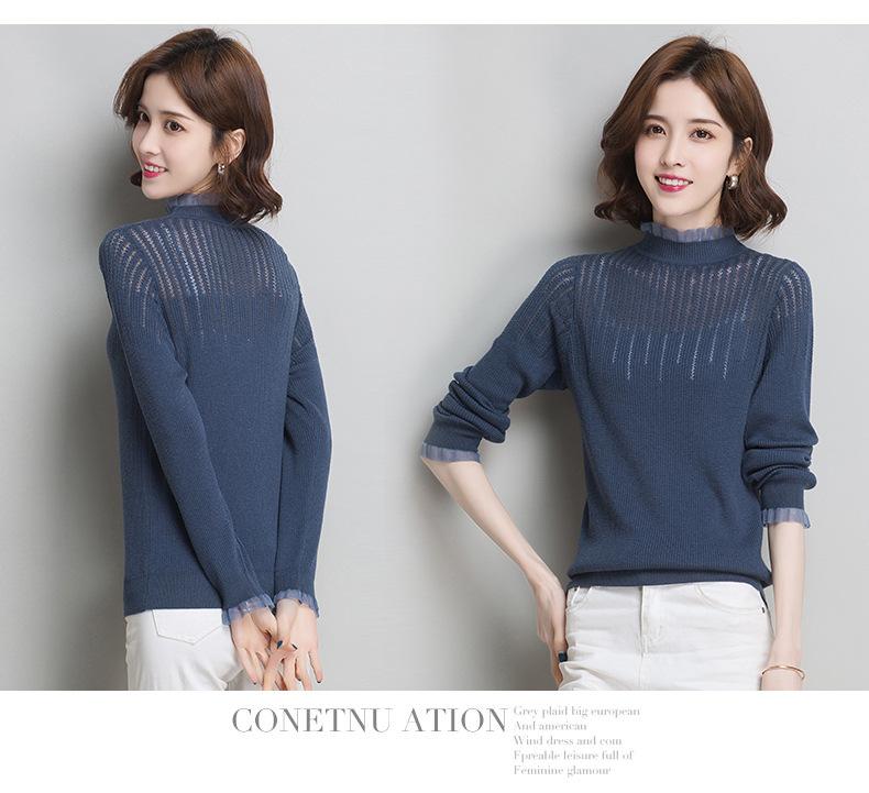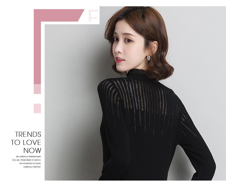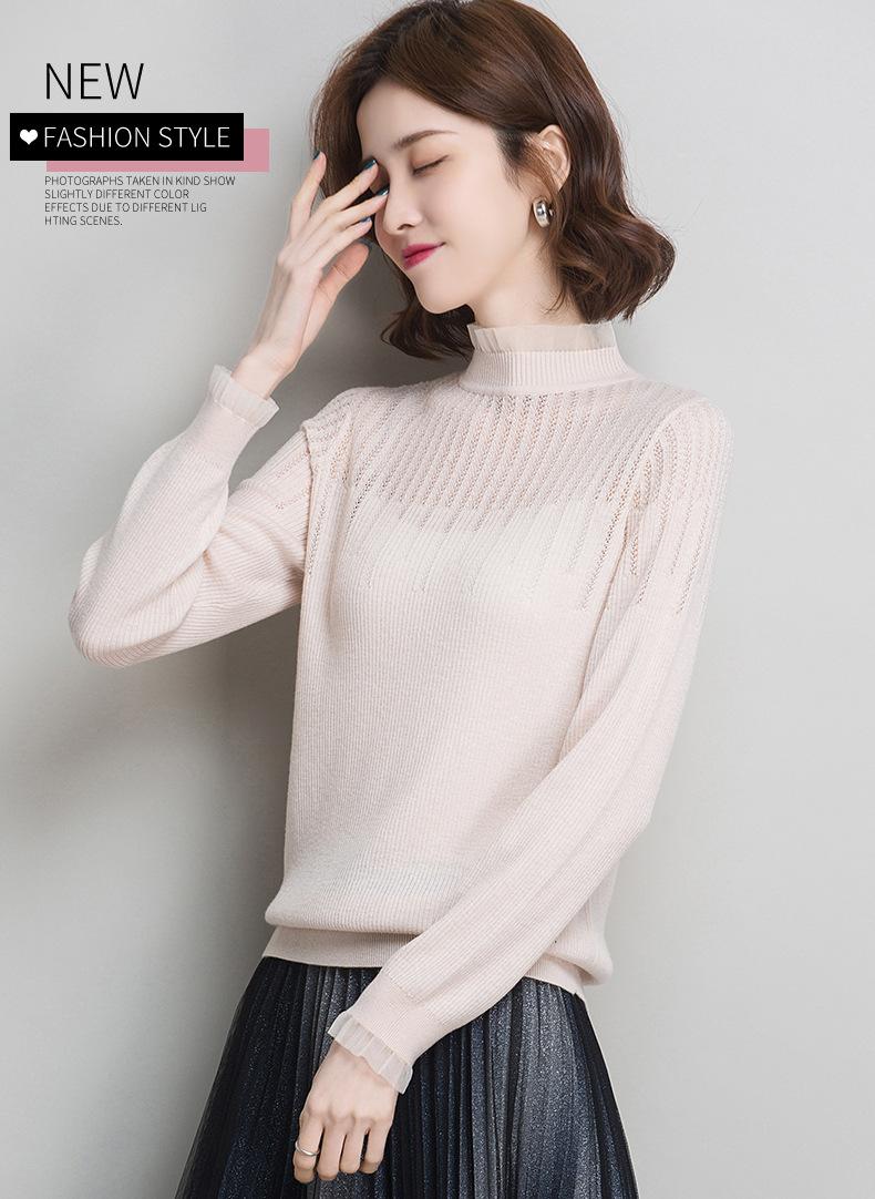 Nuevo Suéter de Lana Versátil para Mujer de Principios de Otoño Cuello Semi-Alto Capa Interior Suéter Base Color Sólido Adelgazante Tejido de Punto para Mujer