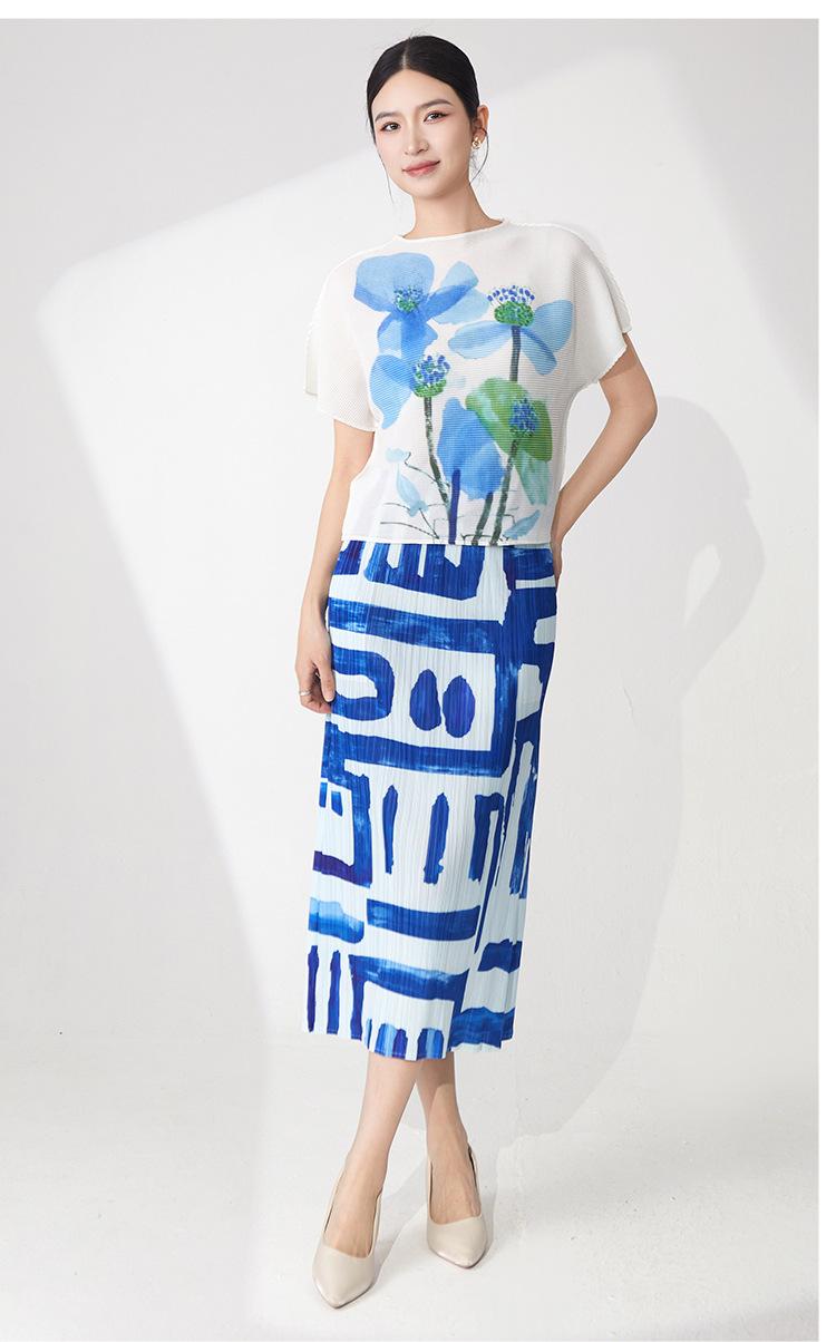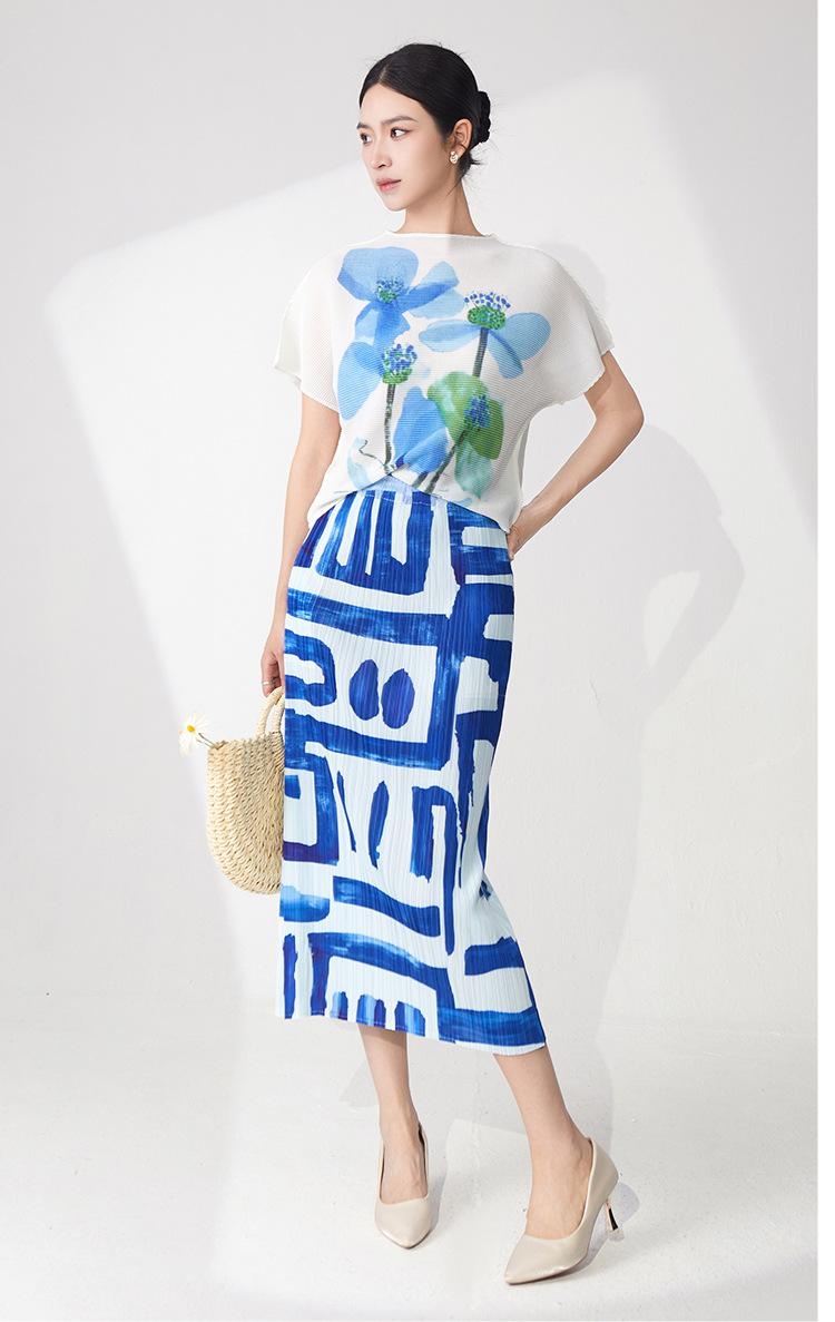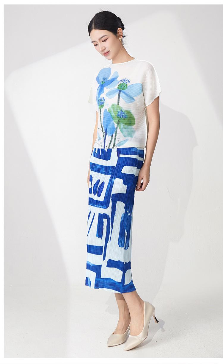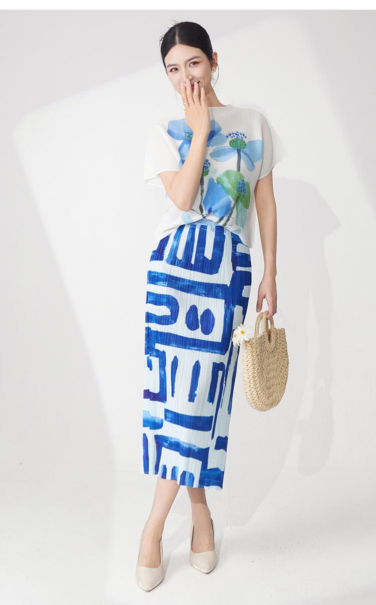 Primavera y Verano 2025 Nueva Falda Recta Adelgazante de Cintura Alta hasta la Rodilla Estampada Moderna Elegante Combinable Falda de Cadera