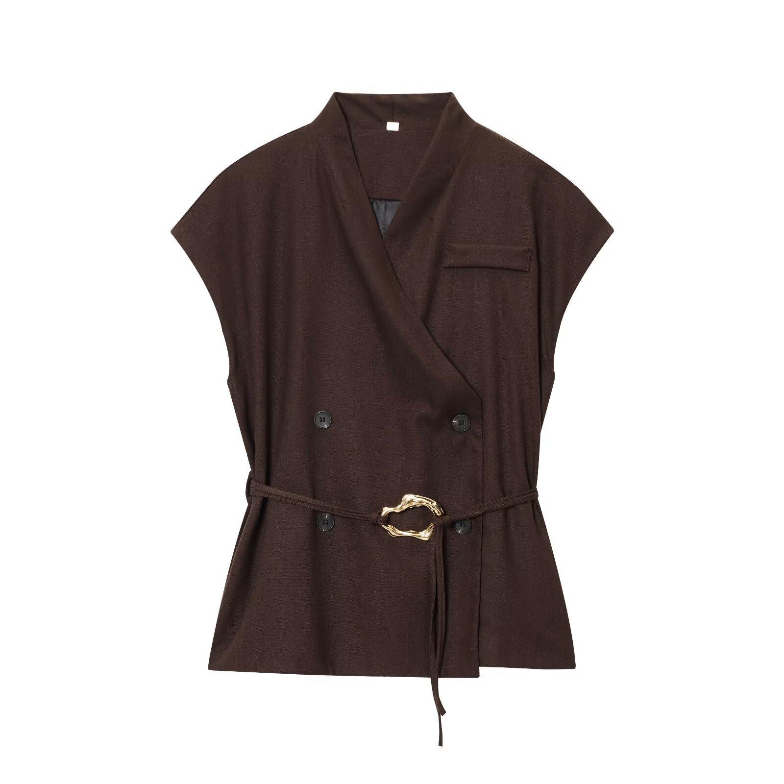 Ropa de Verano para Mujer 2025 Nuevo Estilo Europeo y Americano Moda Tops Decorativos con Botones Dorados Trajes Casuales de Pantalón