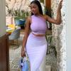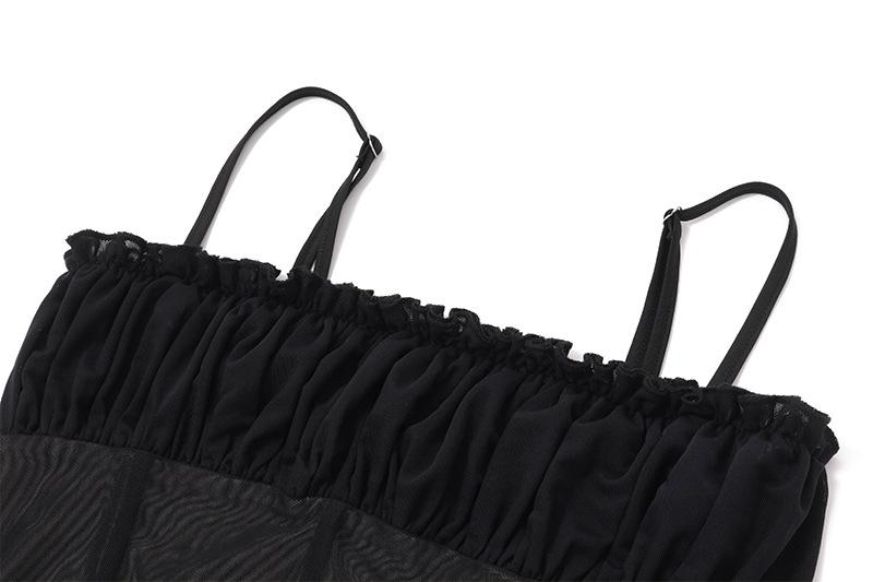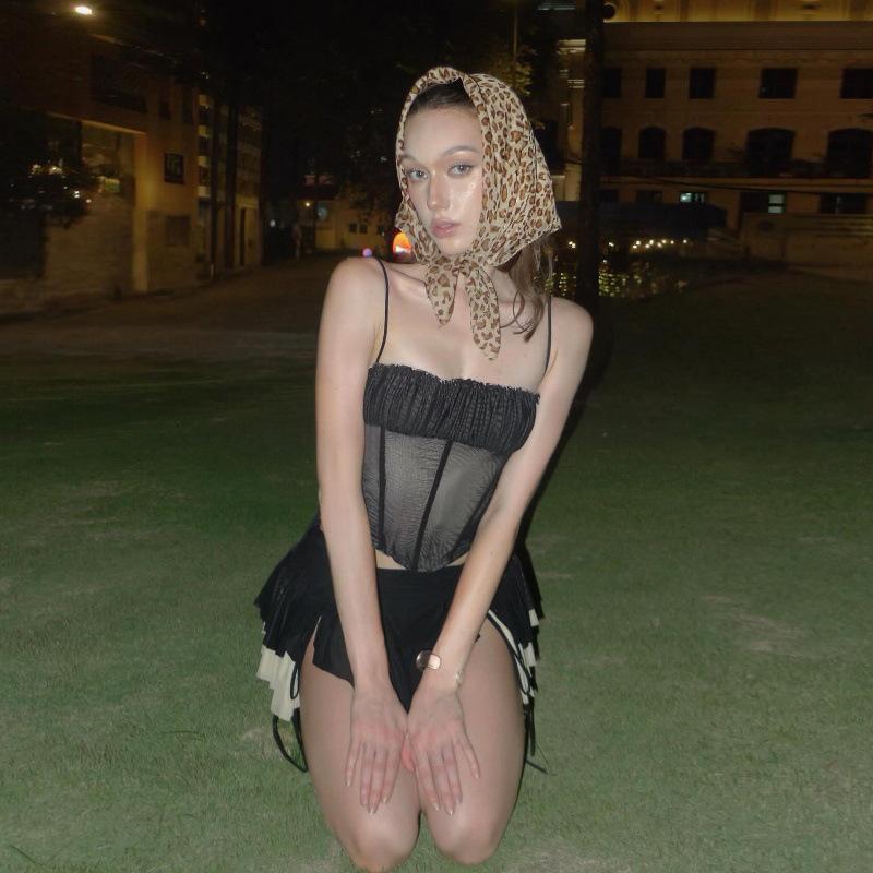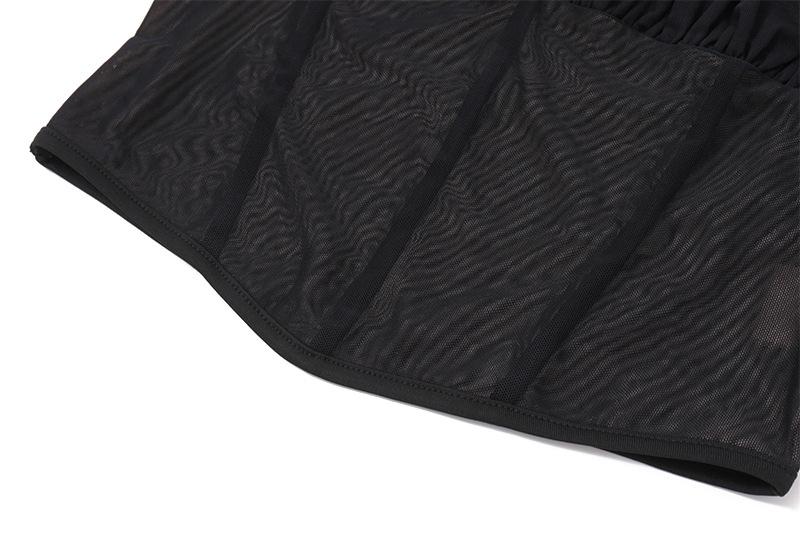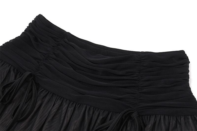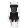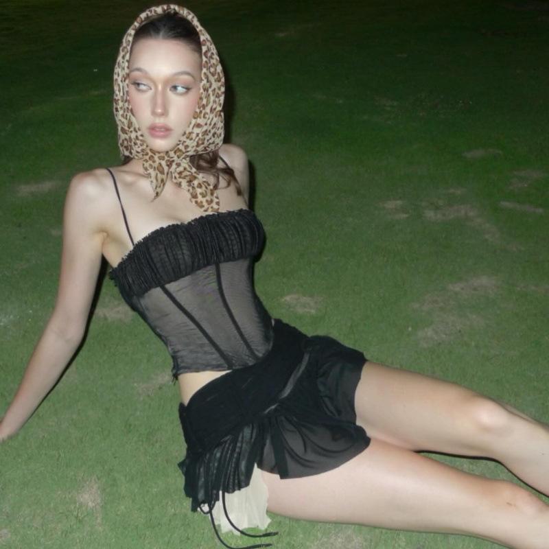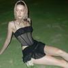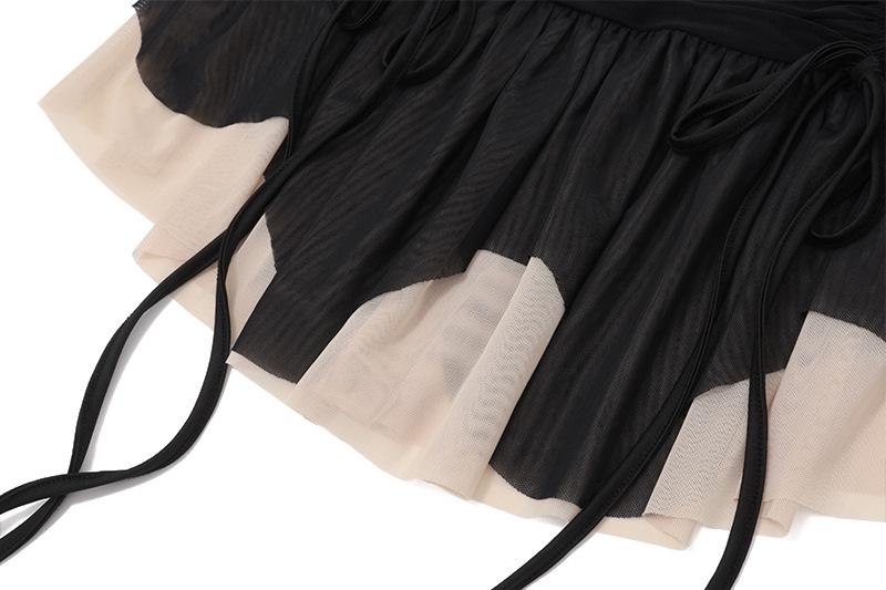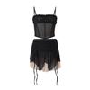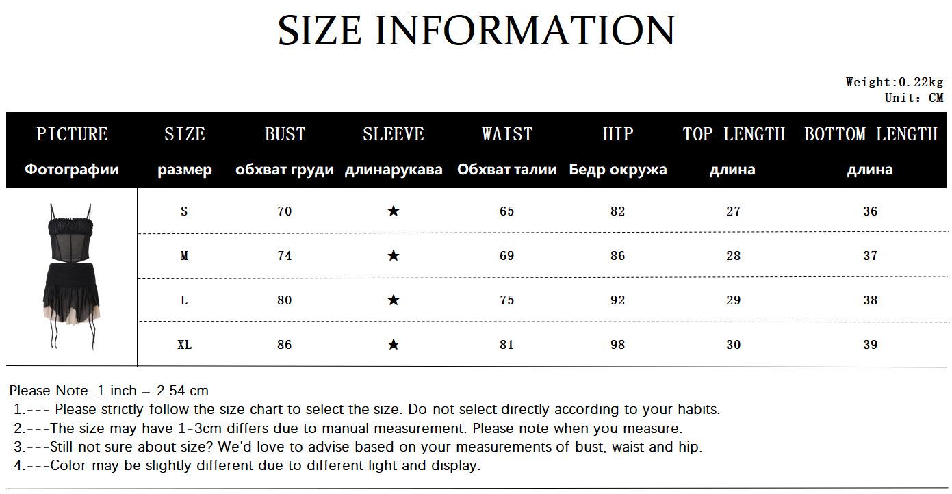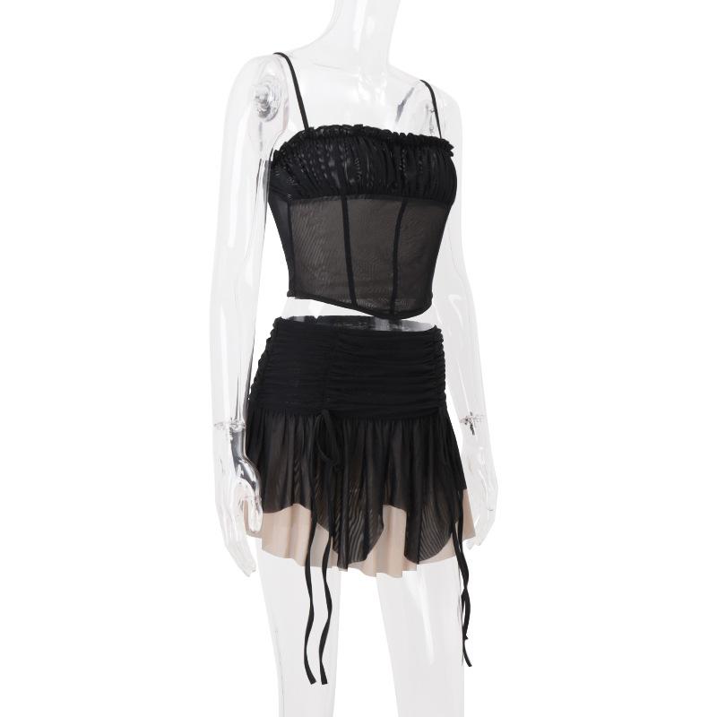 Ropa de Mujer Europea y Americana 2025 Verano Nueva Moda Deseo Puro Malla Top Irregular Sexy Traje de Falda con Combinación de Colores