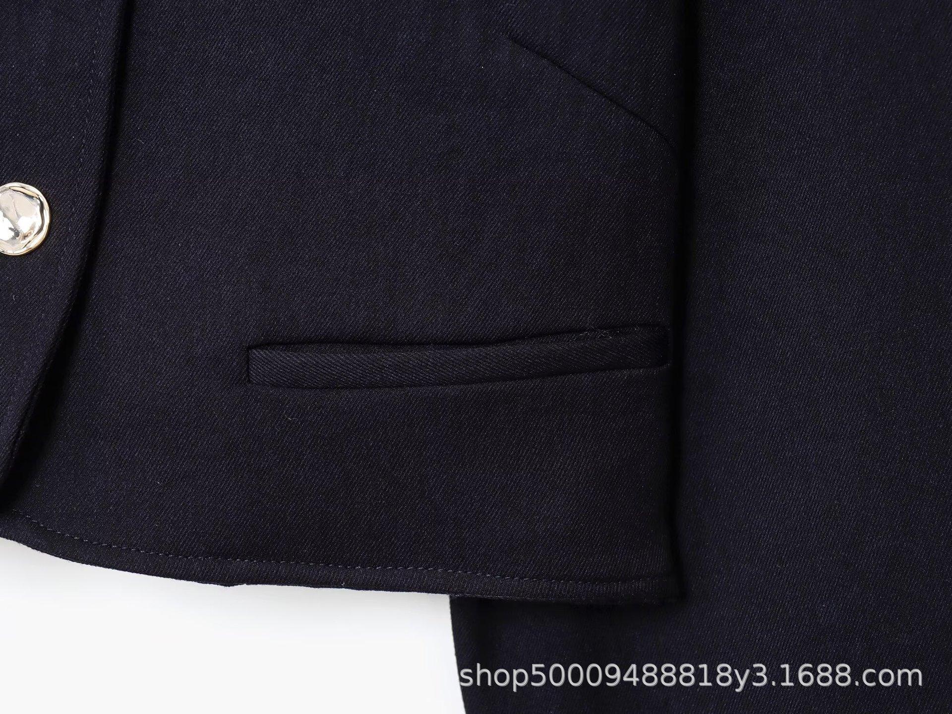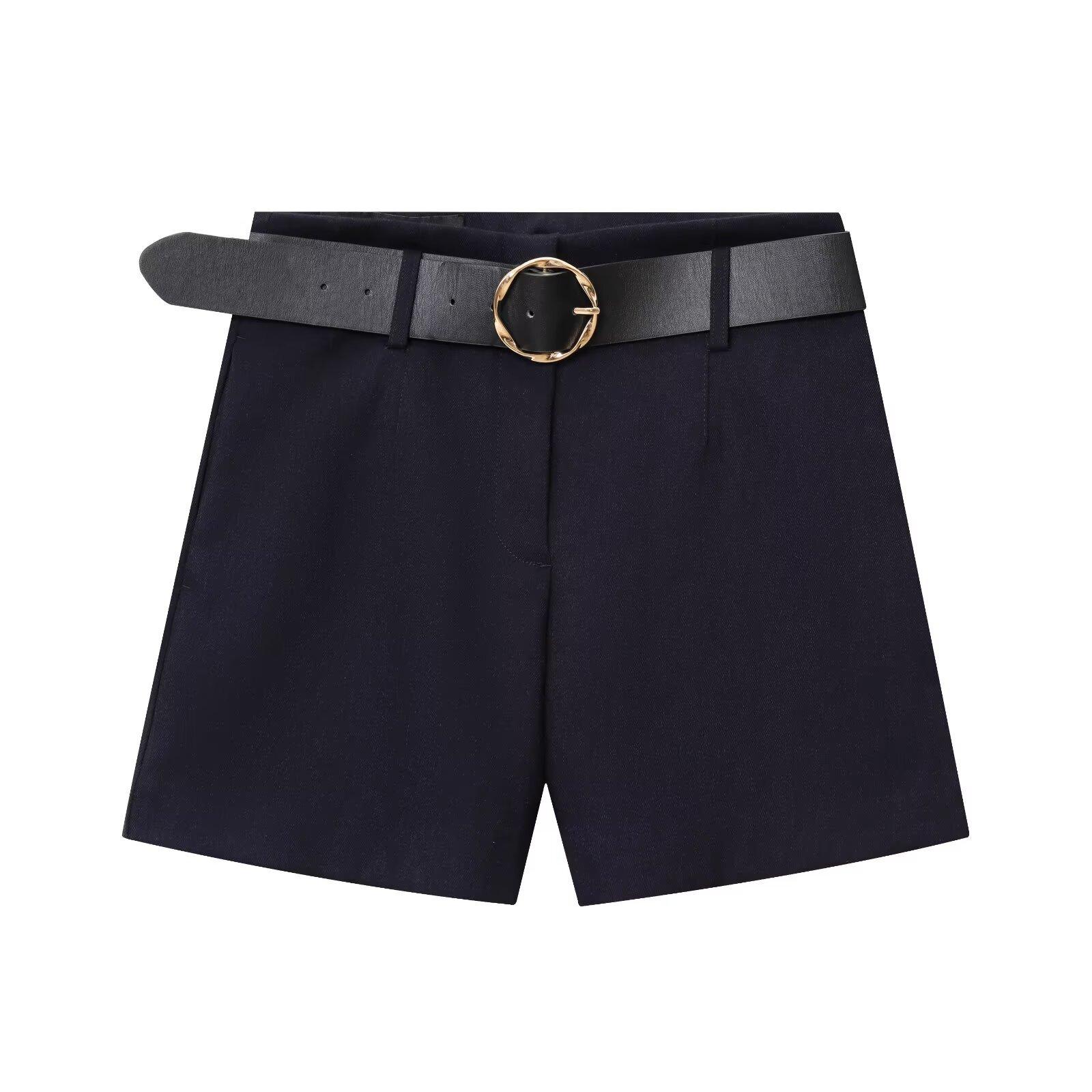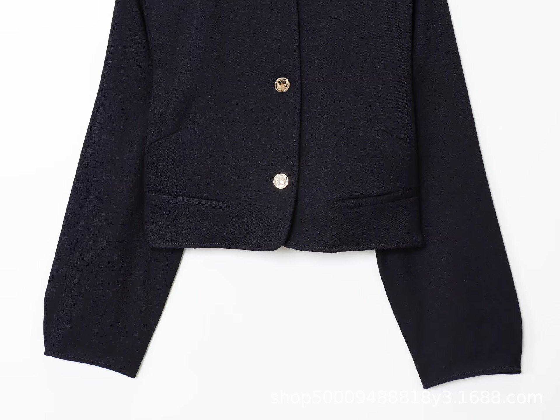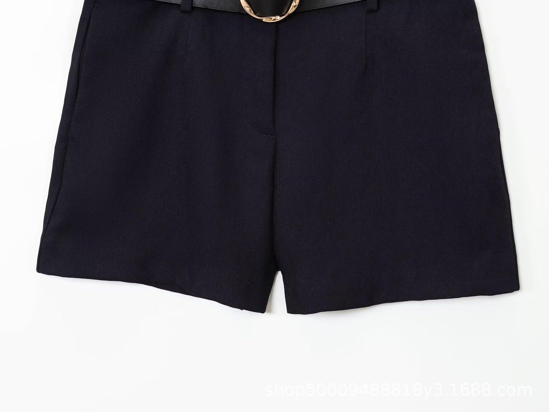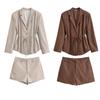 Abrigo corto de traje de otoño para mujer de estilo europeo y americano con botón dorado y cinturón, conjunto casual de shorts