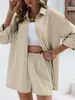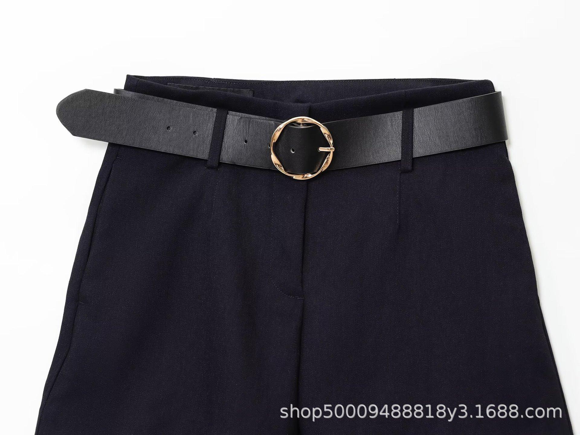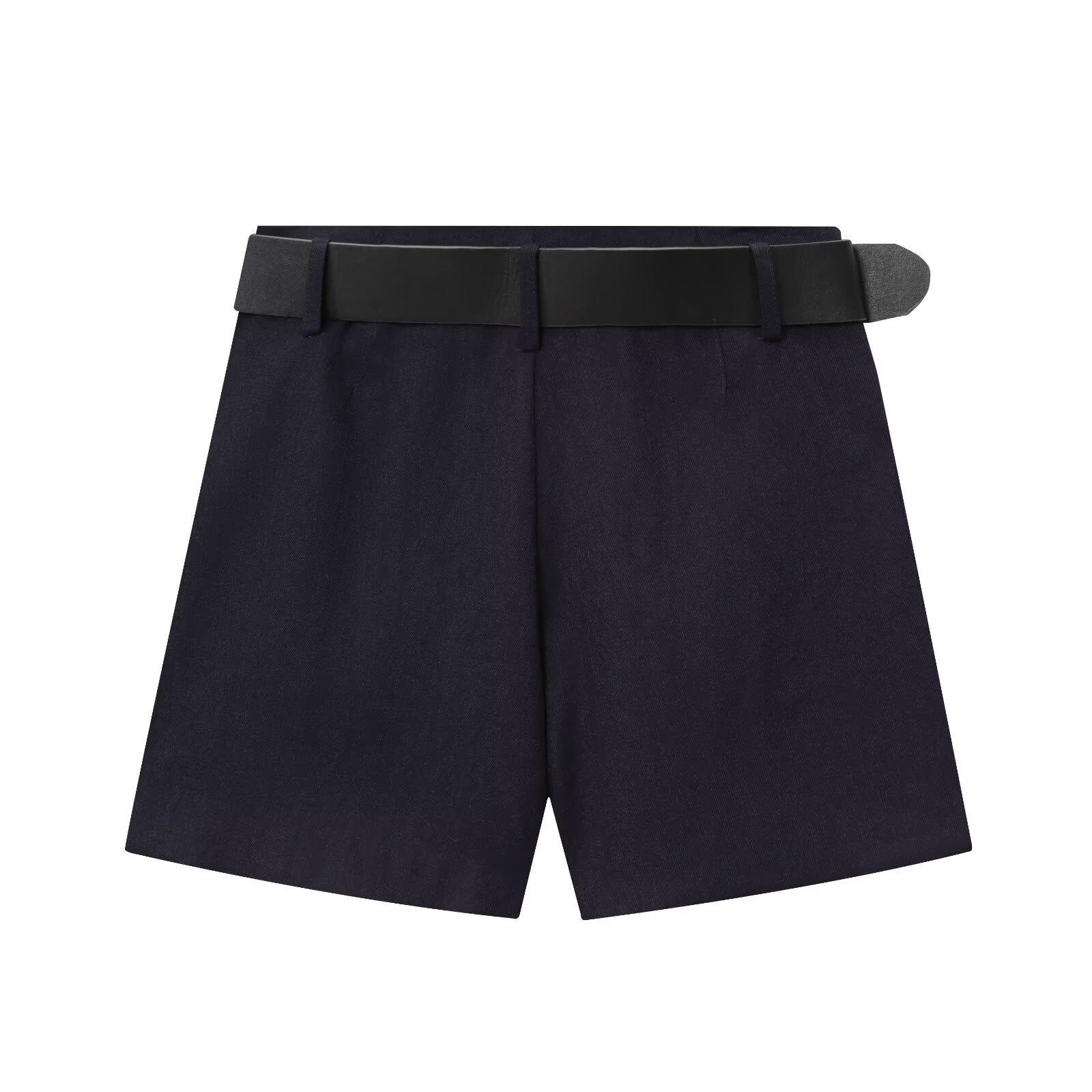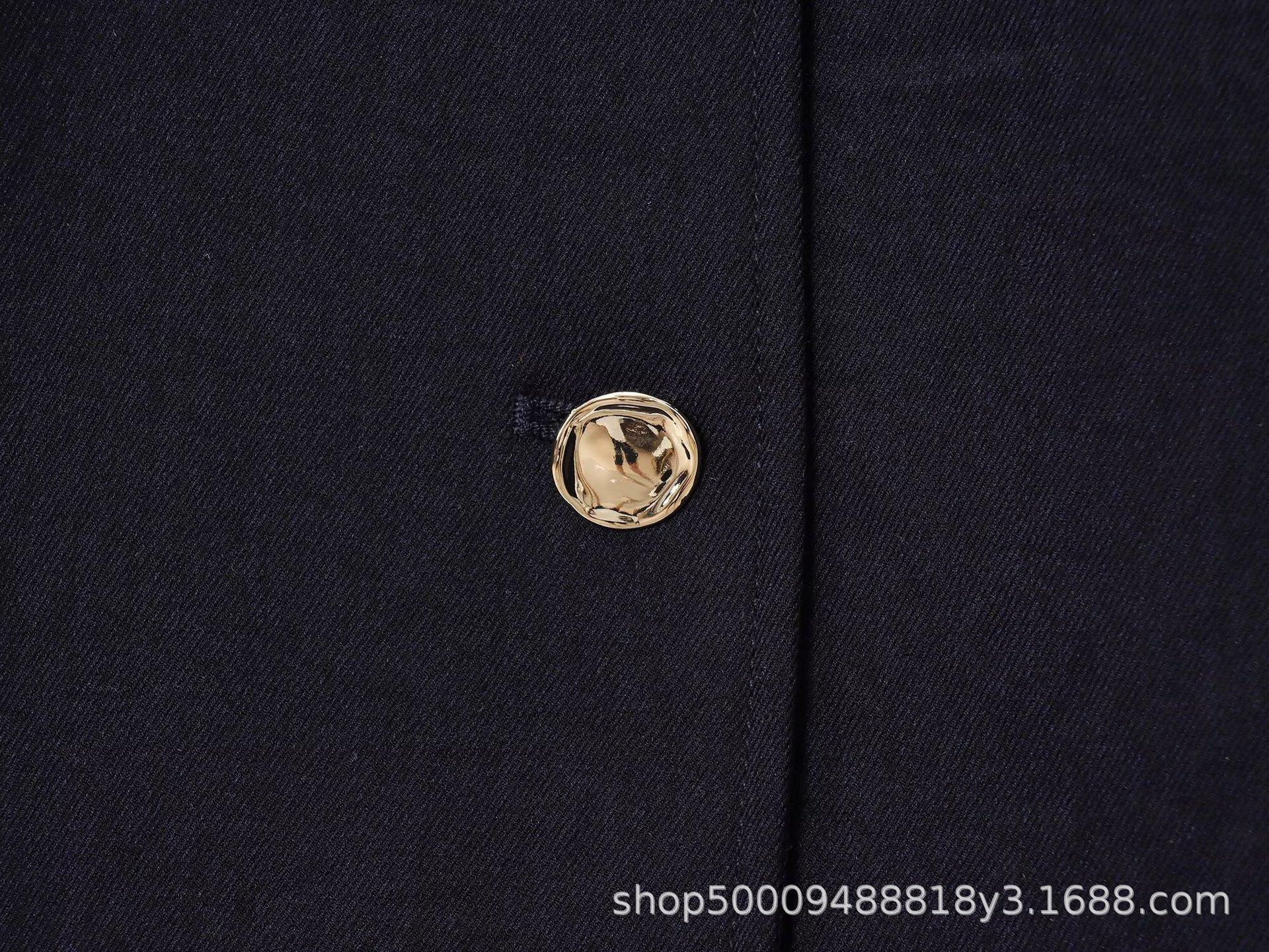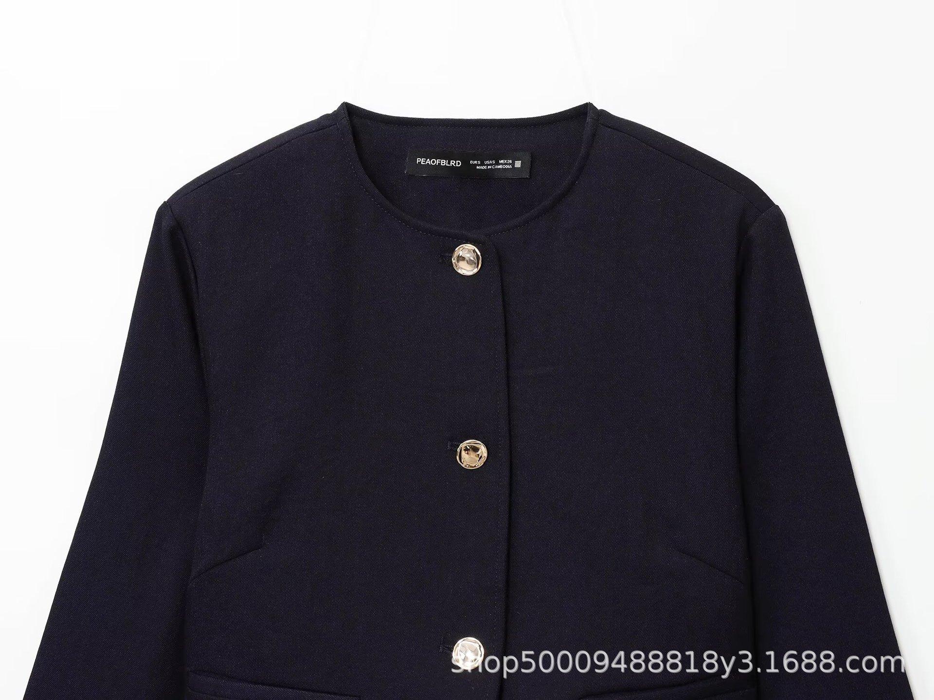 Abrigo corto de traje de otoño para mujer de estilo europeo y americano con botón dorado y cinturón, conjunto casual de shorts