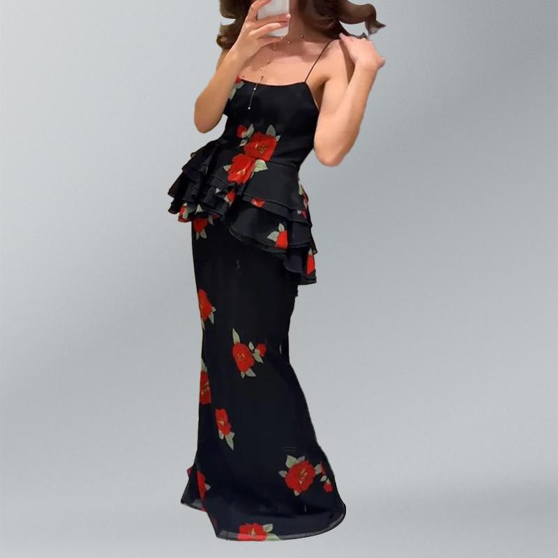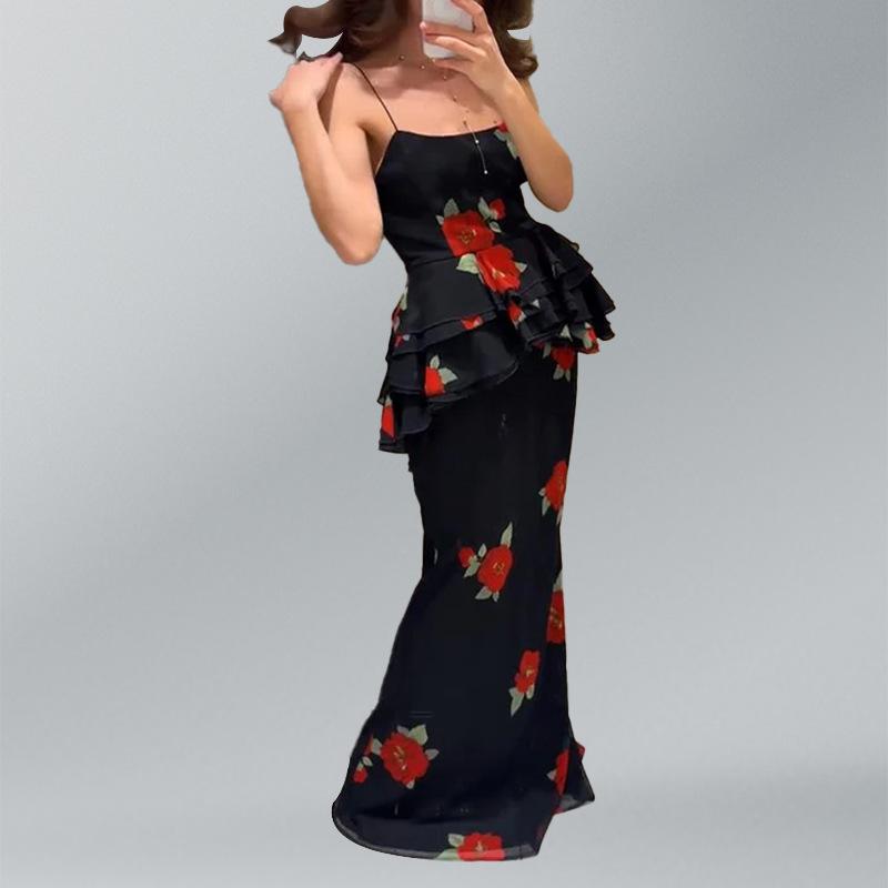 Verano 2025 Nuevo Comercio Exterior Transfronterizo Temperamento Francés Estampado Camisola Conjunto Falda Midi Vestido Largo Estilo Bohemio