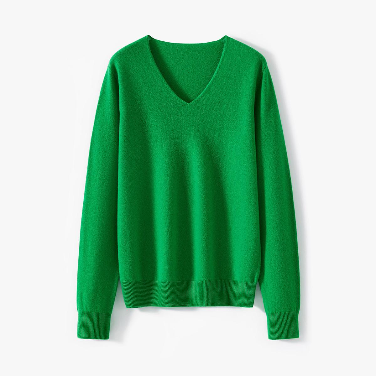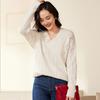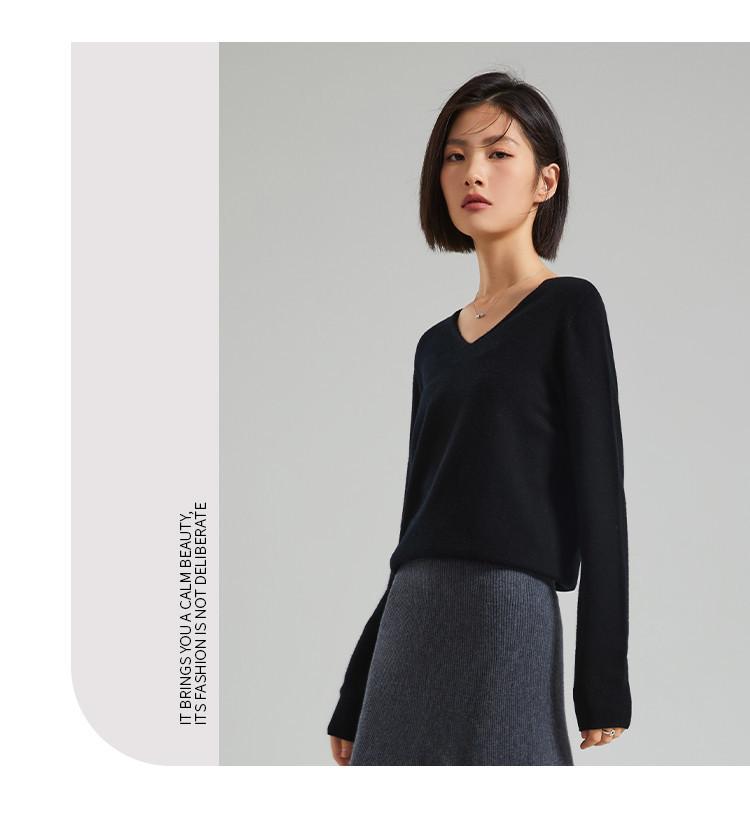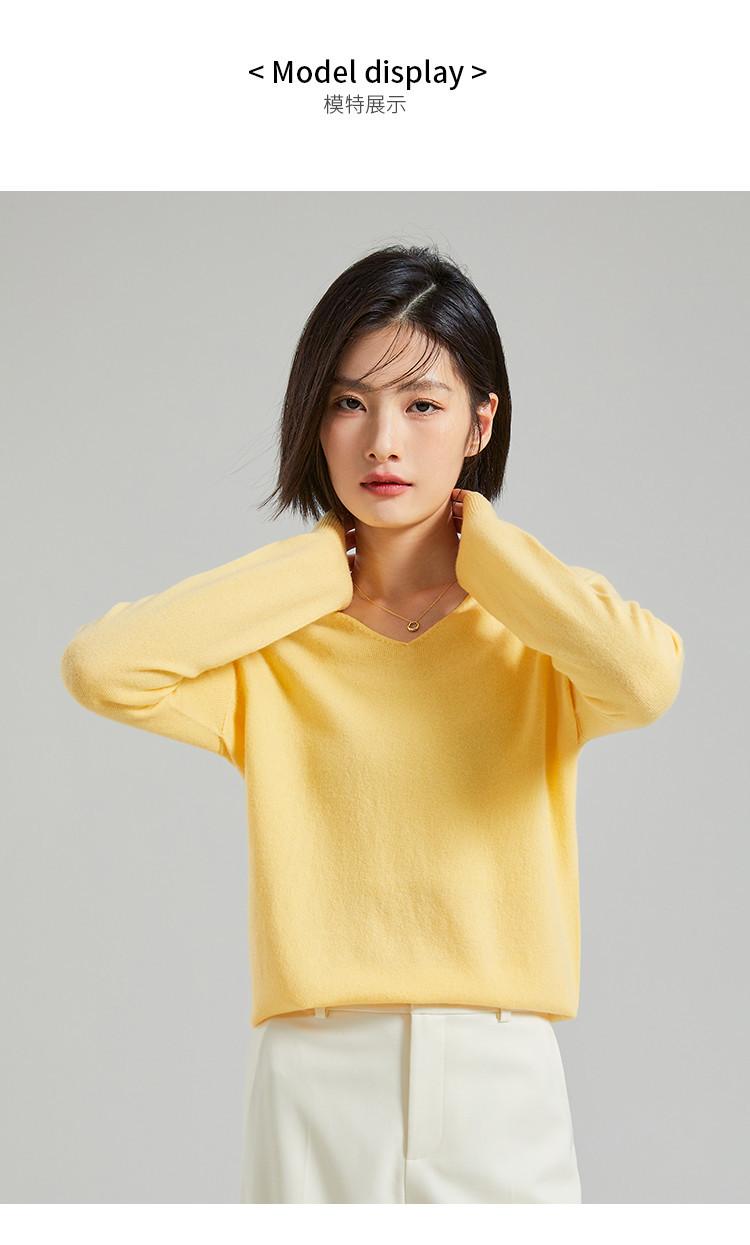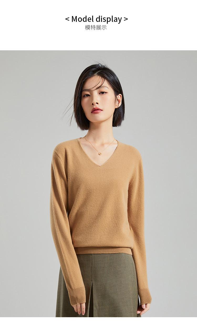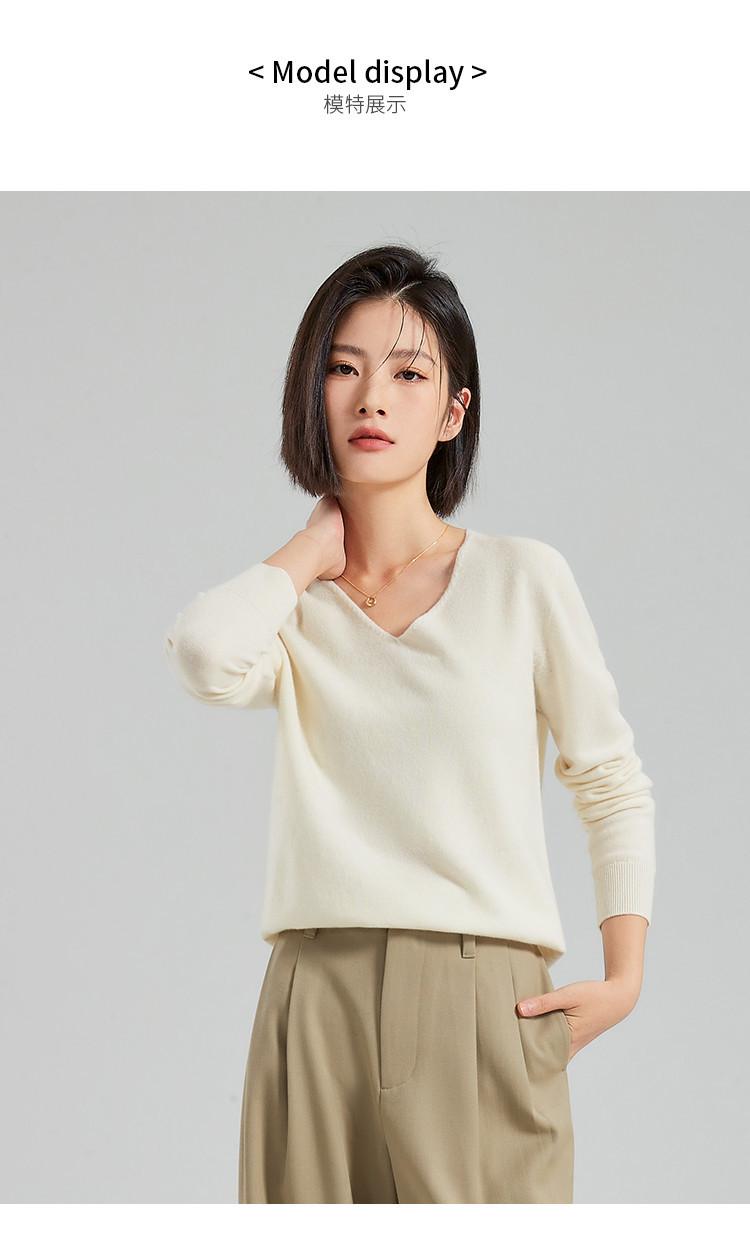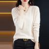 100% Lana Ropa de Punto para Mujer con Cuello en V Ropa de Otoño/Invierno para Mujer Nueva Moda Casual Color Sólido Tejido Suelto Suéter Base para Mujer