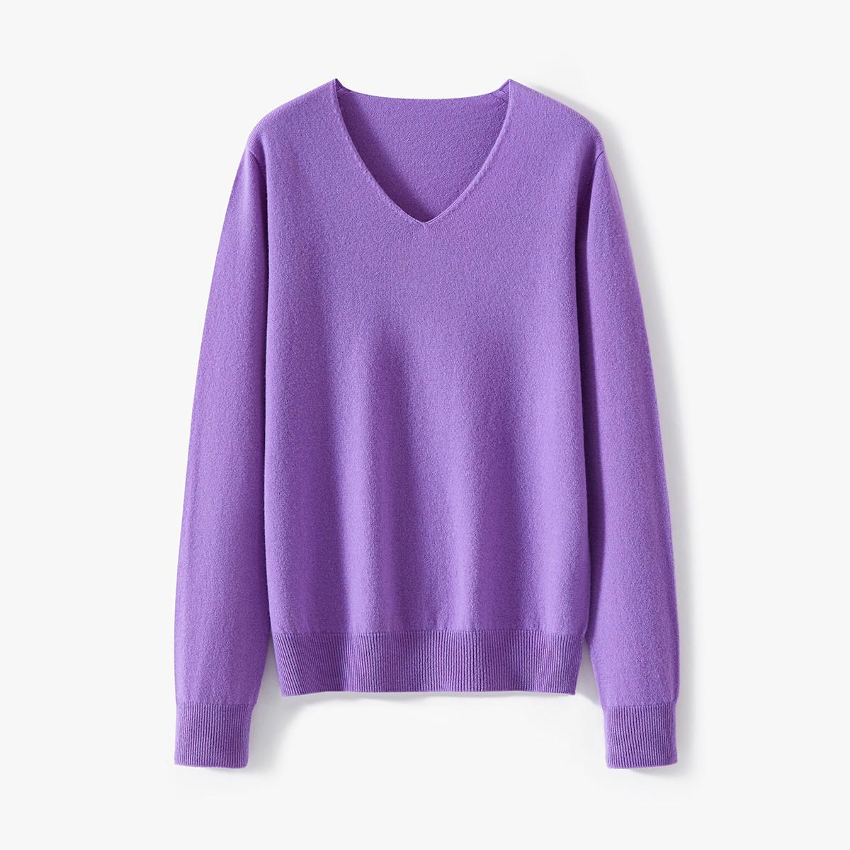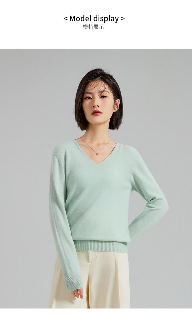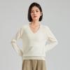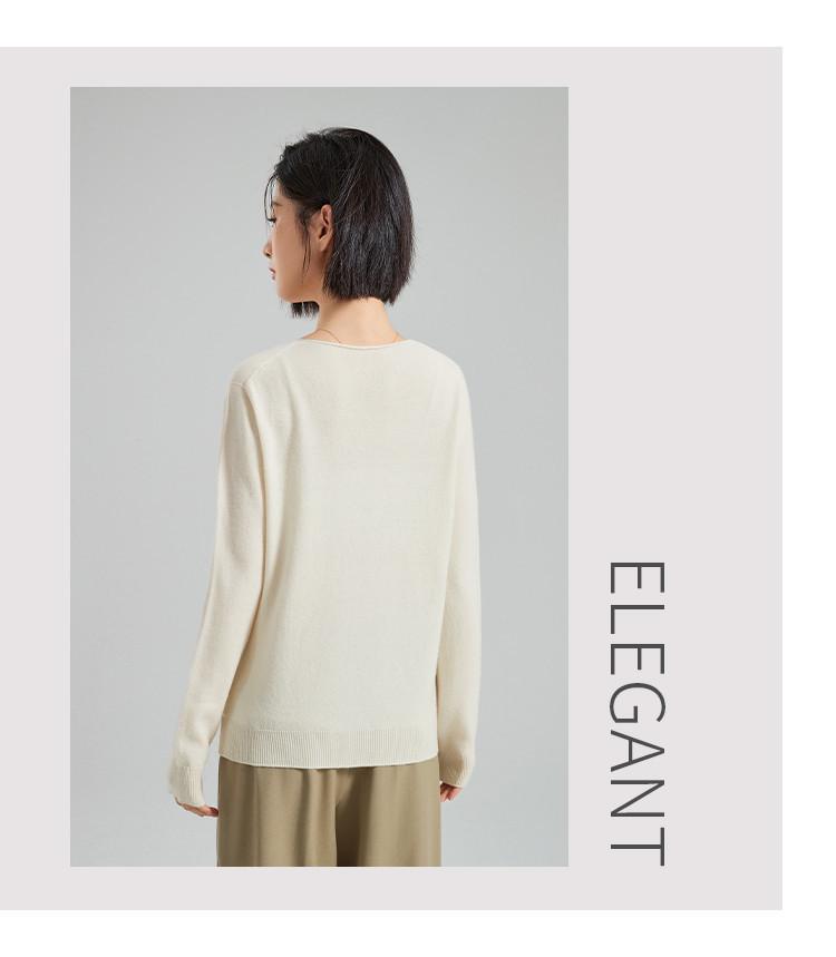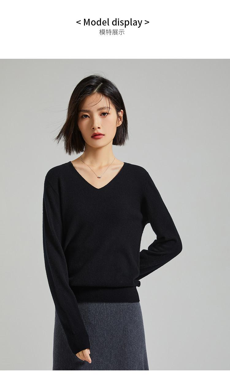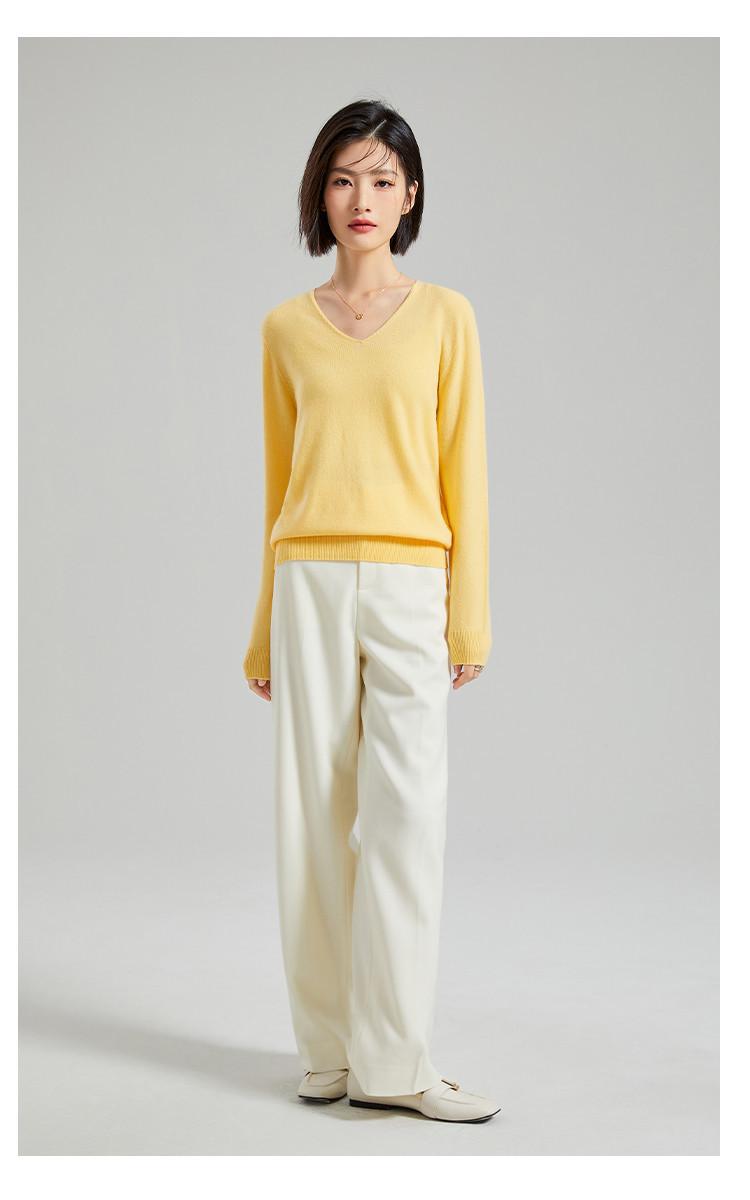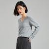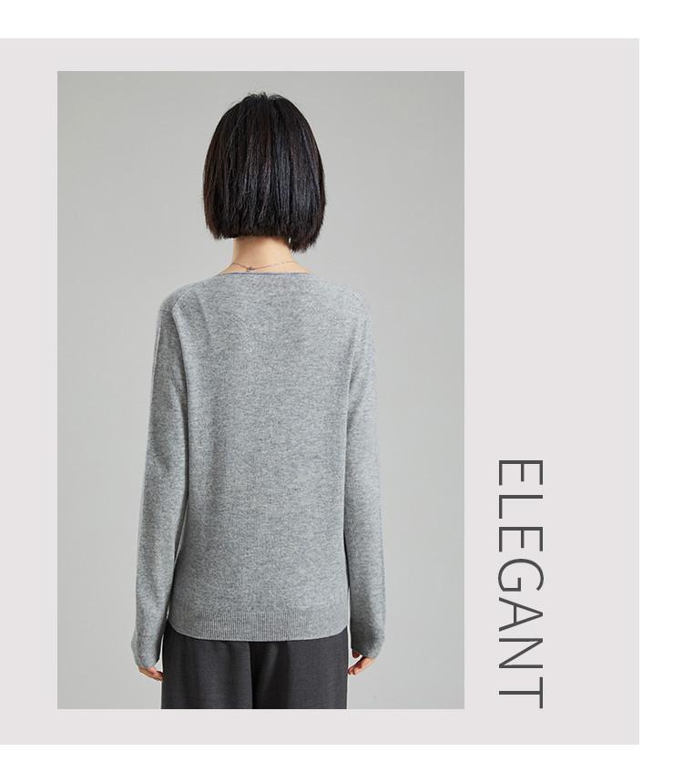 100% Lana Ropa de Punto para Mujer con Cuello en V Ropa de Otoño/Invierno para Mujer Nueva Moda Casual Color Sólido Tejido Suelto Suéter Base para Mujer