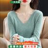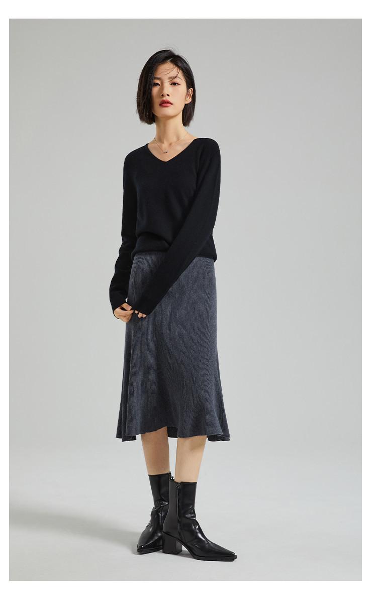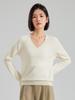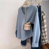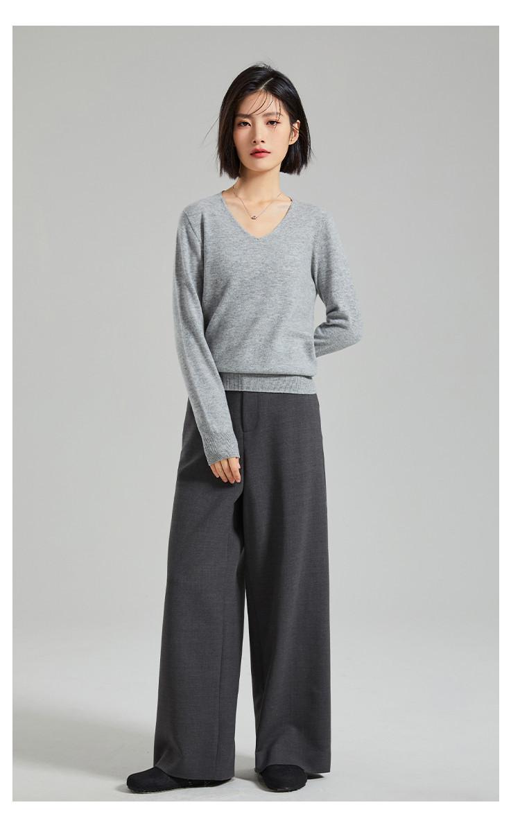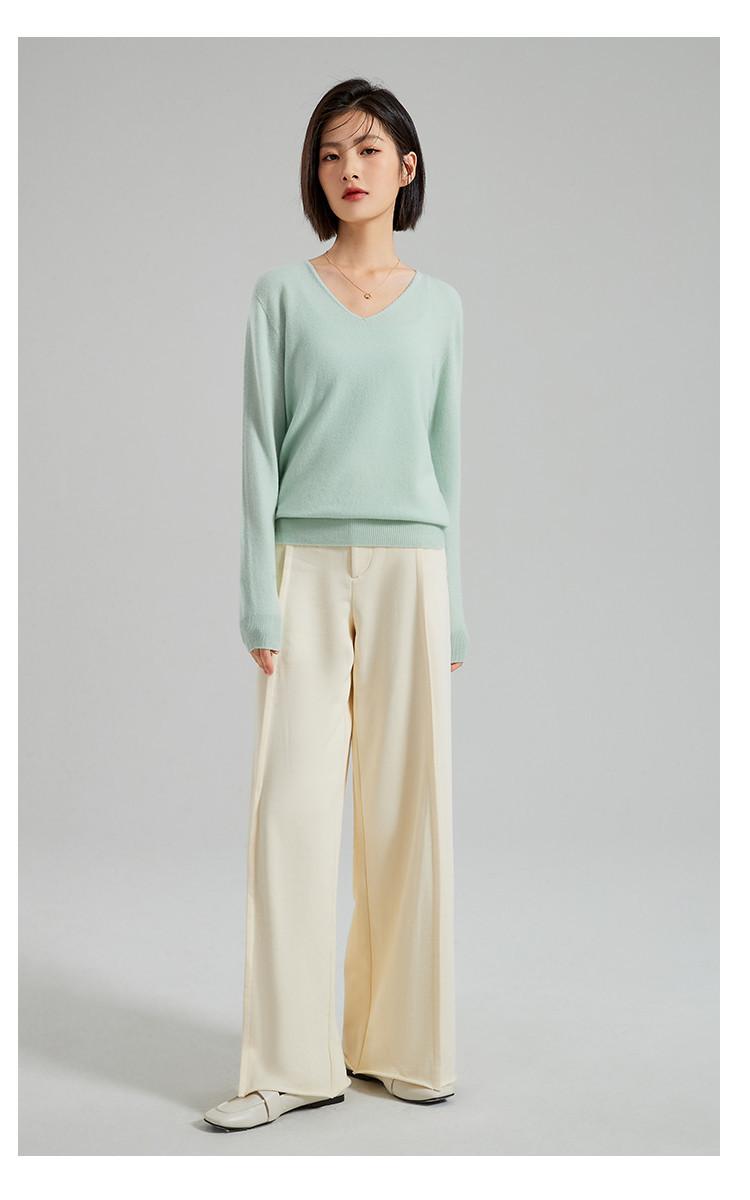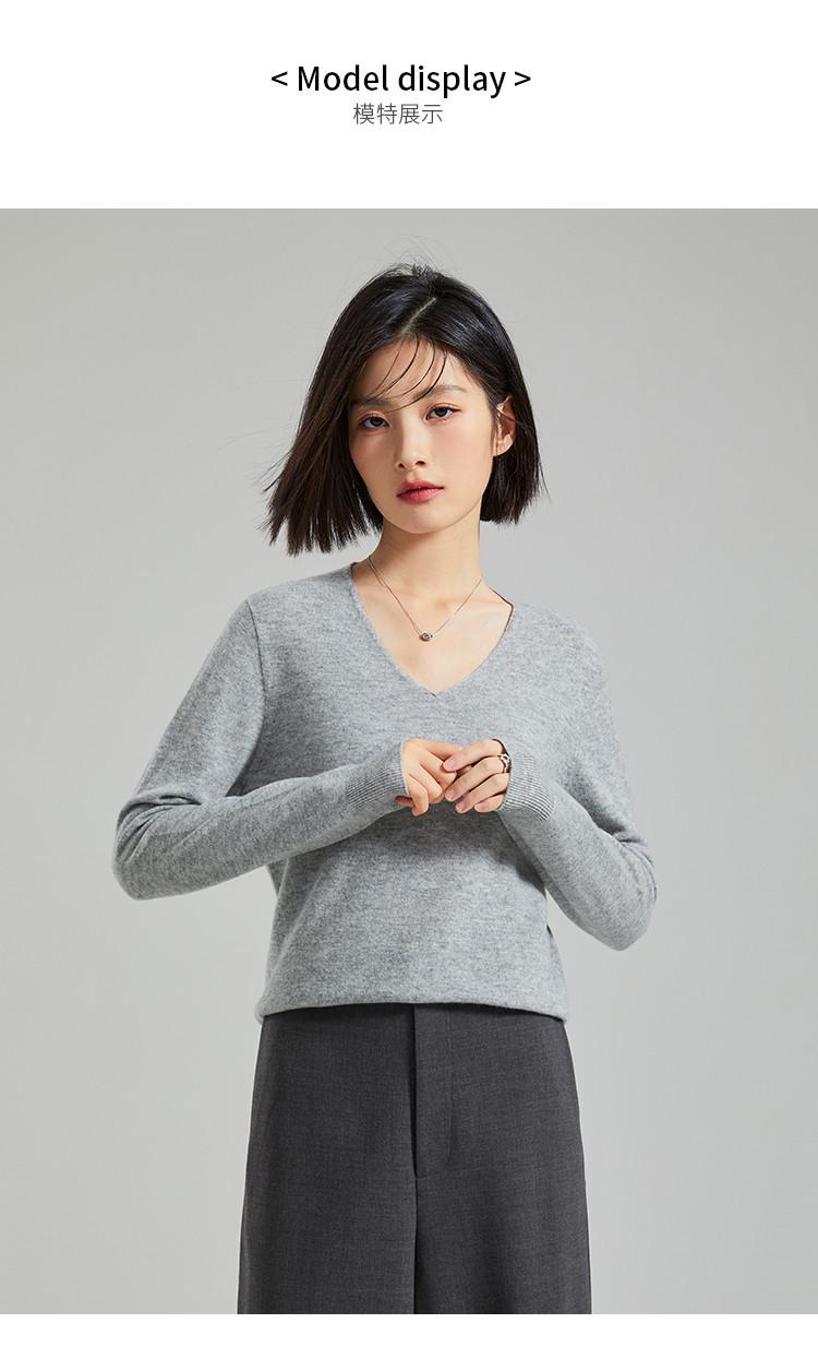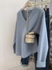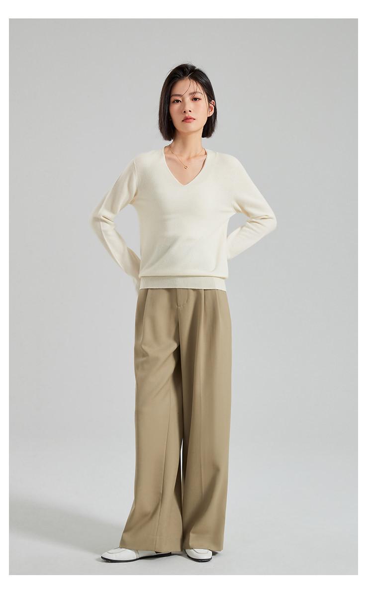 100% Lana Ropa de Punto para Mujer con Cuello en V Ropa de Otoño/Invierno para Mujer Nueva Moda Casual Color Sólido Tejido Suelto Suéter Base para Mujer