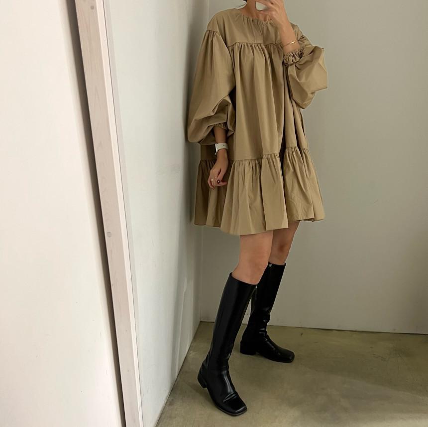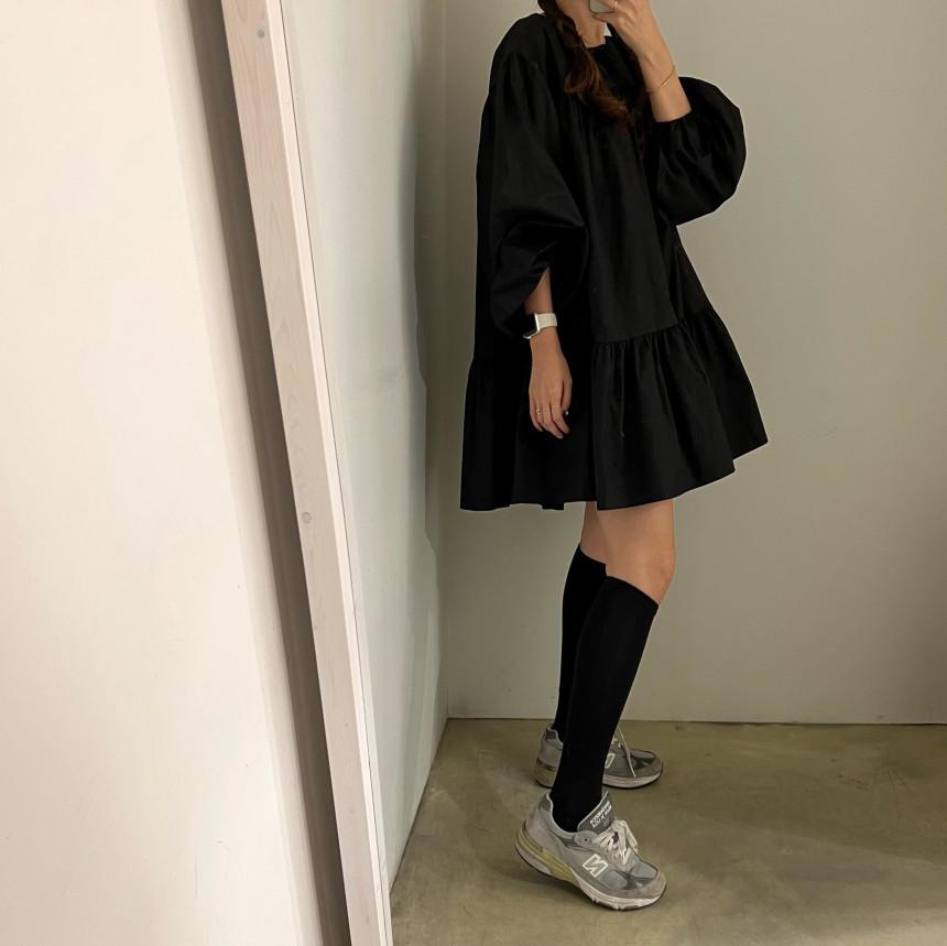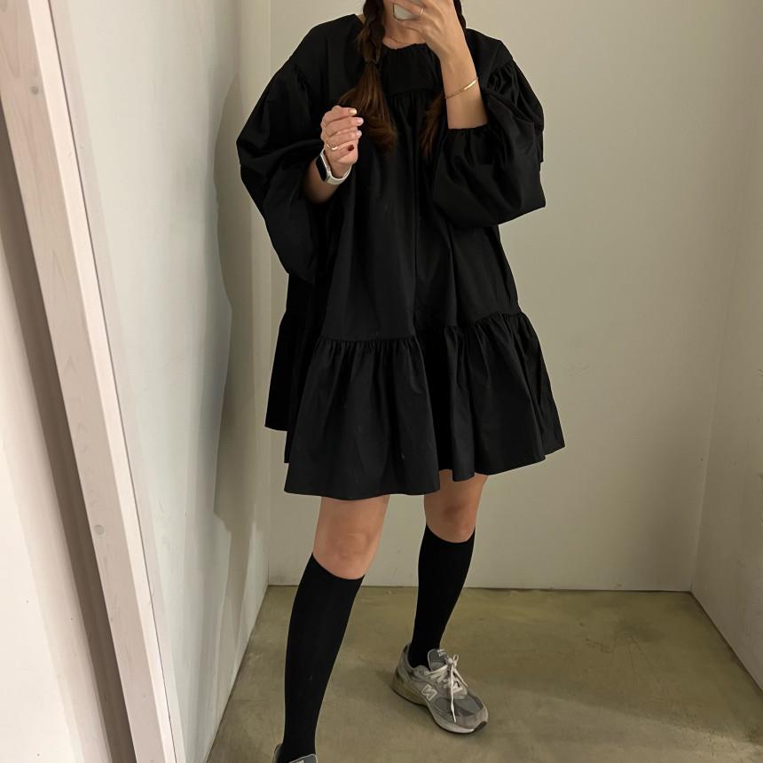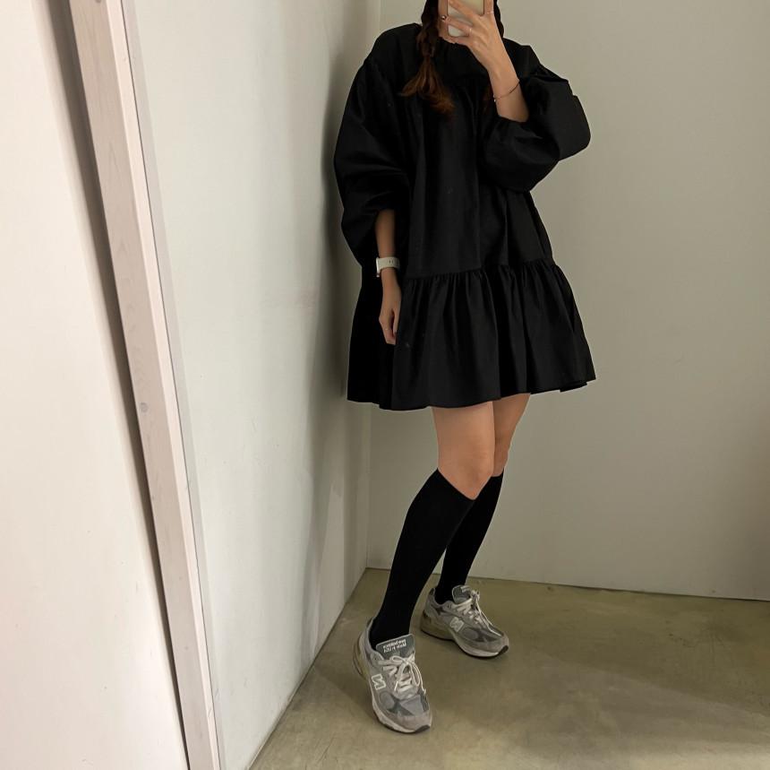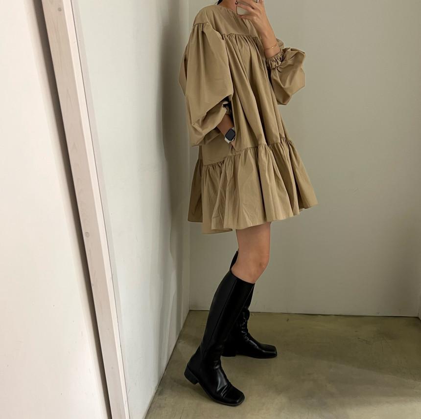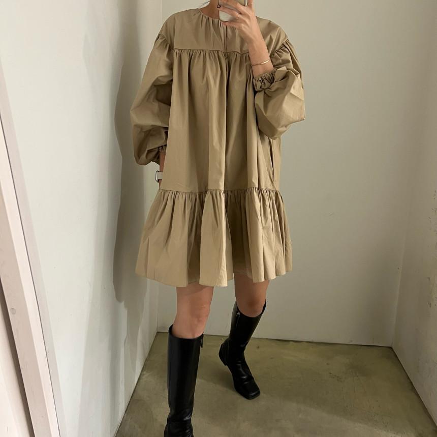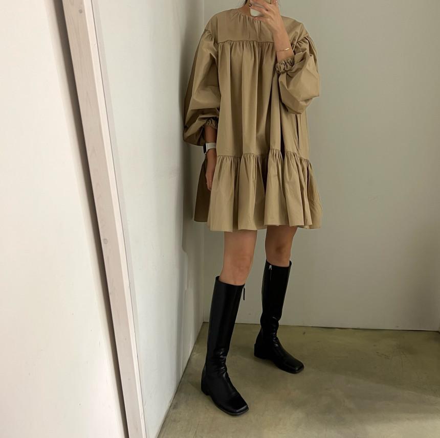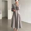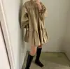 Chic coreano primavera/otoño vestido francés retro de cuello redondo con diseño patchwork en capas y manga larga holgada