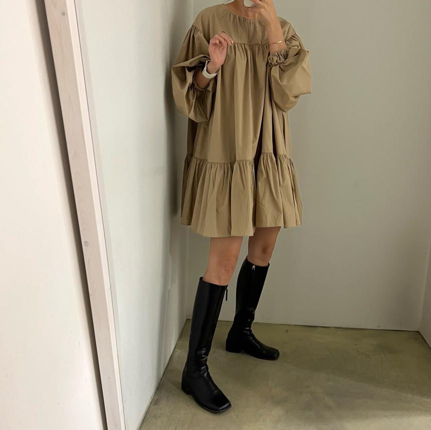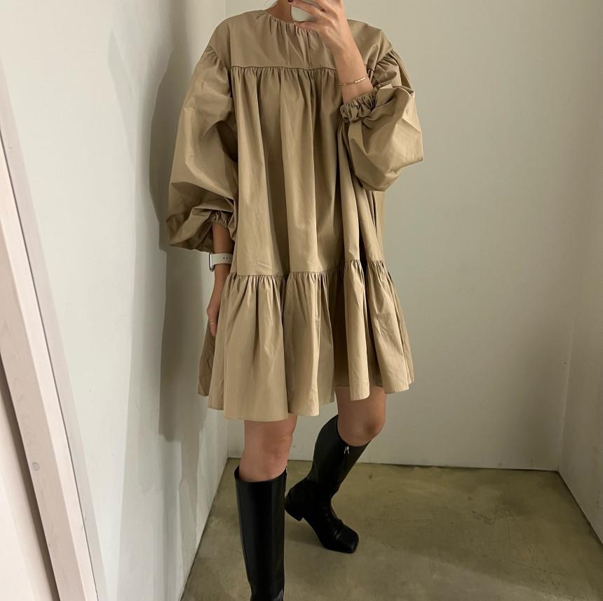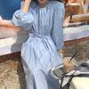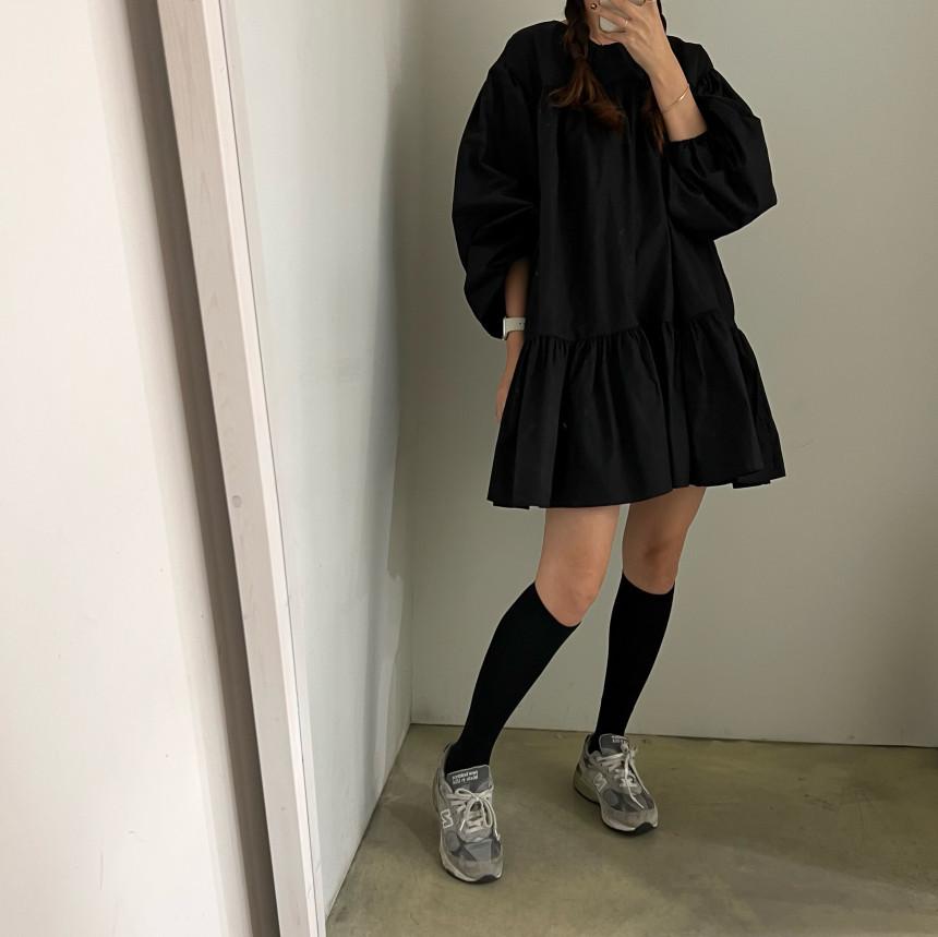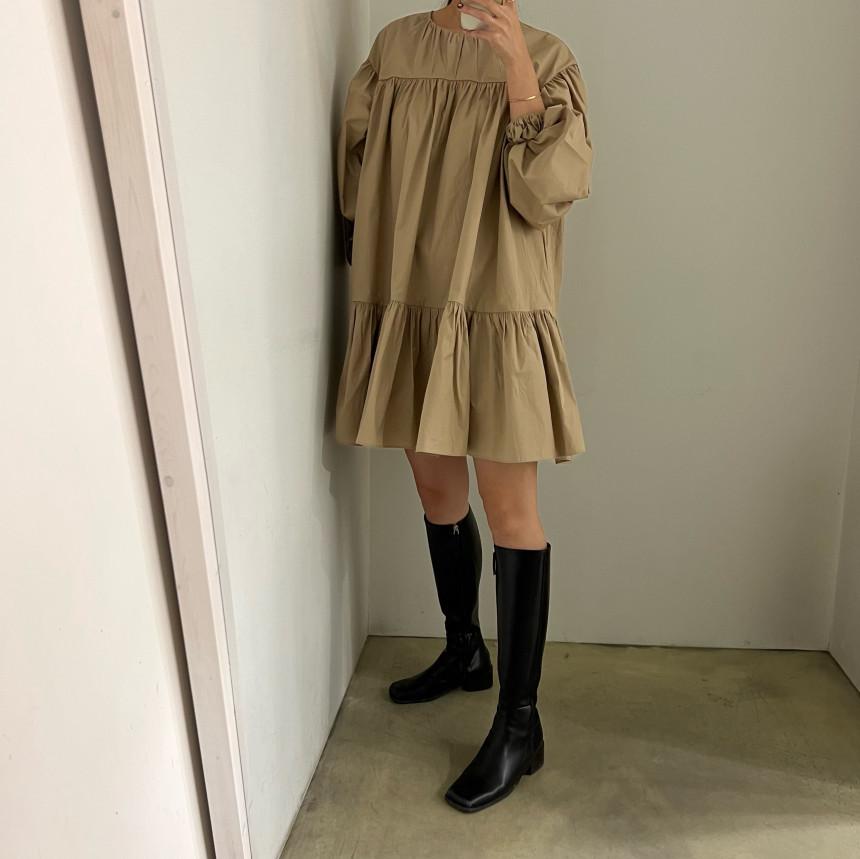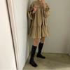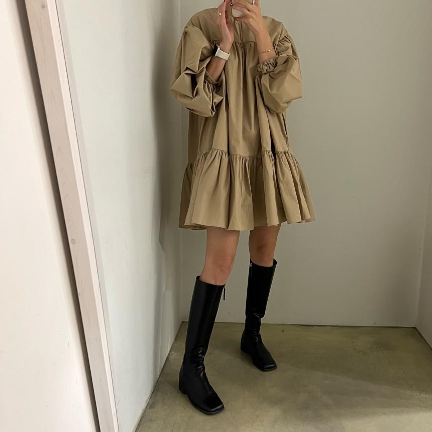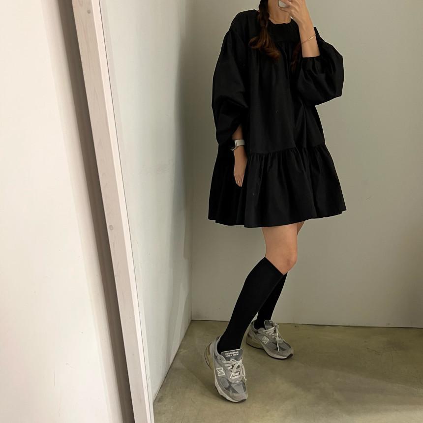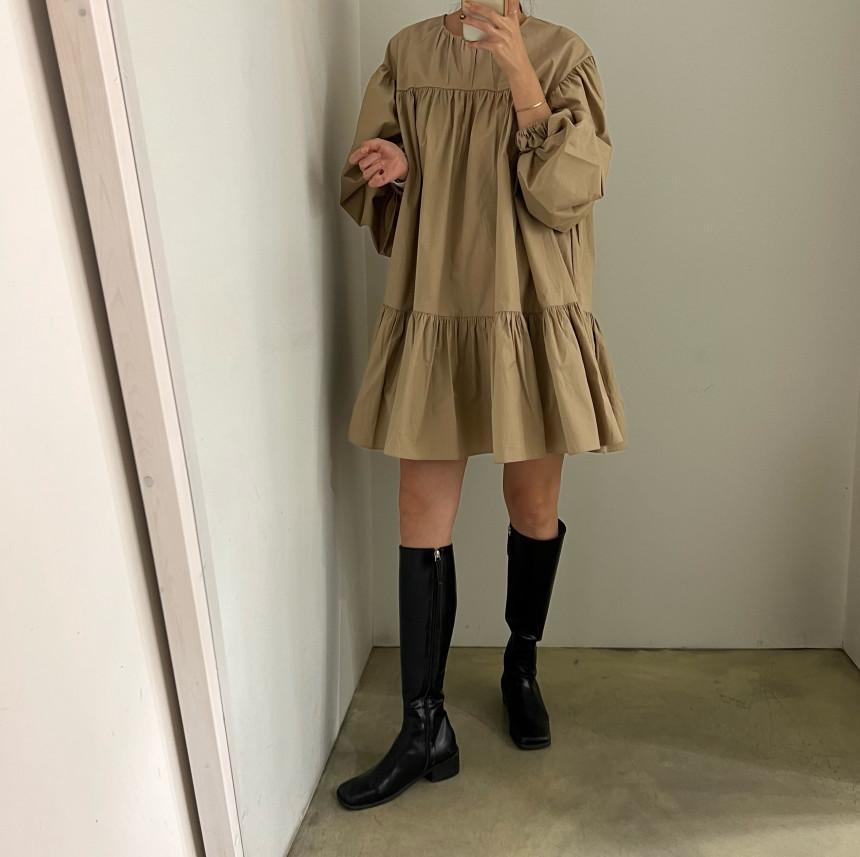 Chic coreano primavera/otoño vestido francés retro de cuello redondo con diseño patchwork en capas y manga larga holgada