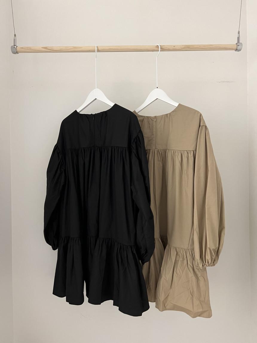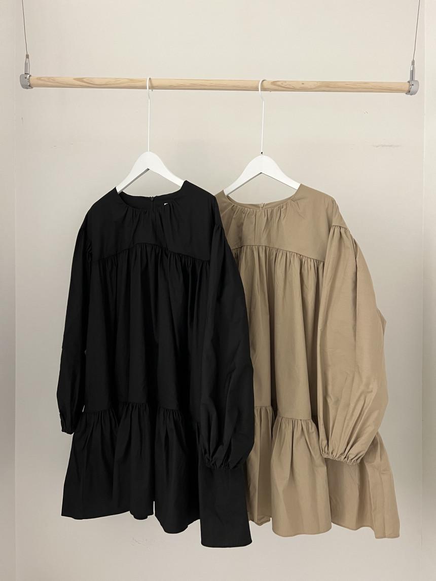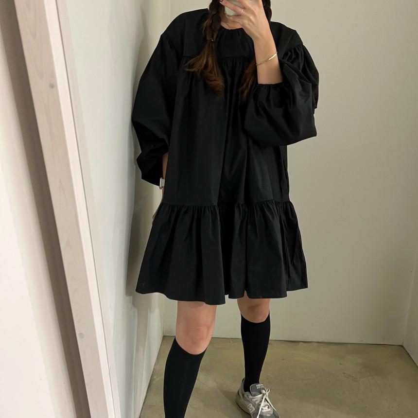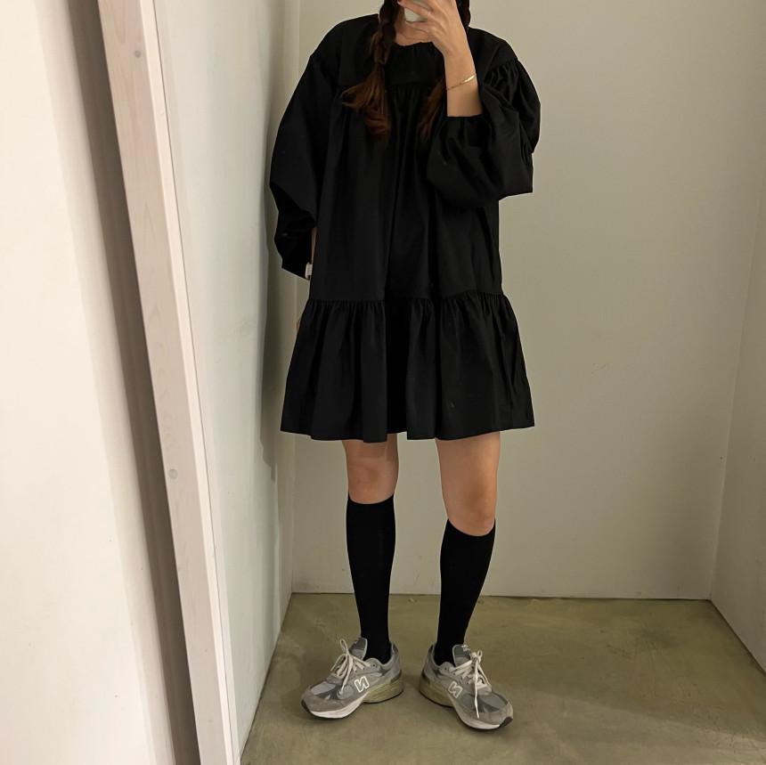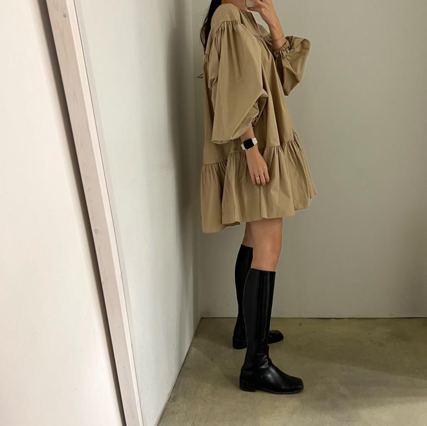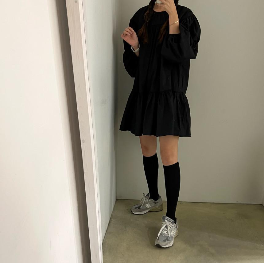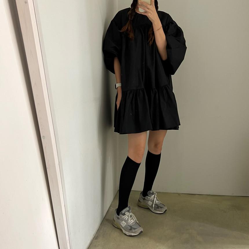 Chic coreano primavera/otoño vestido francés retro de cuello redondo con diseño patchwork en capas y manga larga holgada