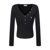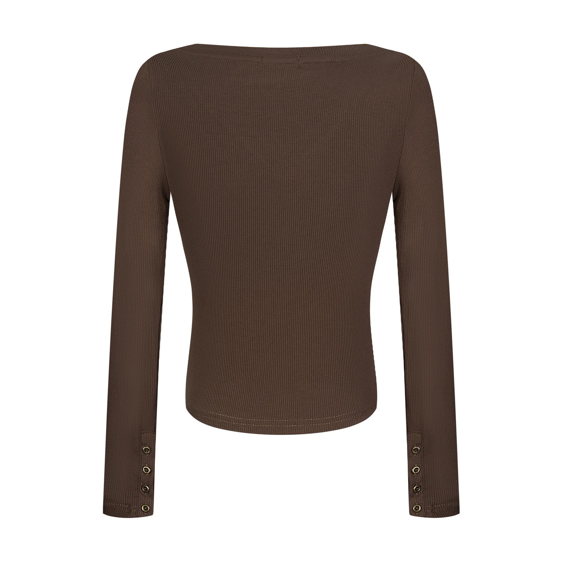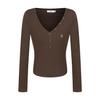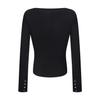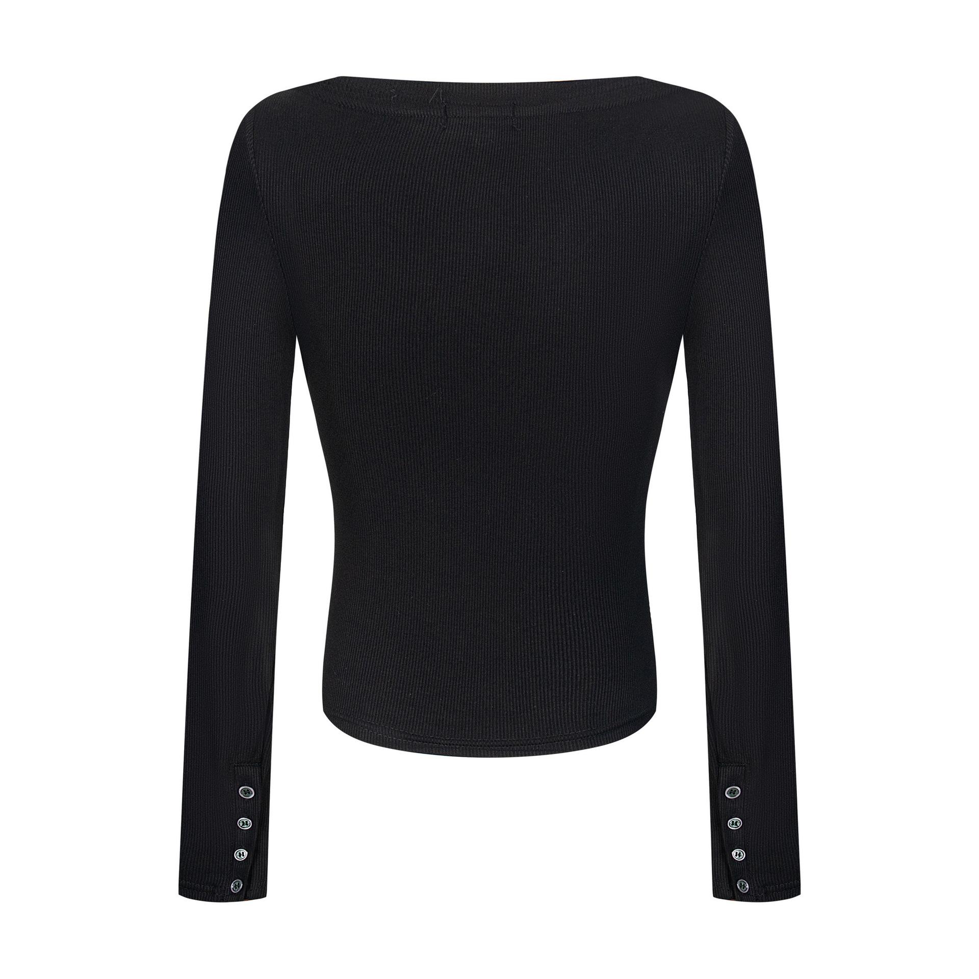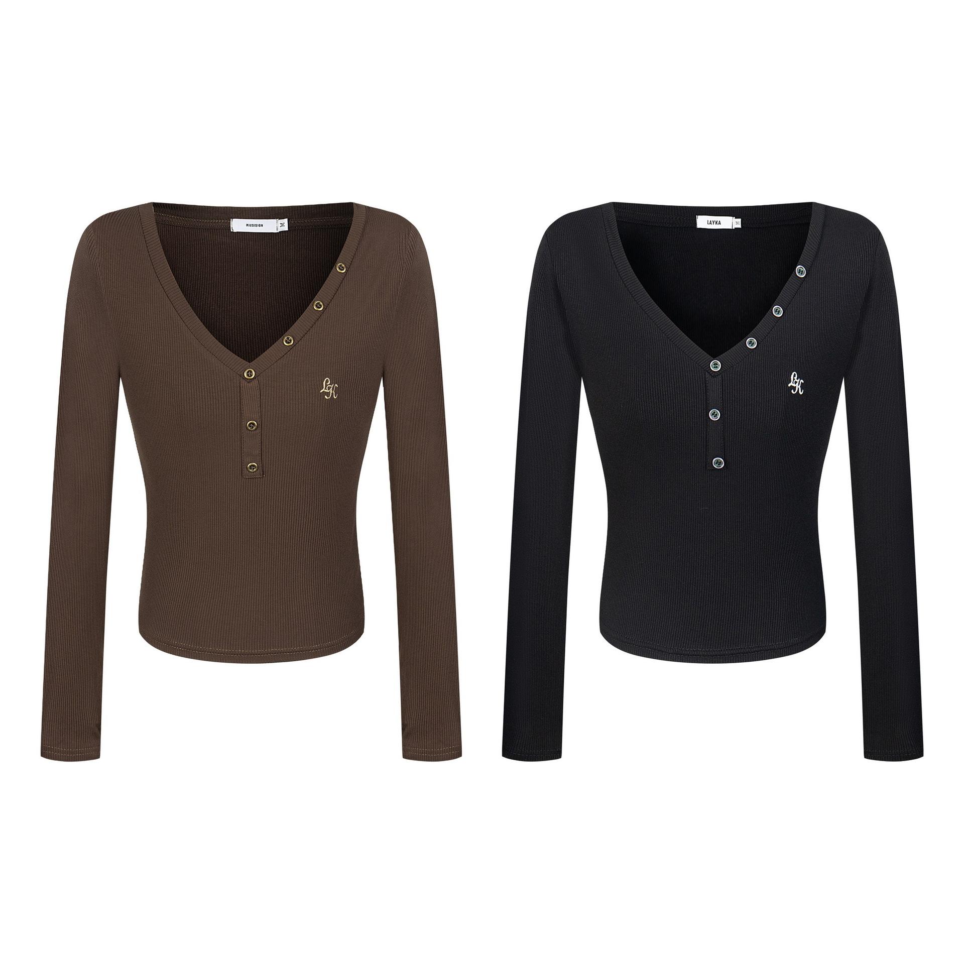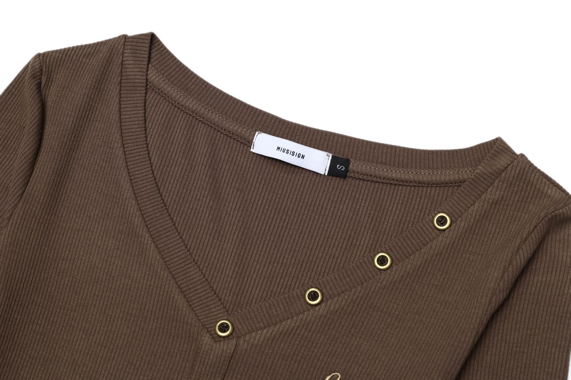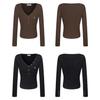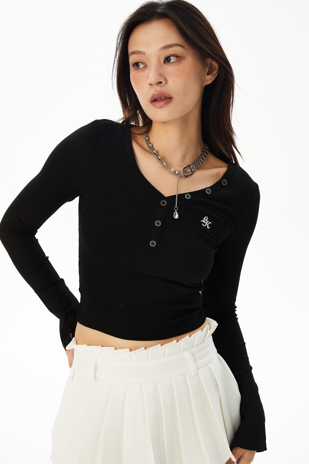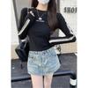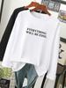 TX145 Camiseta Base de Alta Gama para Mujer, Corte Corto, Entallada y Alargadora, Tendencia Urbana, Diseño de Letras Bordadas, Manga Larga