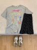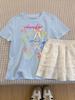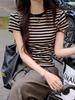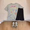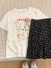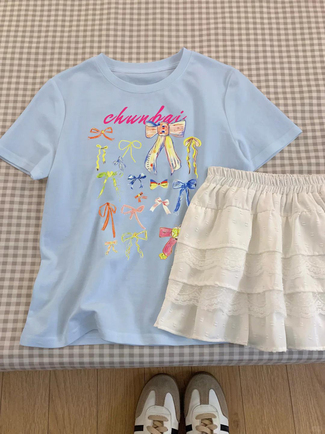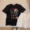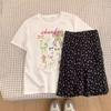 Estilo Coreano Ins Nicho Único Estampado Algodón Puro Ancho Hombro Caído Manga Corta Casual Adelgazante Verano a la Moda Estilo Dulce y Picante