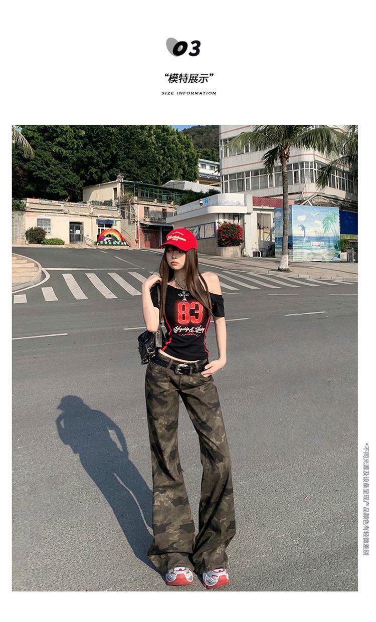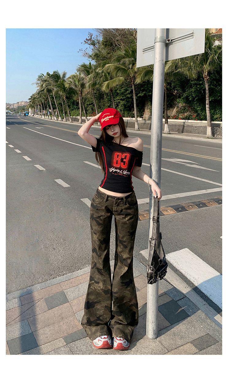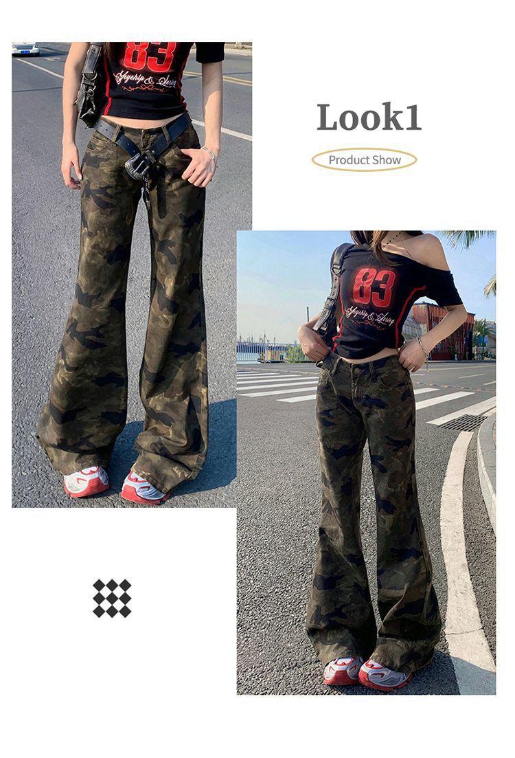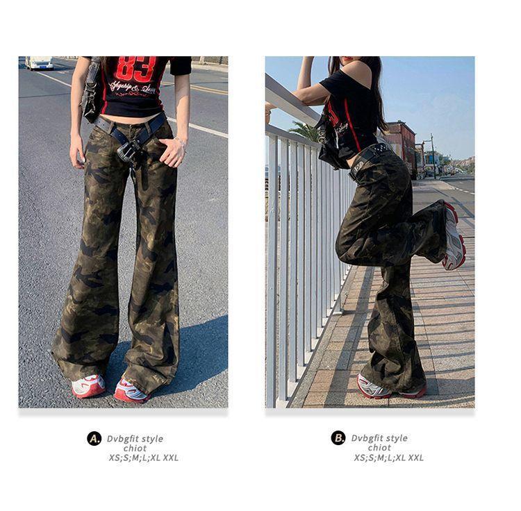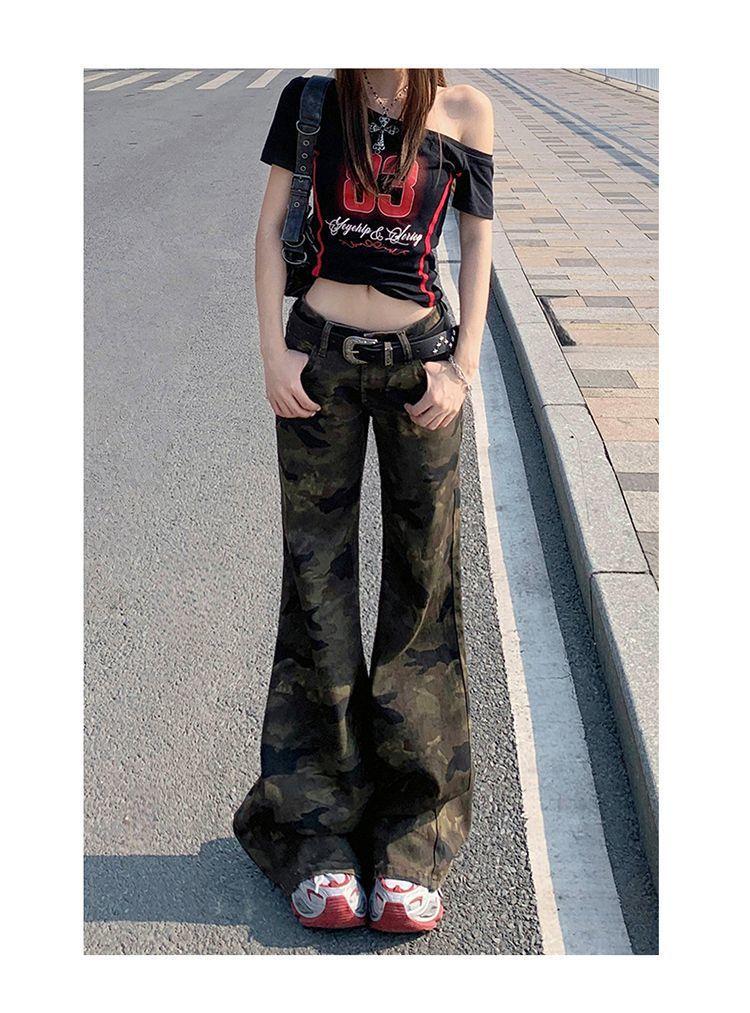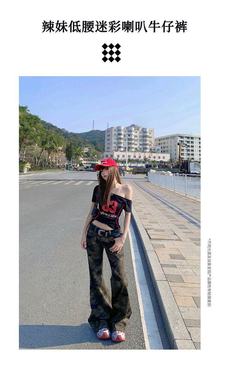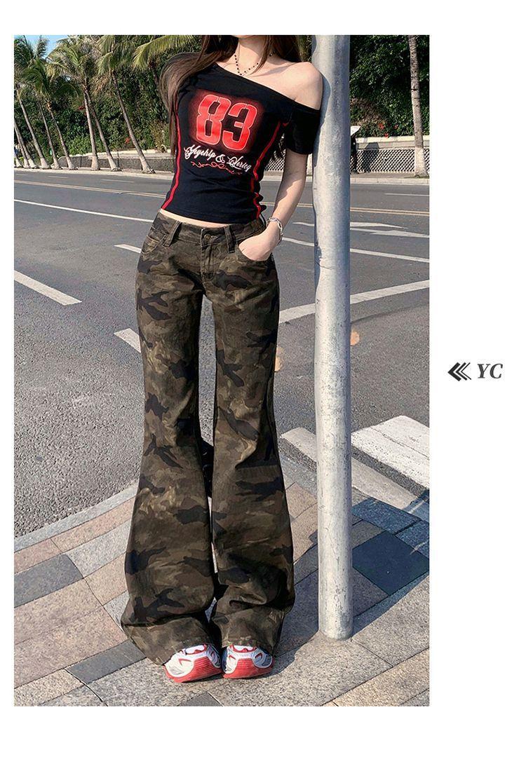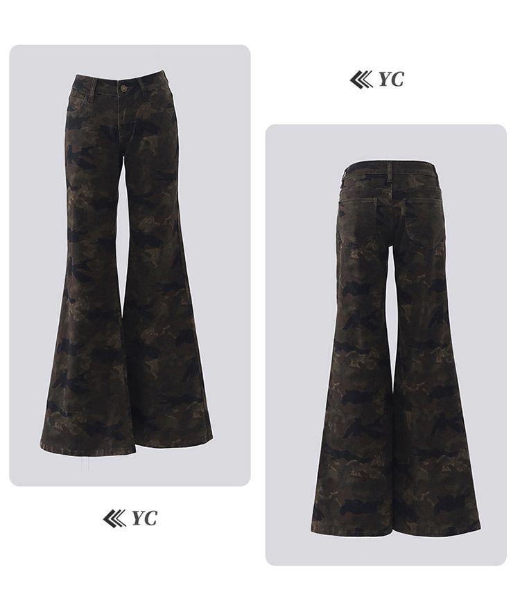 Jeans Acampanados Micro de Camuflaje para Mujer 2025 Nuevo Primavera y Verano Cintura Baja Ajustado Americano Sexy Pantalones Largos hasta el Piso
