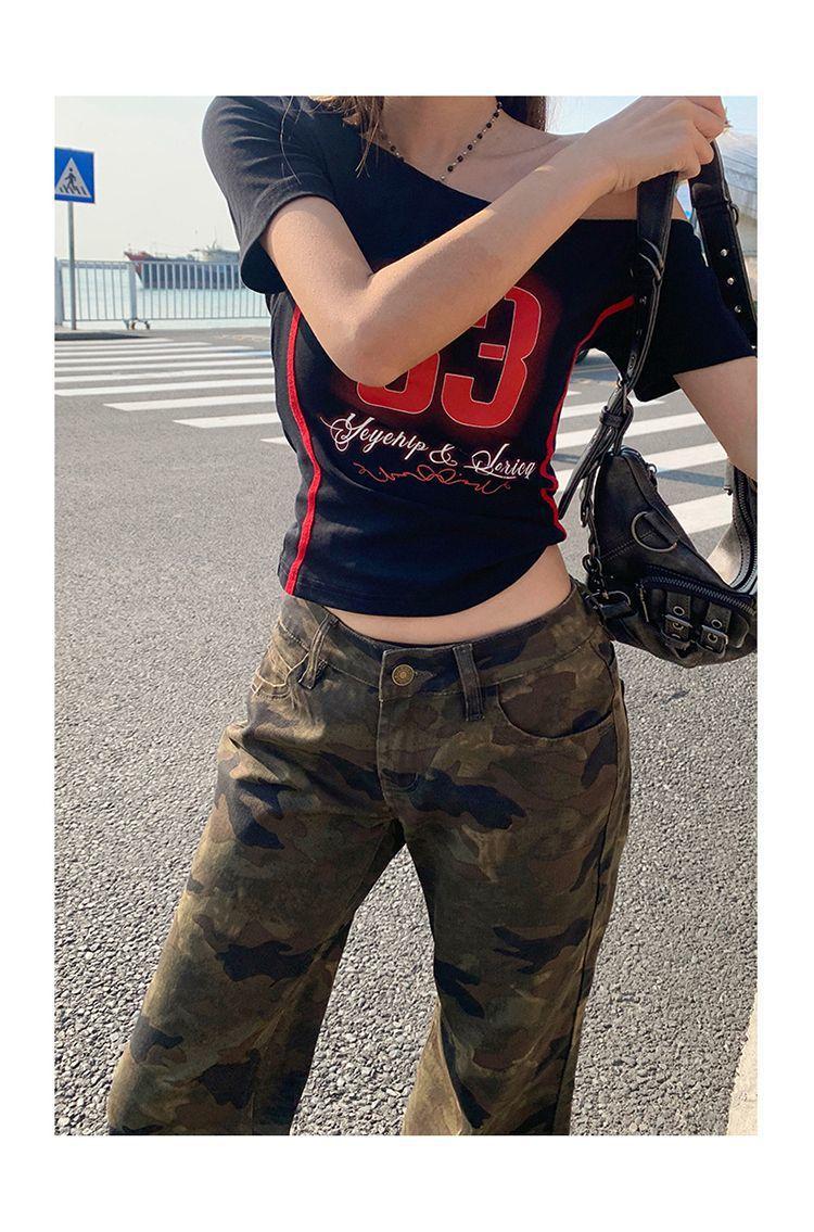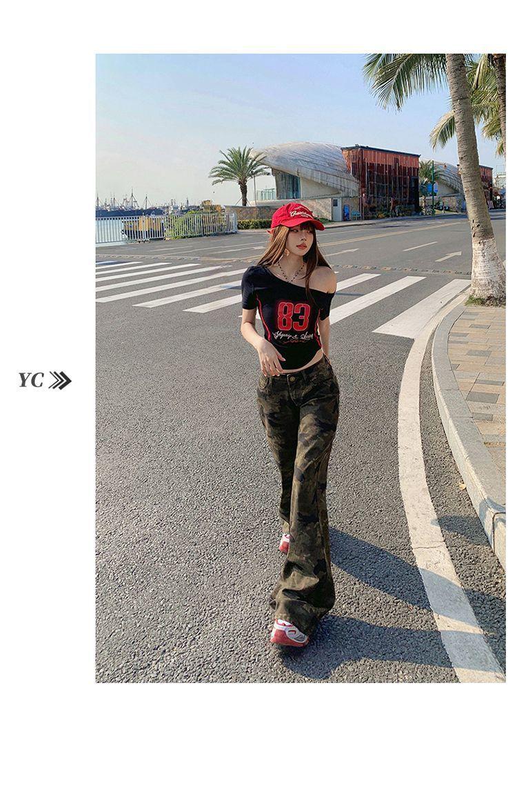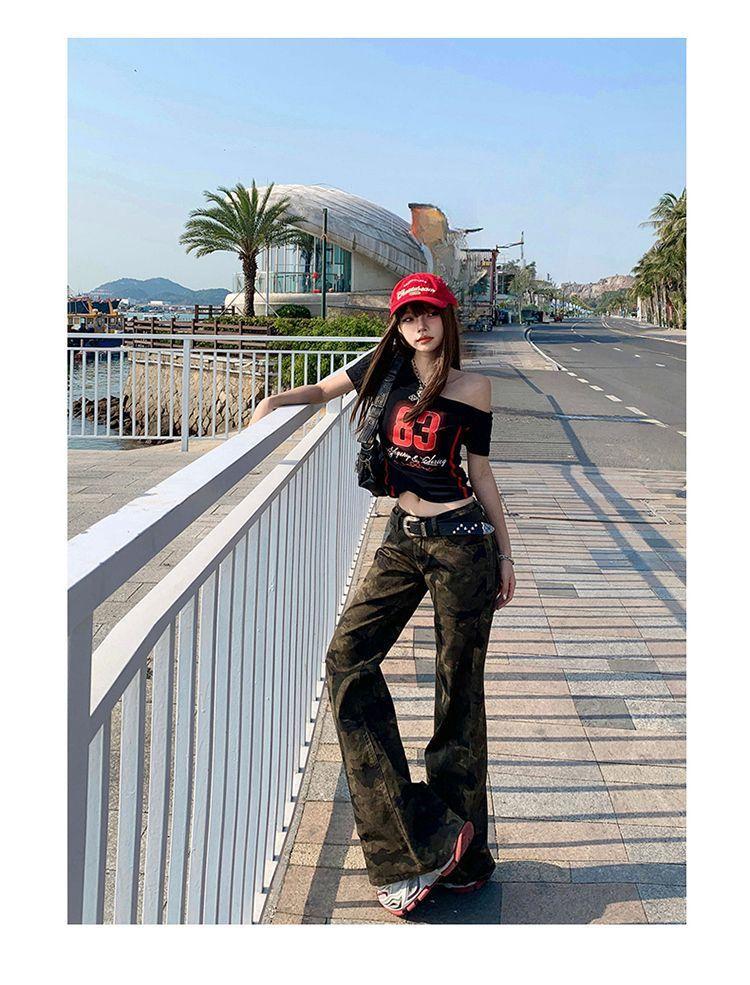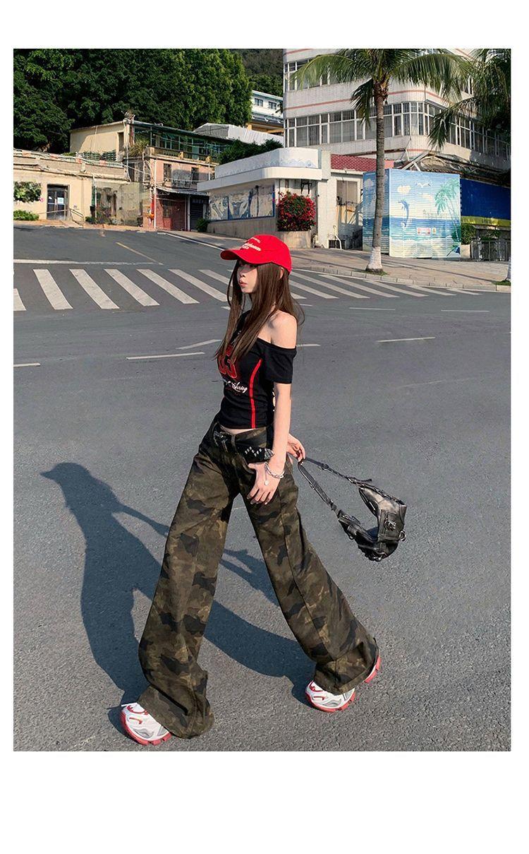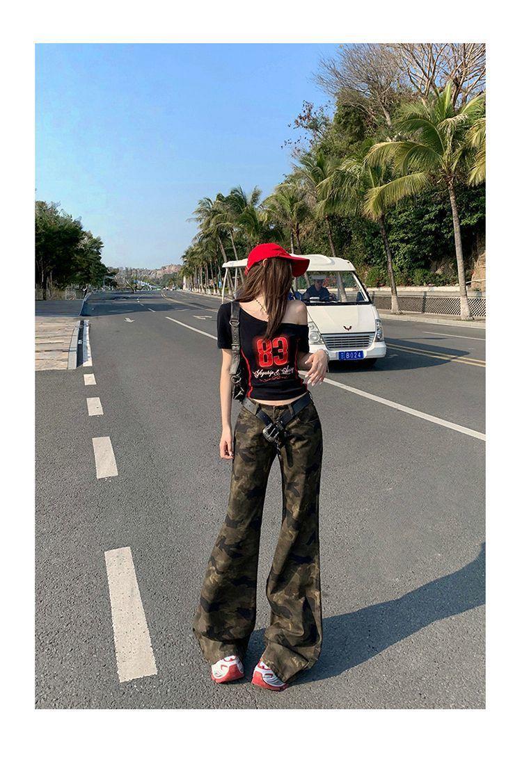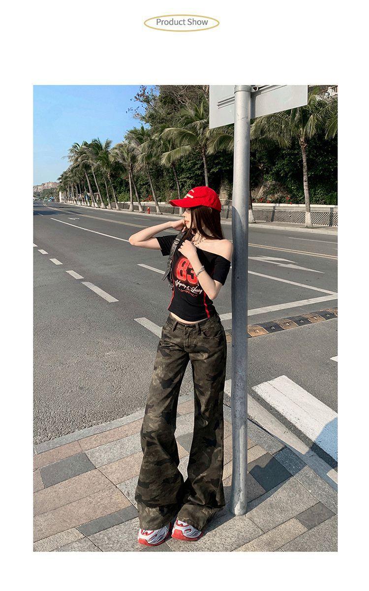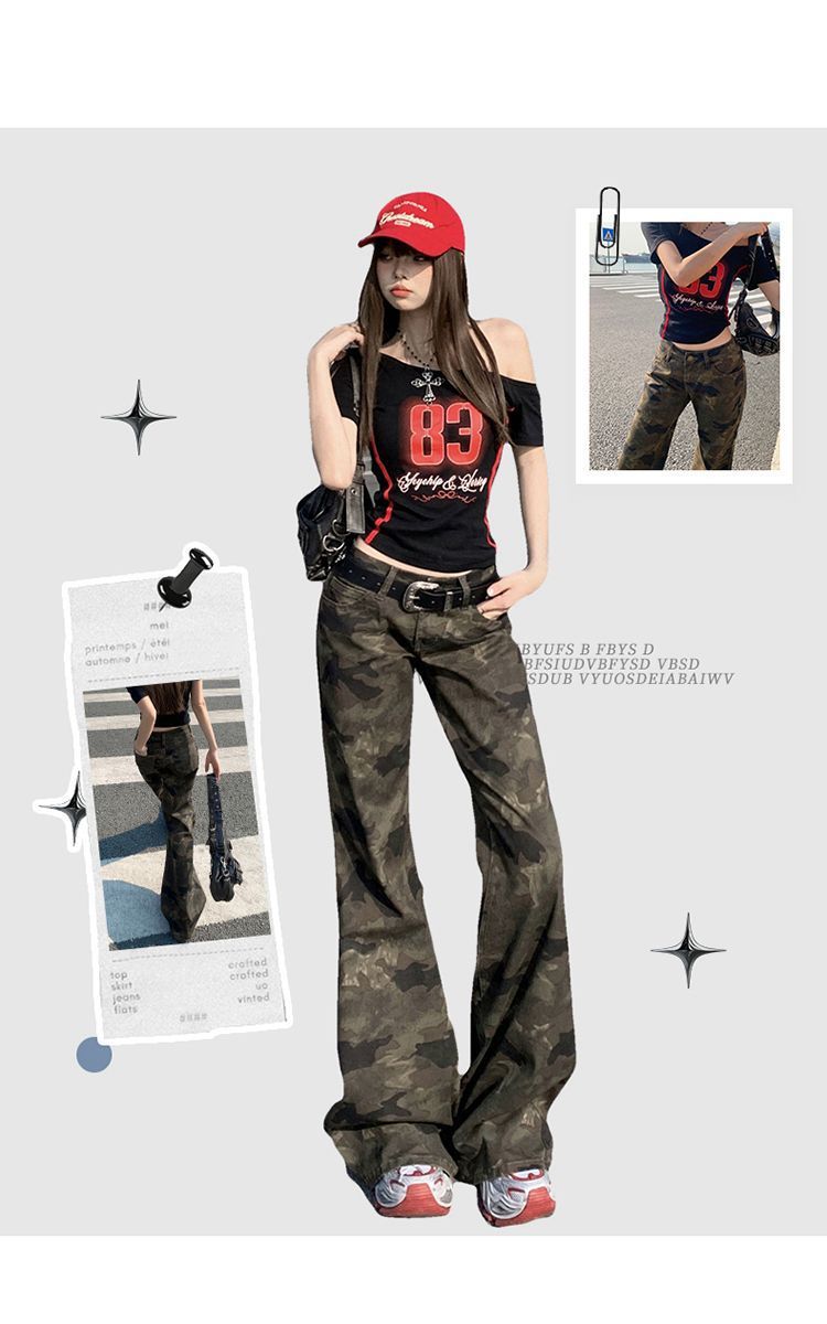 Jeans Acampanados Micro de Camuflaje para Mujer 2025 Nuevo Primavera y Verano Cintura Baja Ajustado Americano Sexy Pantalones Largos hasta el Piso