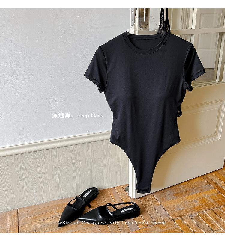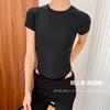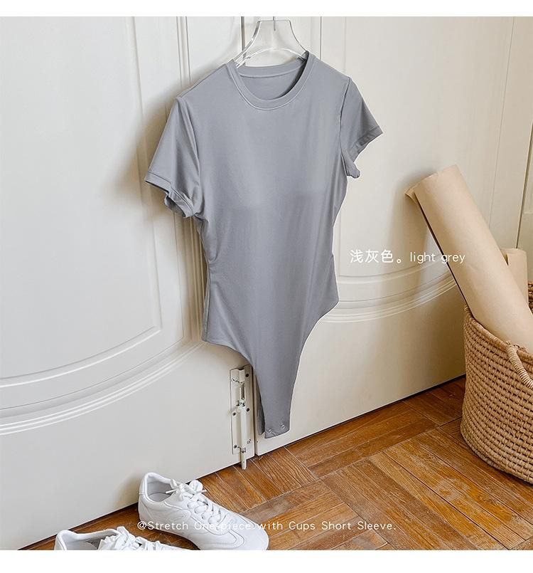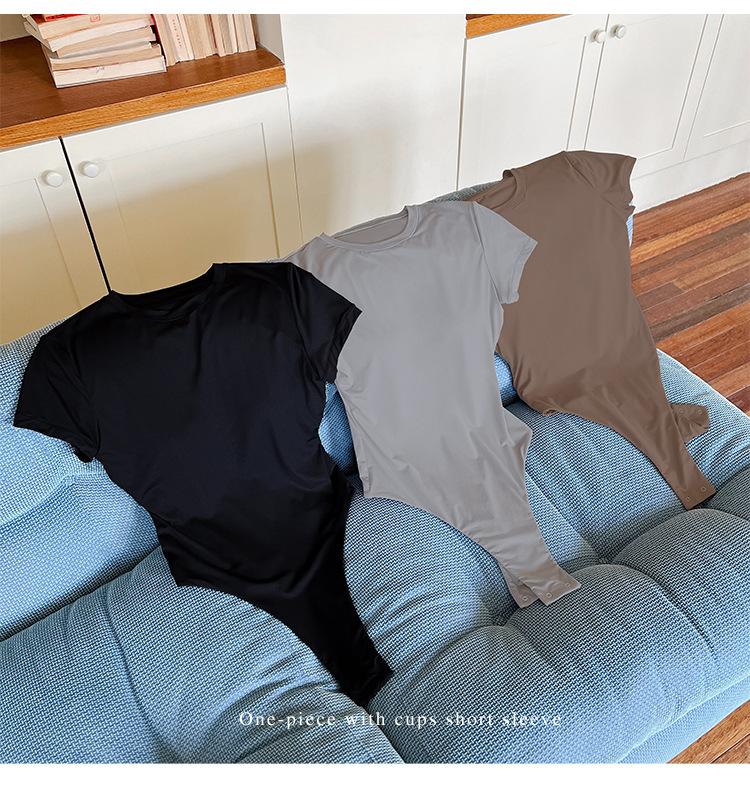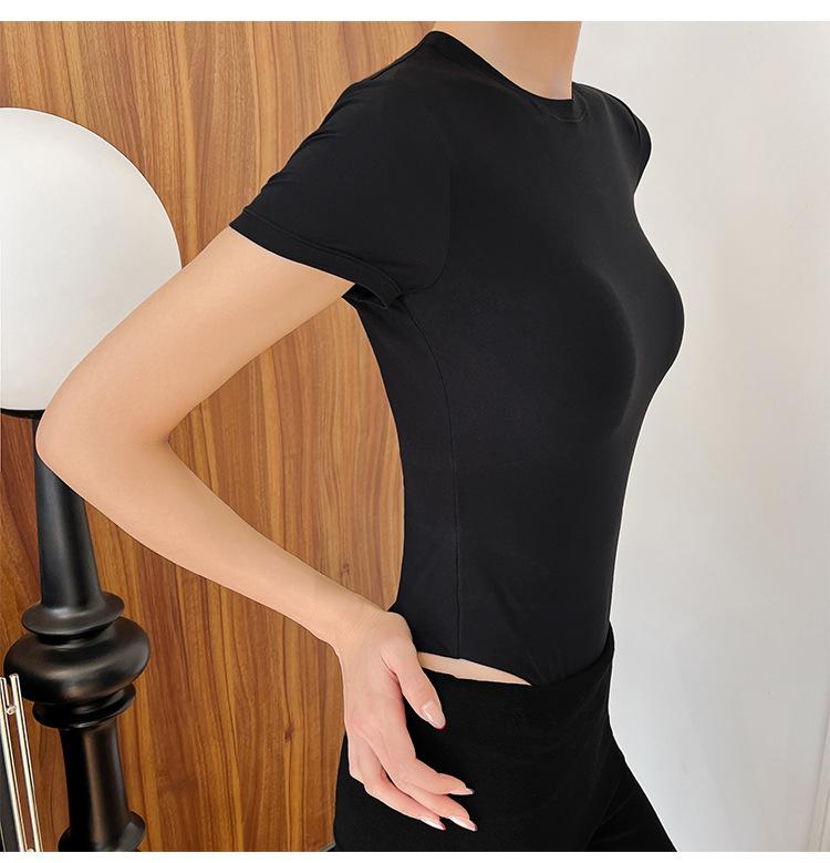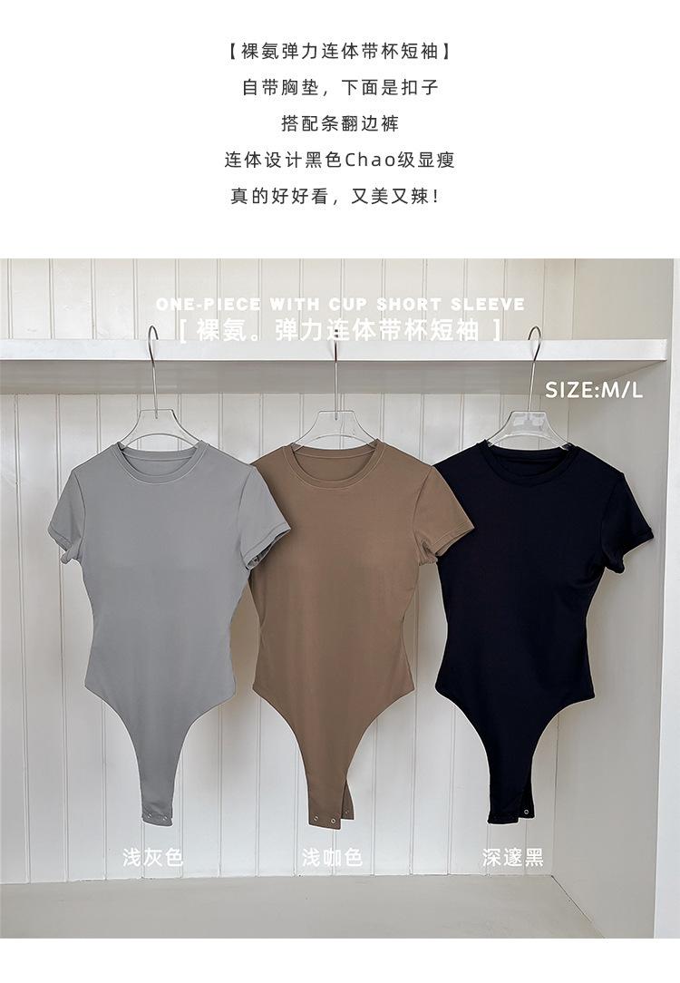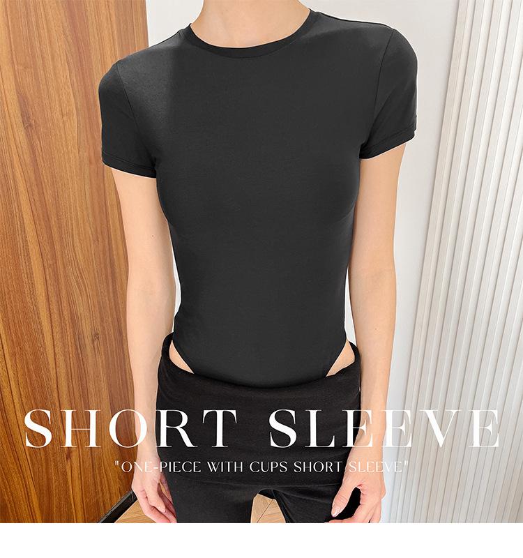 Mono de manga corta ajustado estilo europeo y americano transfronterizo Naked Ammonia Stretch con copa para camiseta base interior ajustada para mujer