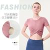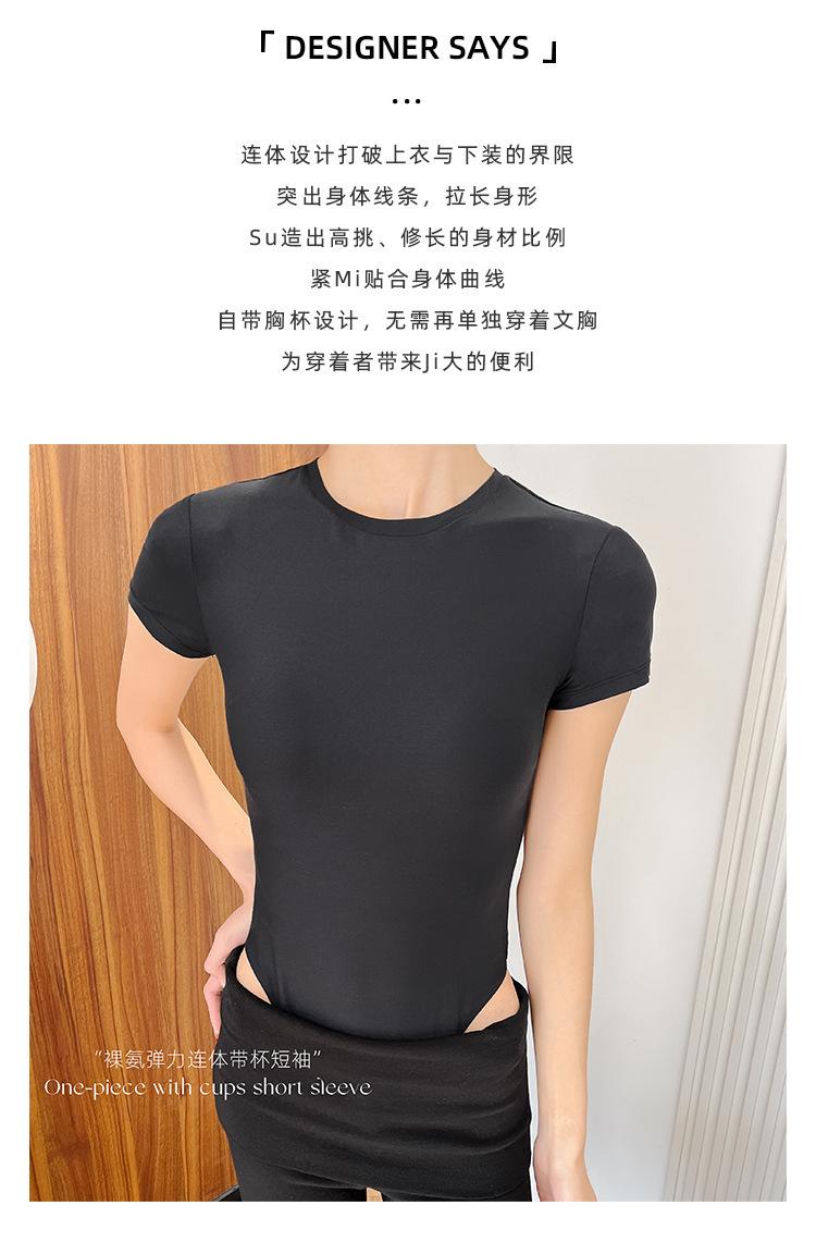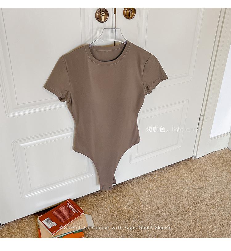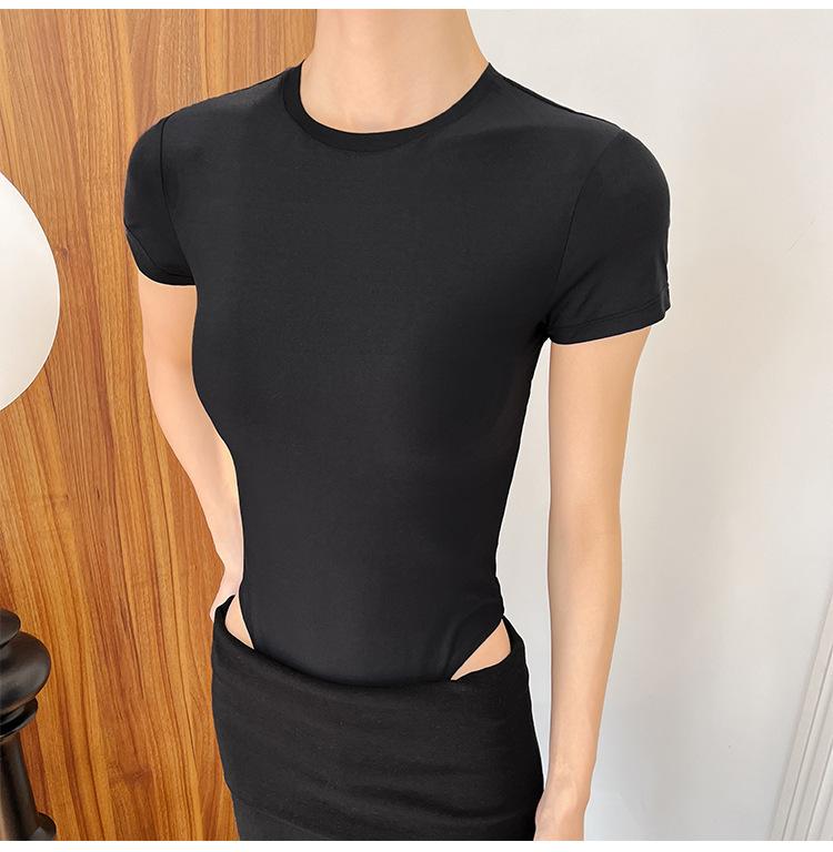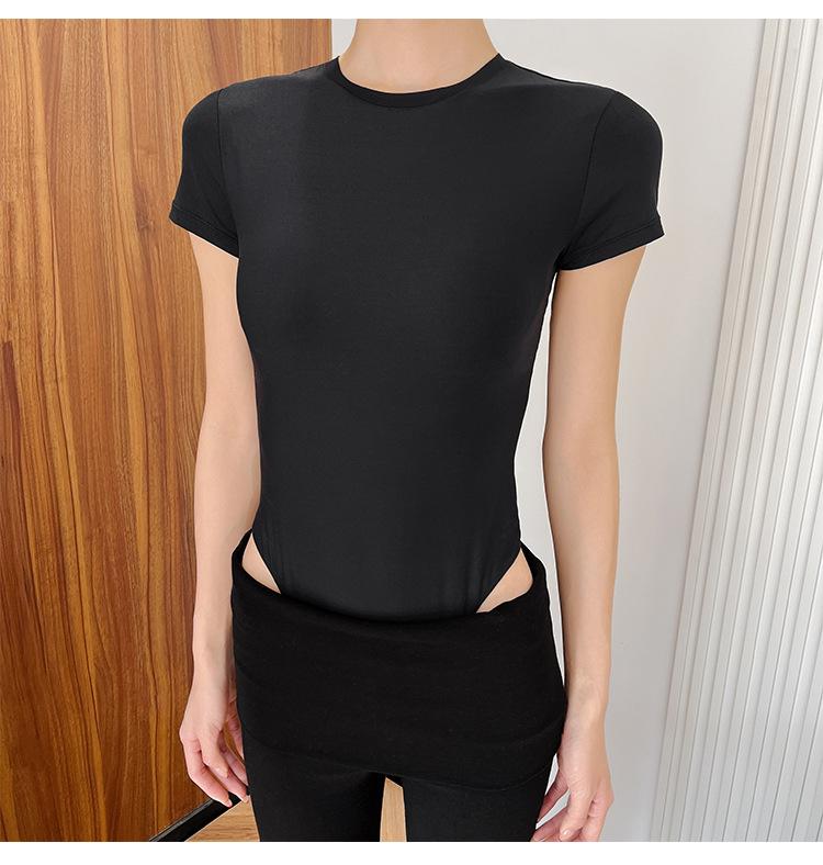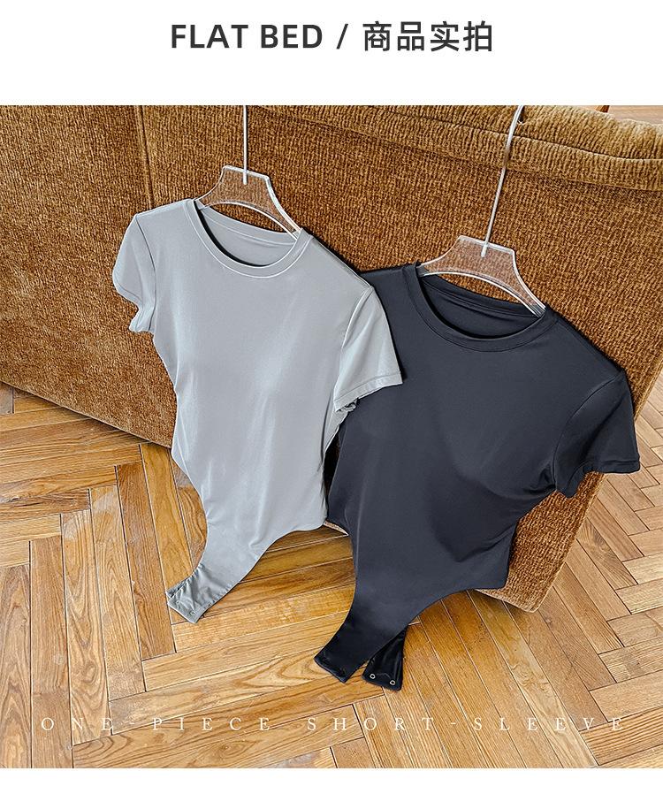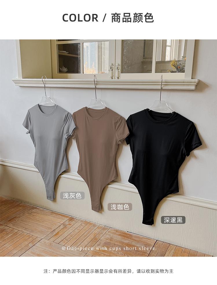 Mono de manga corta ajustado estilo europeo y americano transfronterizo Naked Ammonia Stretch con copa para camiseta base interior ajustada para mujer