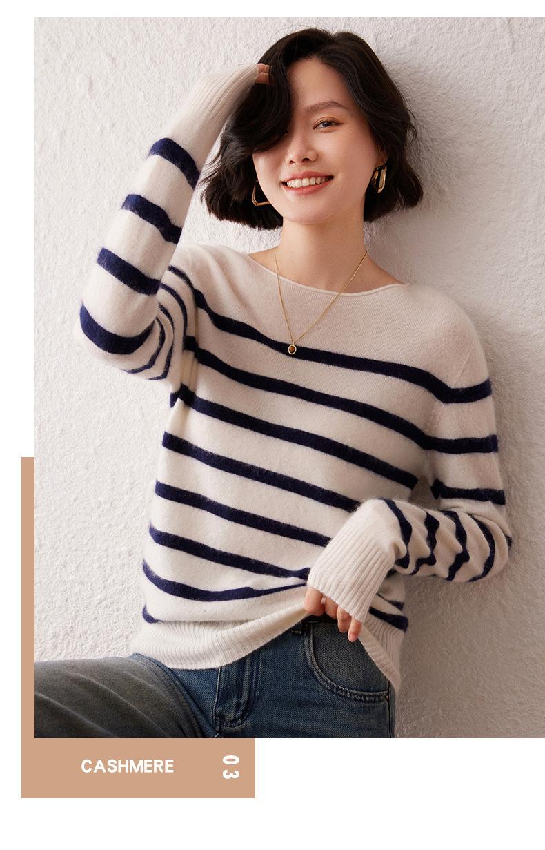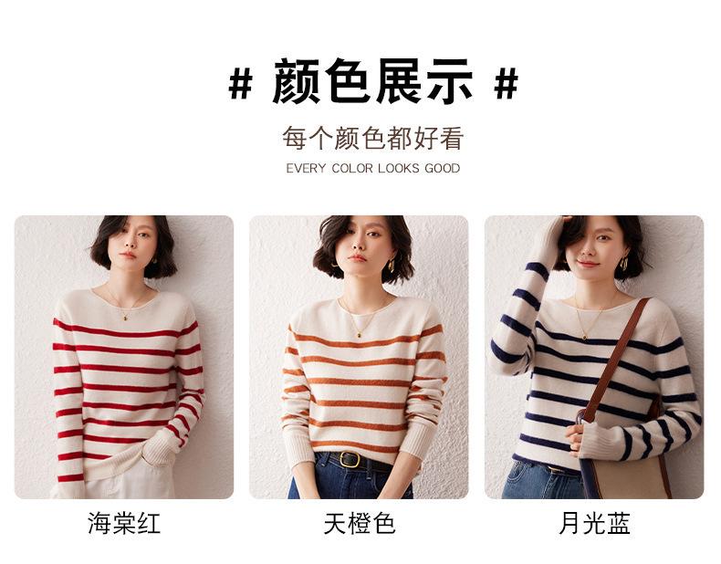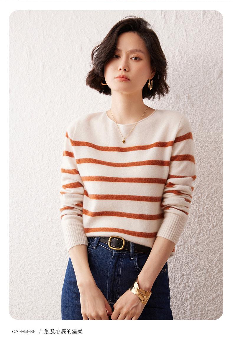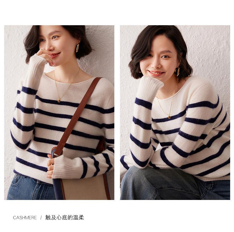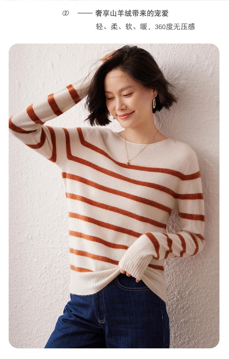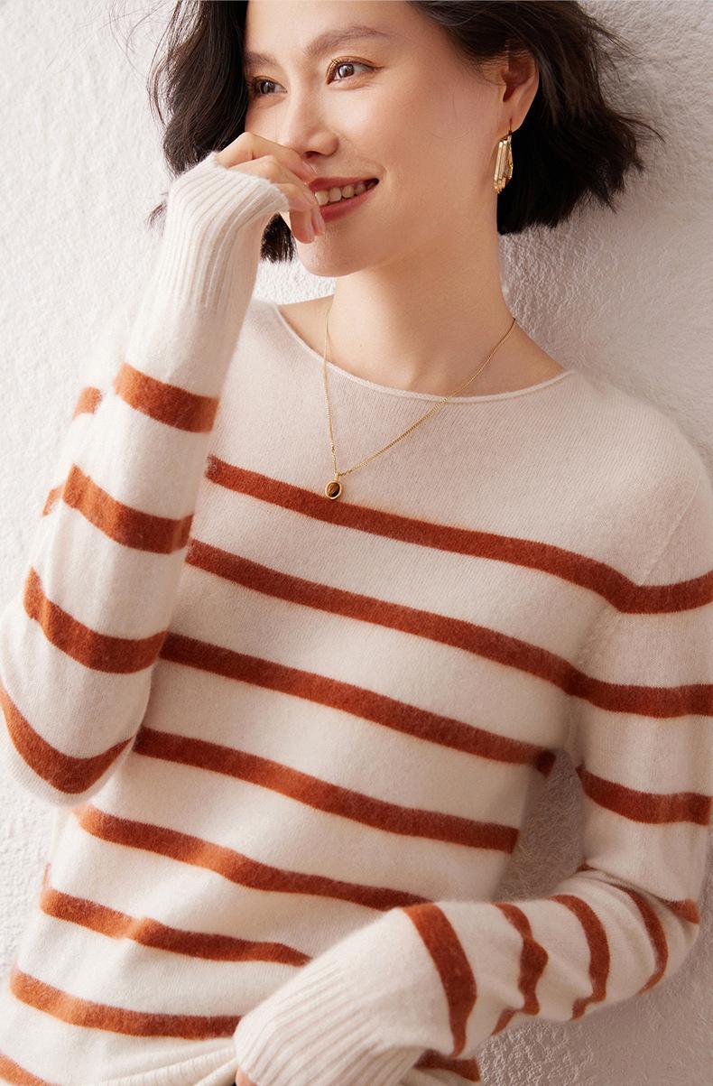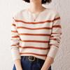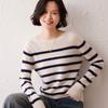 Suéter de Cachemira de Una Pieza Sin Costuras para Mujer, Jersey de Cuello Redondo, Capa Base Interior, Otoño e Invierno, Nuevo Tejido de Punto a Rayas de Manga Larga