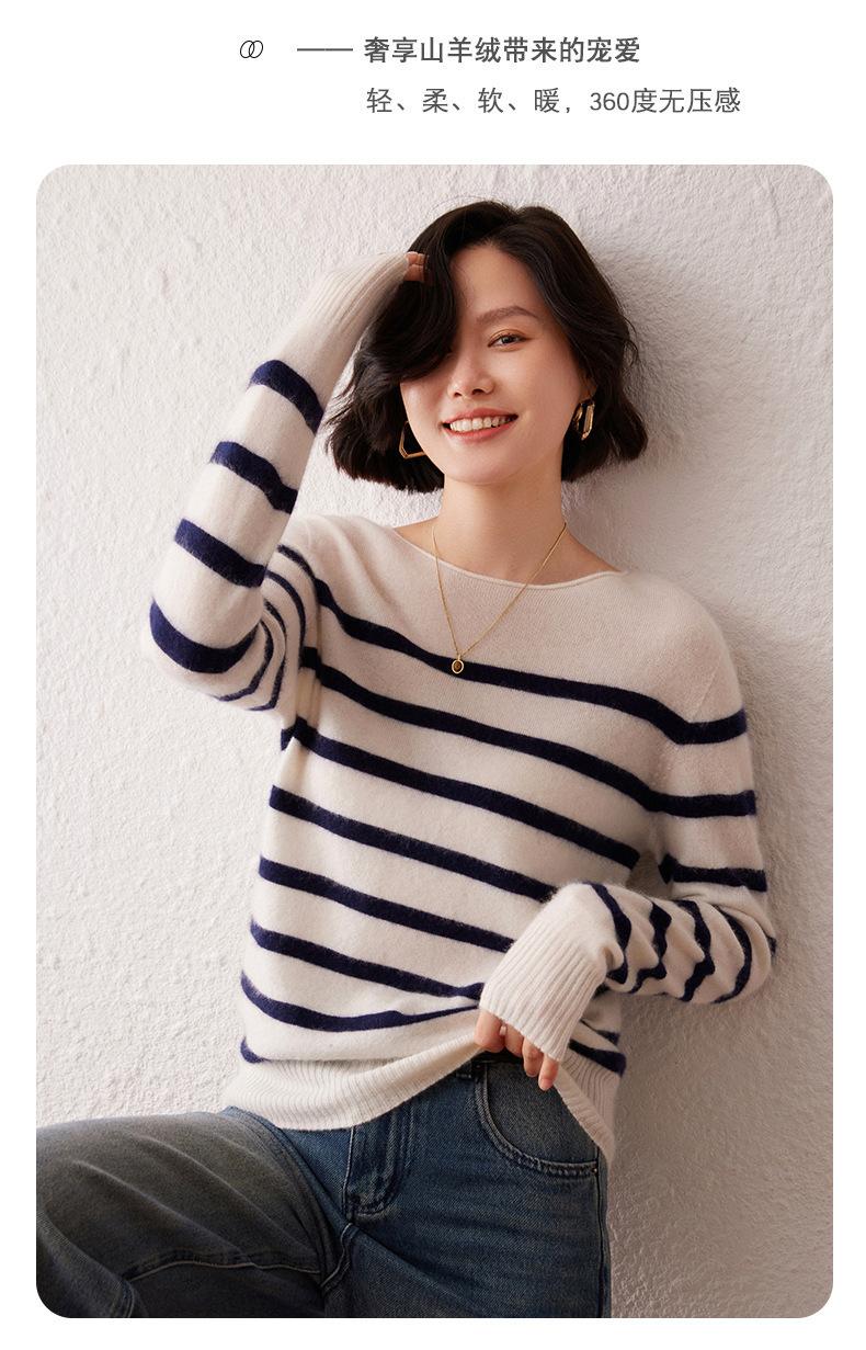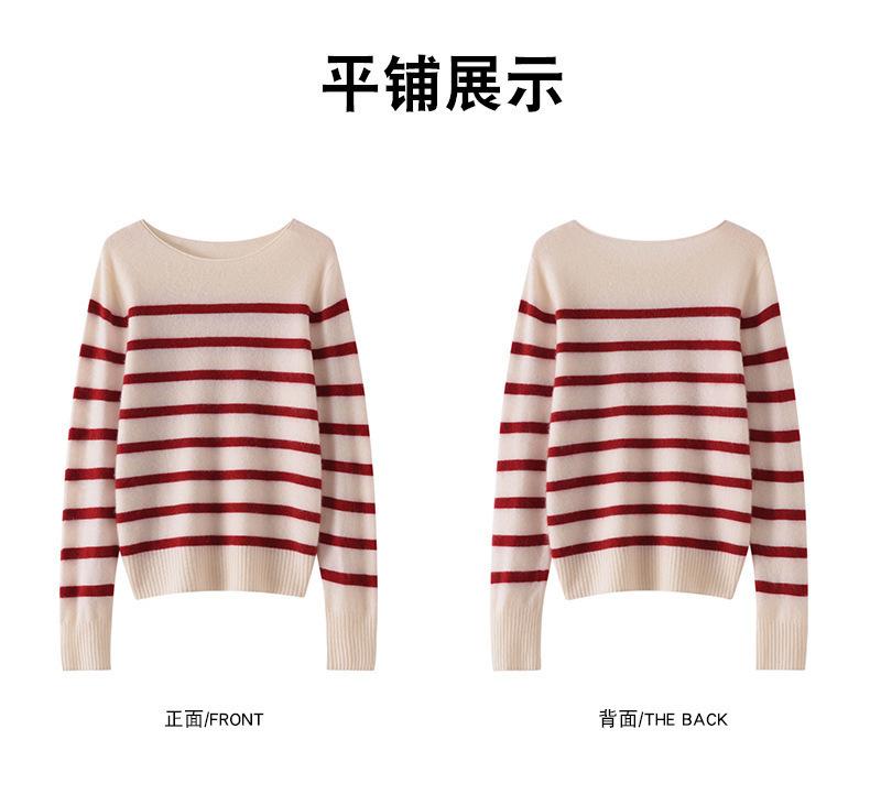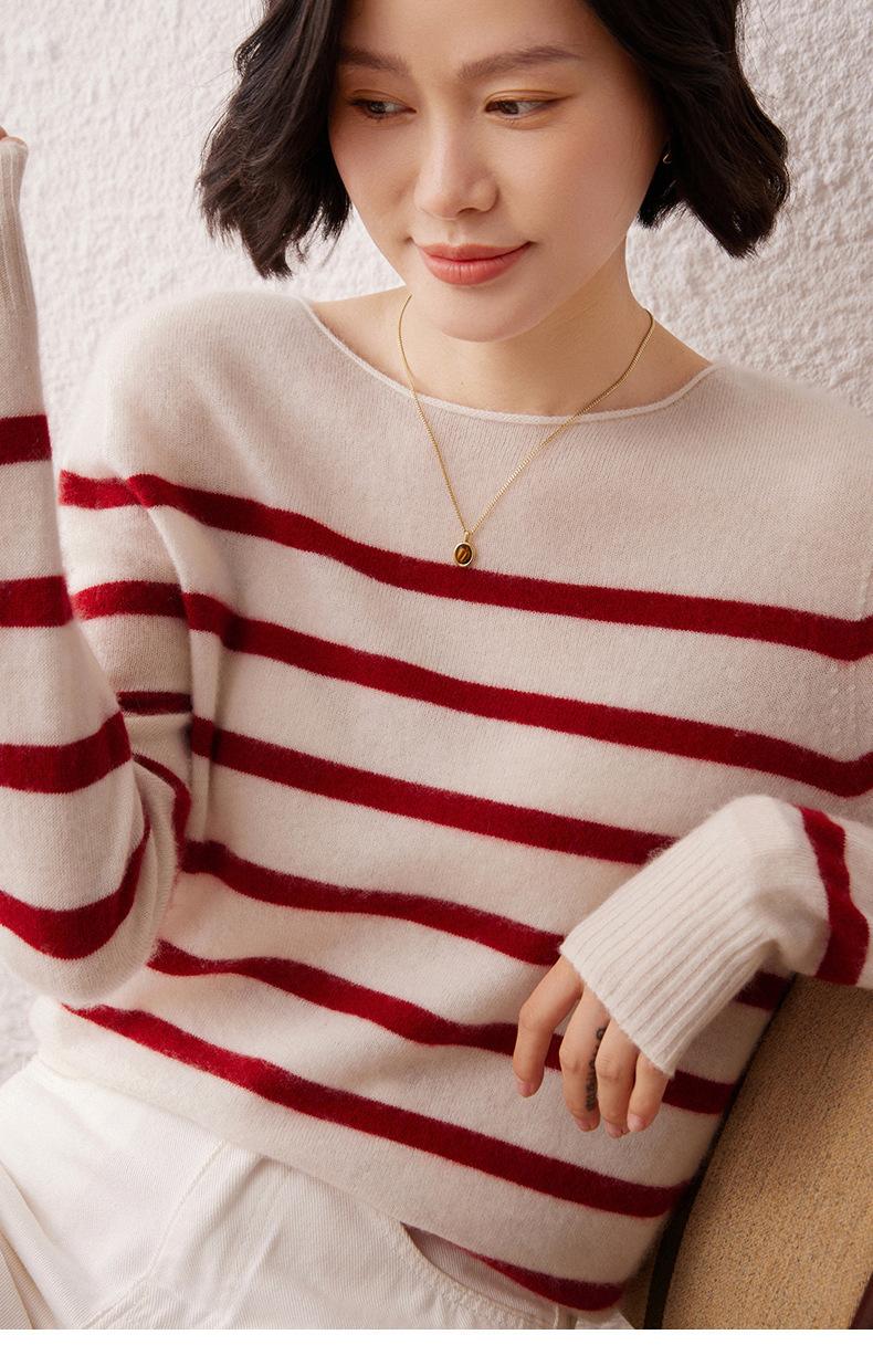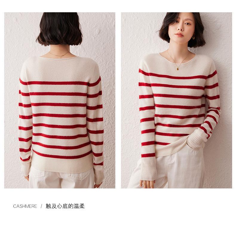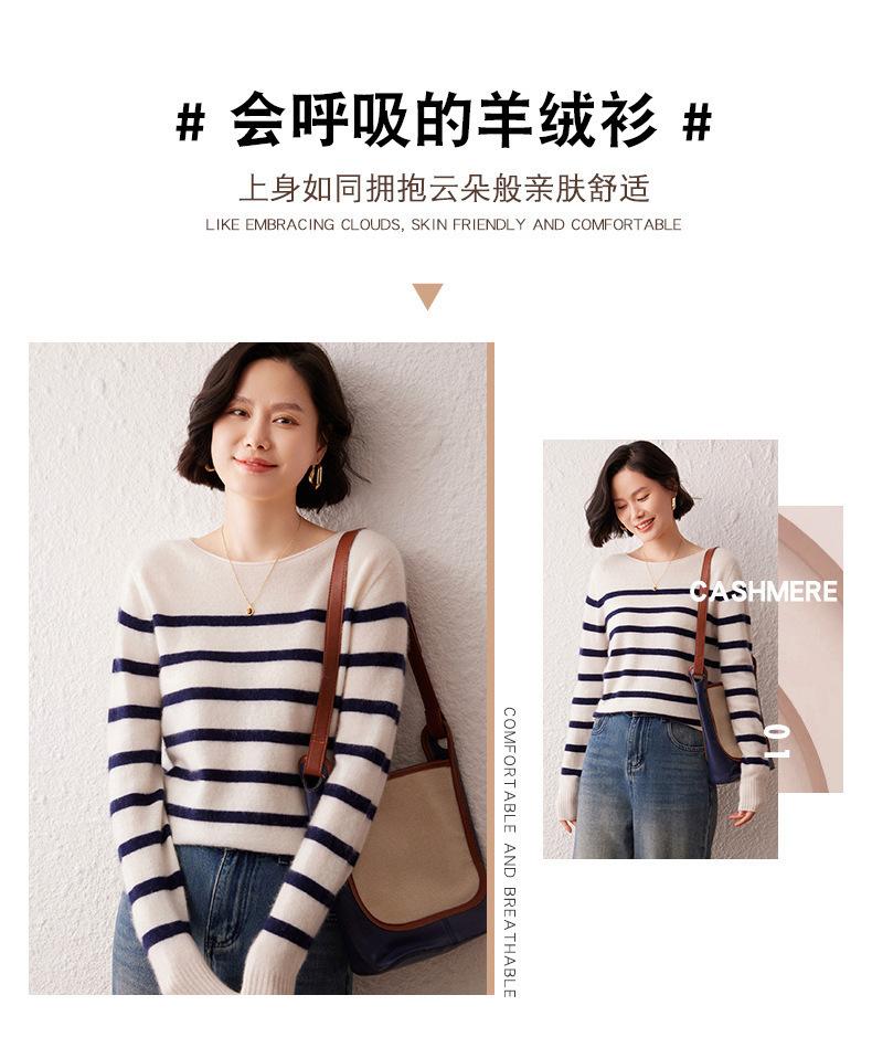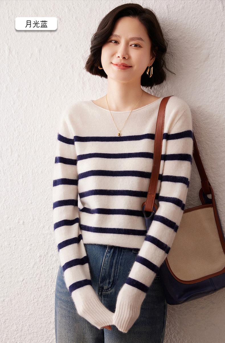 Suéter de Cachemira de Una Pieza Sin Costuras para Mujer, Jersey de Cuello Redondo, Capa Base Interior, Otoño e Invierno, Nuevo Tejido de Punto a Rayas de Manga Larga