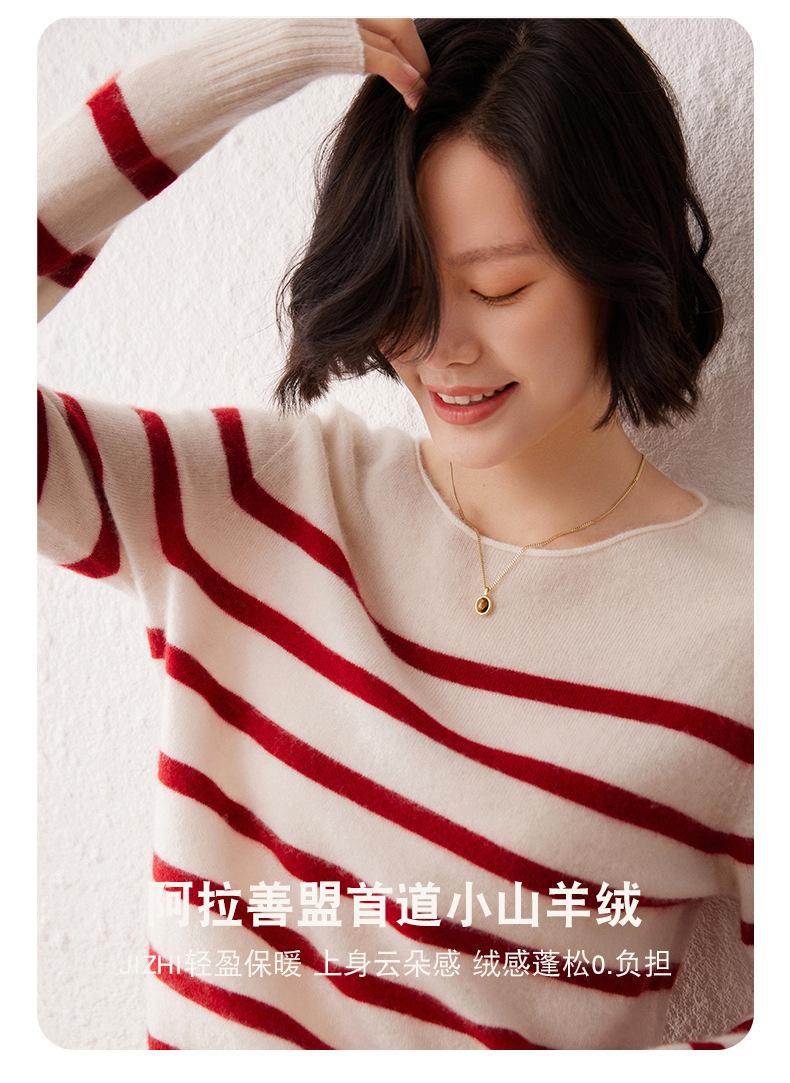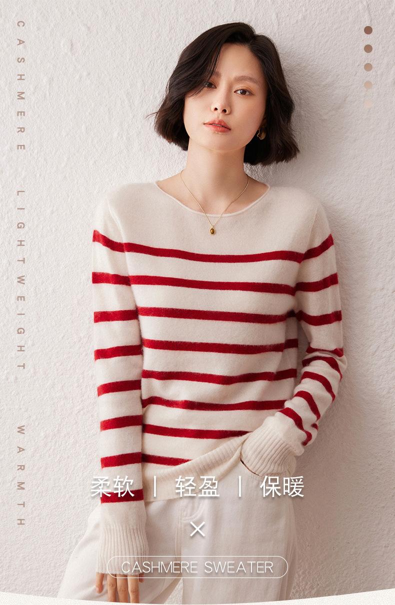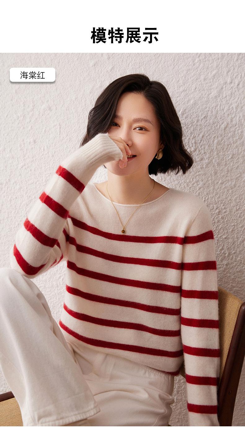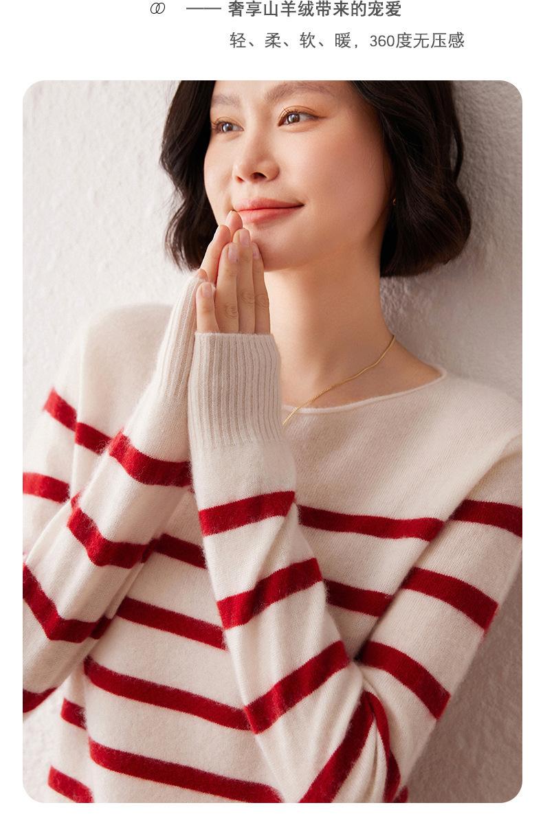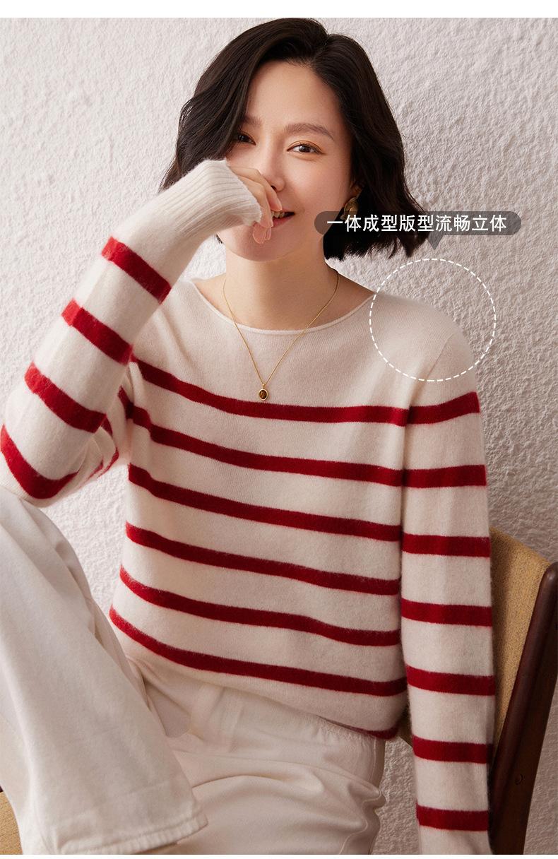 Suéter de Cachemira de Una Pieza Sin Costuras para Mujer, Jersey de Cuello Redondo, Capa Base Interior, Otoño e Invierno, Nuevo Tejido de Punto a Rayas de Manga Larga