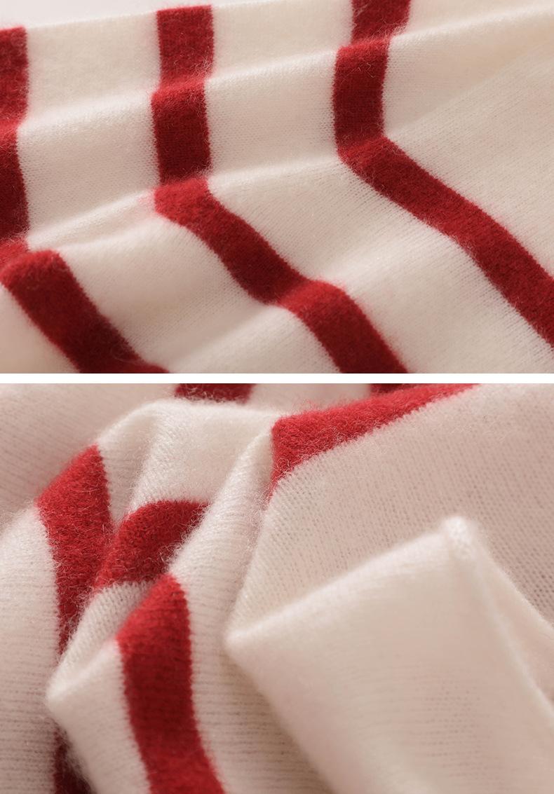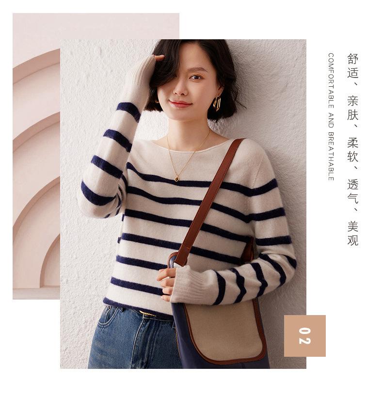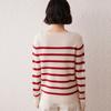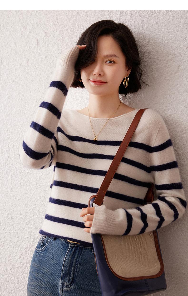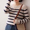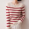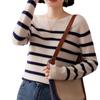 Suéter de moda versátil adelgazante de estilo coreano a rayas para mujer de cachemira con hombros descubiertos otoño/invierno 2024 camisa básica de lana