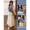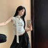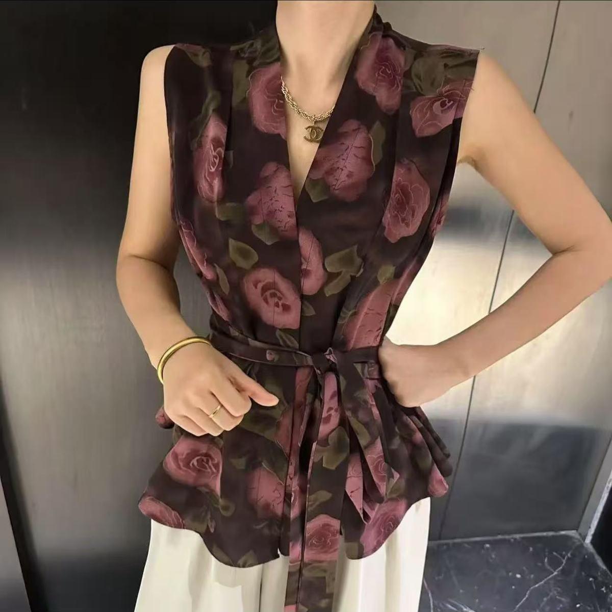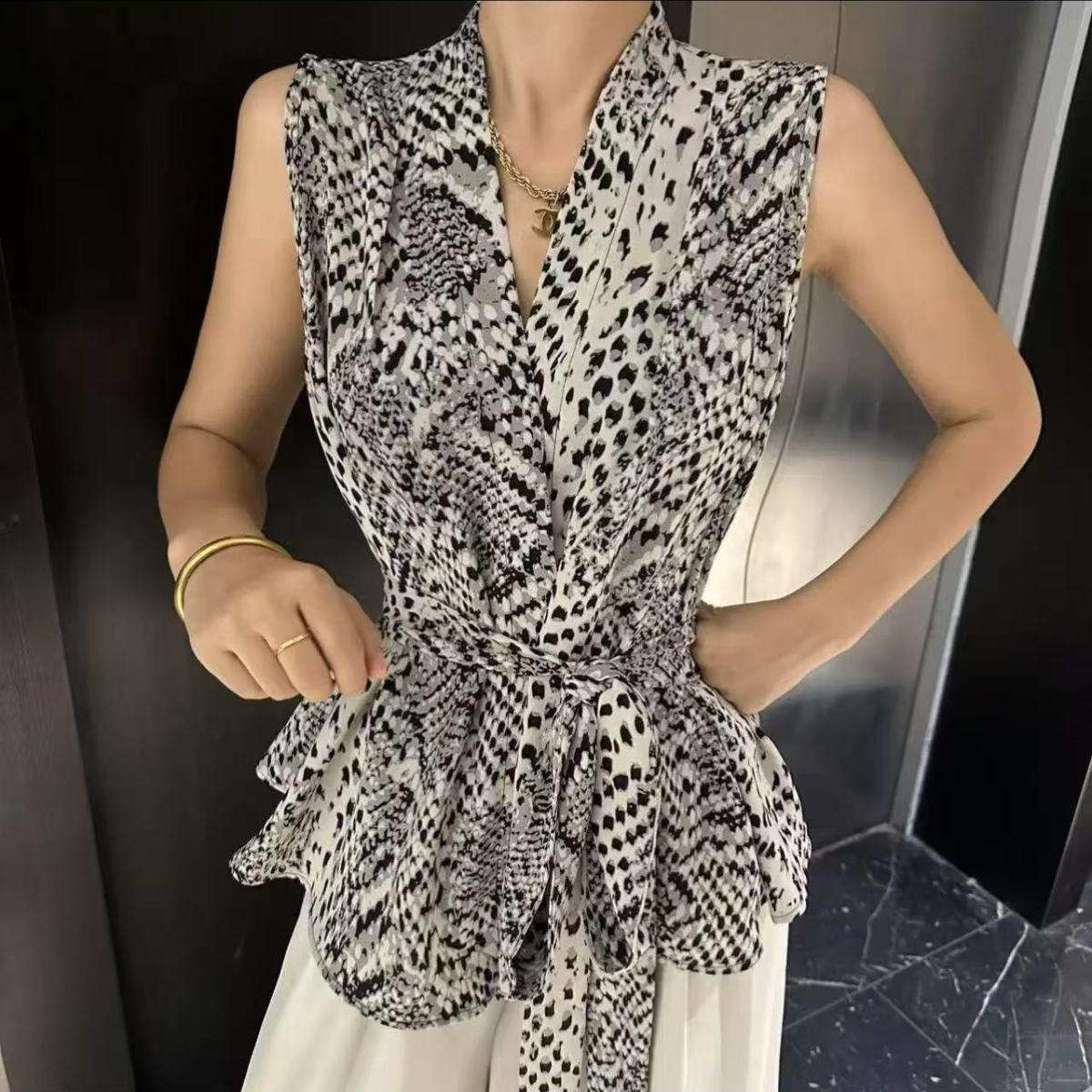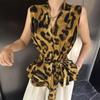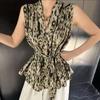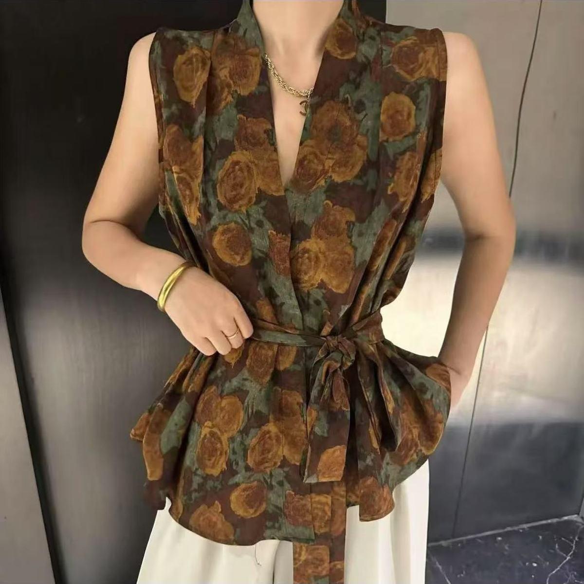 Camiseta de Verano para Mujer sin Mangas con Cuello en V Cruzado y Estampado Retro, Top con Diseño Asimétrico y Chaleco con Cinturón de Cintura